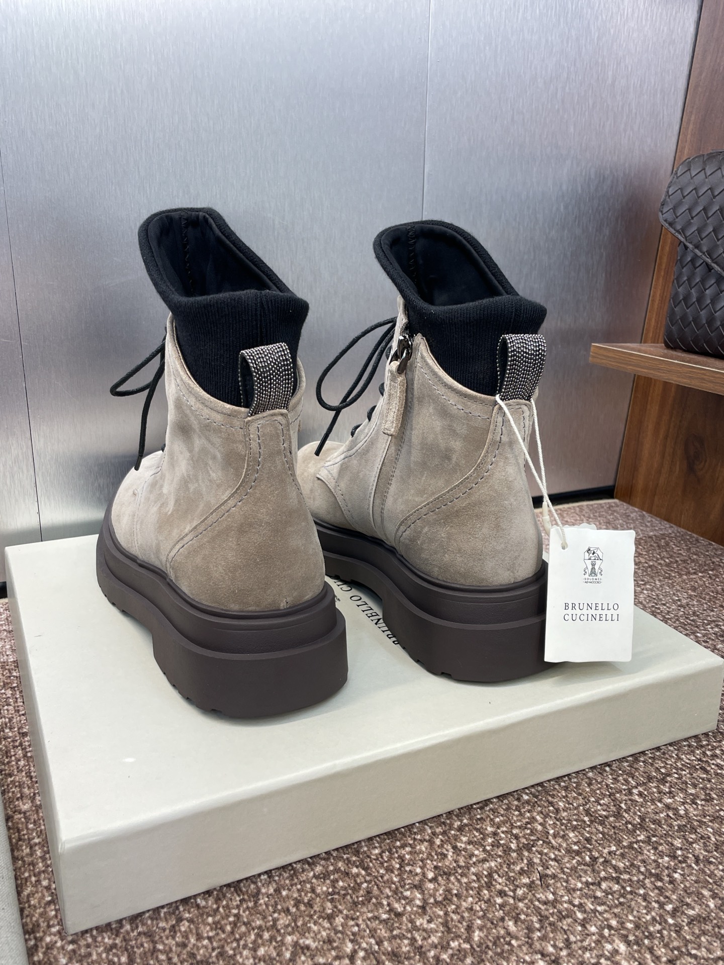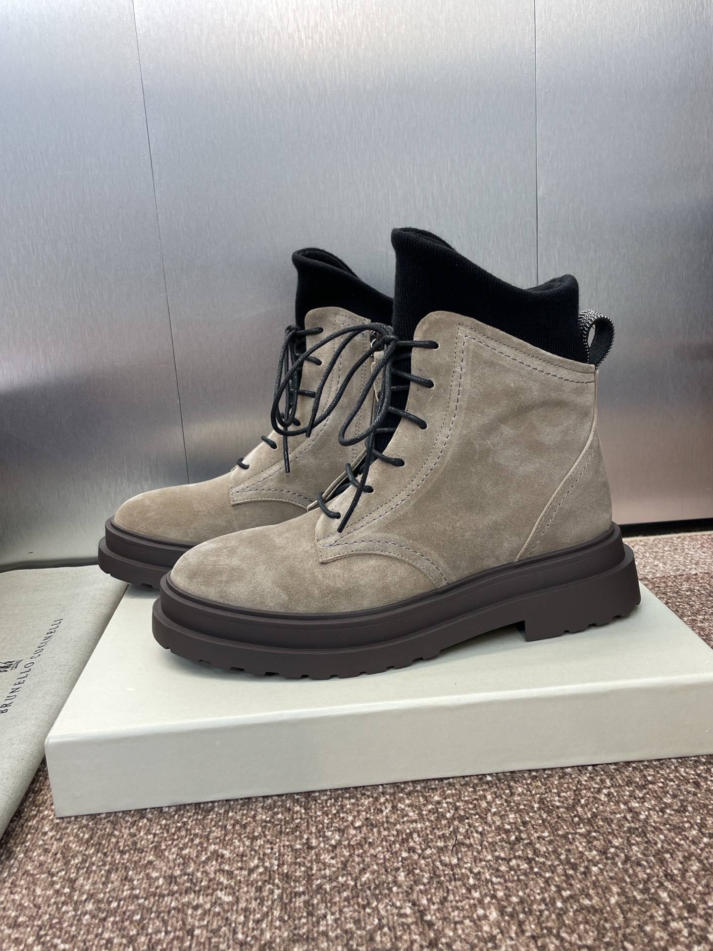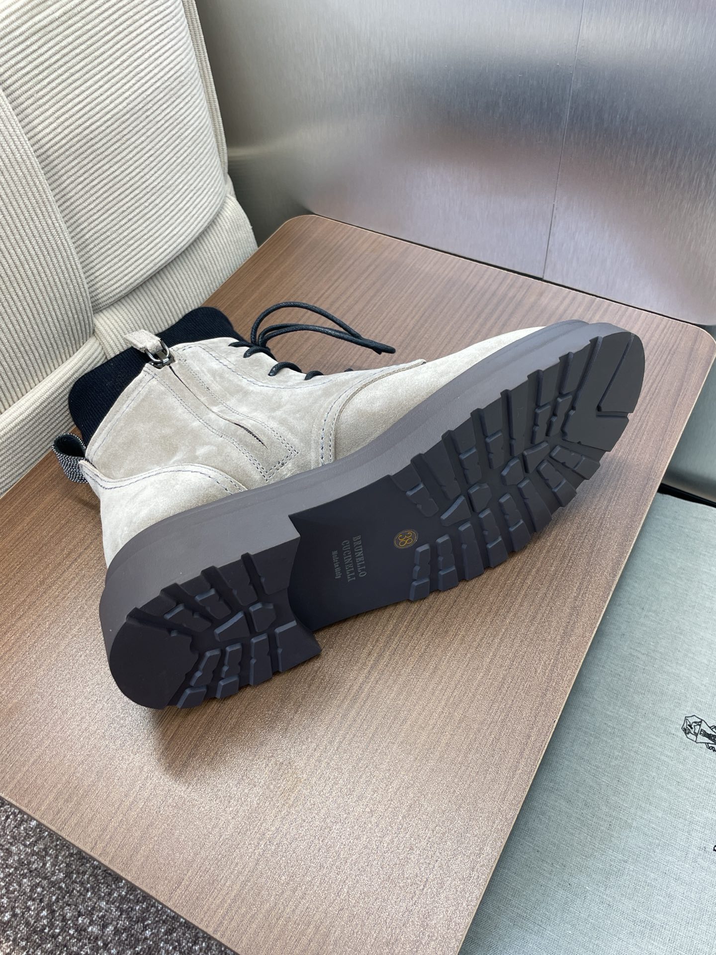 這款鞋子是AAAAA 1:1 質量(非常棒). 使用了和原版一模一樣的材料. 商標部分也保持了和Brunello Cucinelli一樣. 圖片拍攝是實物鞋子拍攝, 您所收到的實物保證和我們圖片一模一樣.