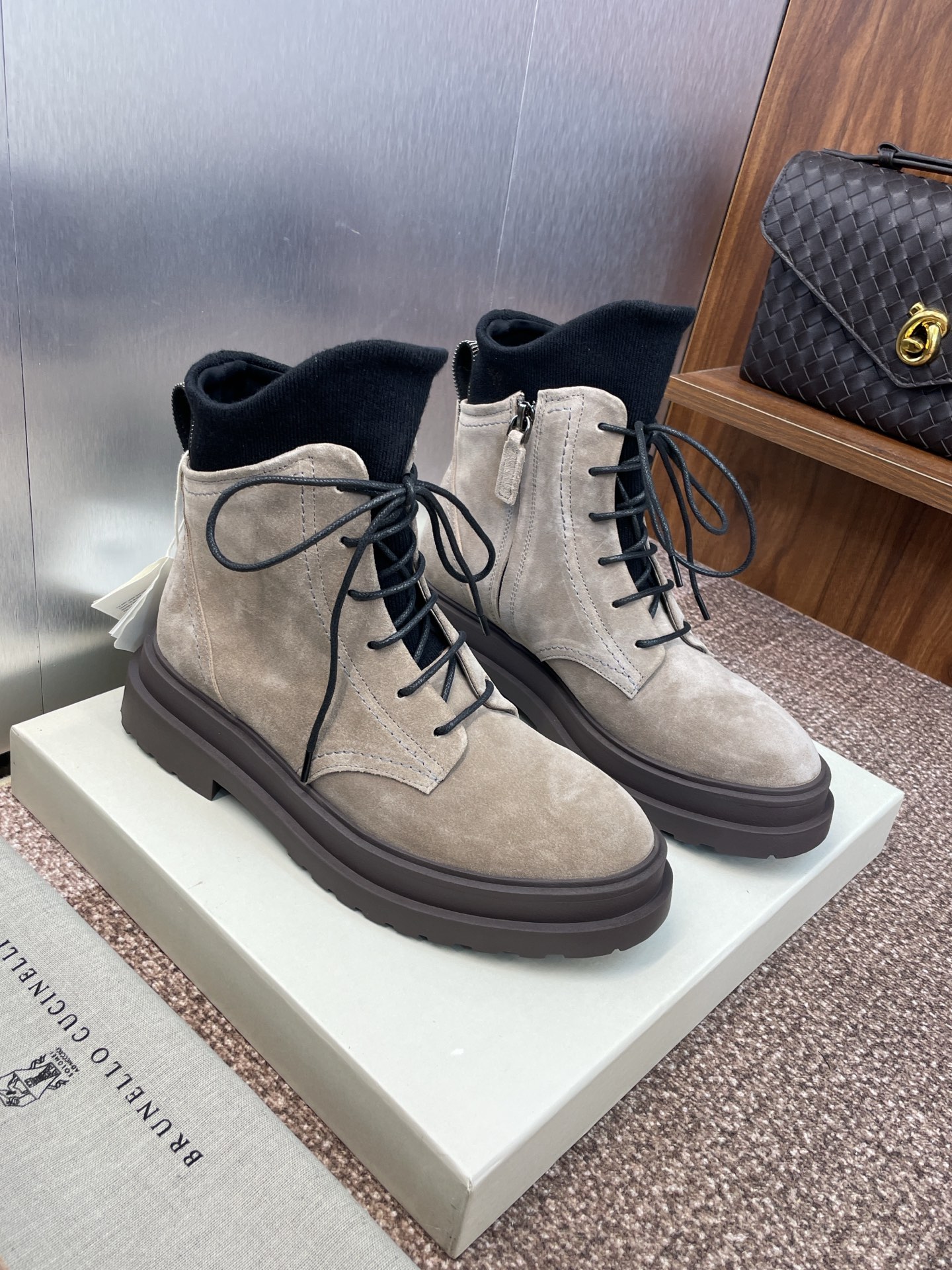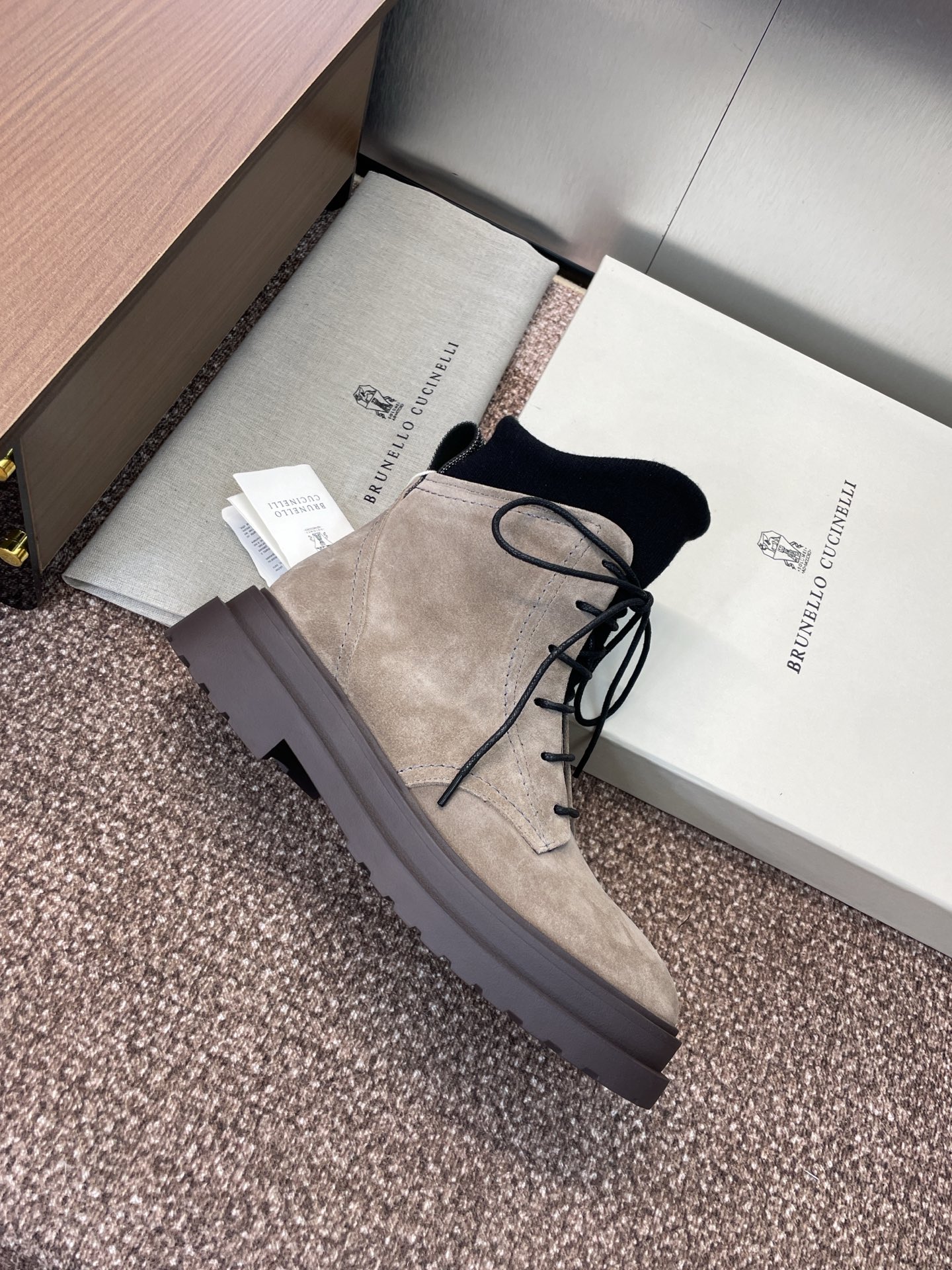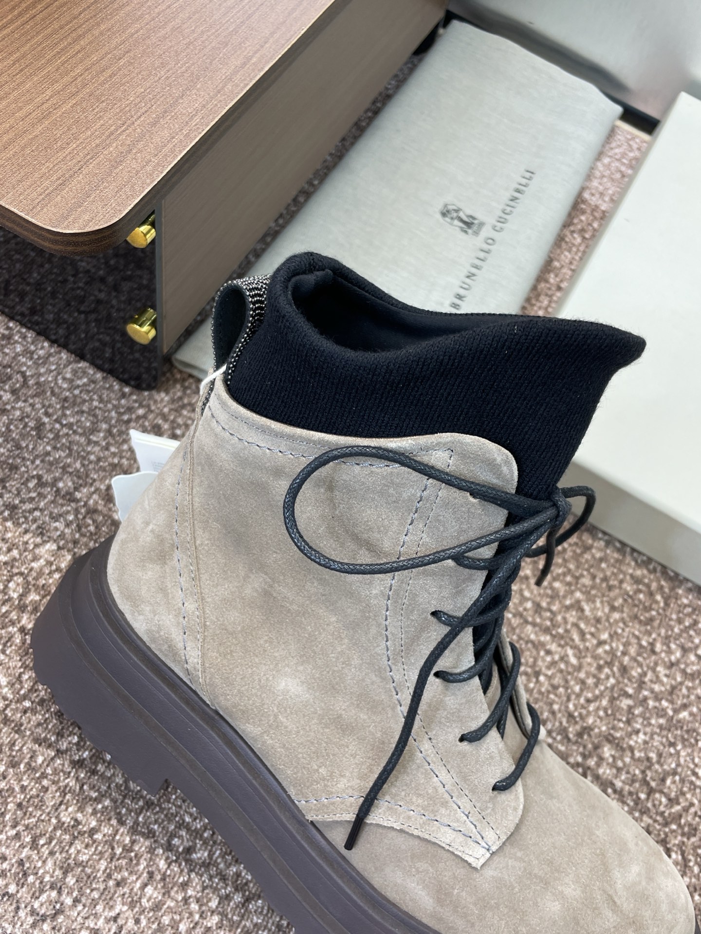 這款鞋子是AAAAA 1:1 質量(非常棒). 使用了和原版一模一樣的材料. 商標部分也保持了和Brunello Cucinelli一樣. 圖片拍攝是實物鞋子拍攝, 您所收到的實物保證和我們圖片一模一樣.