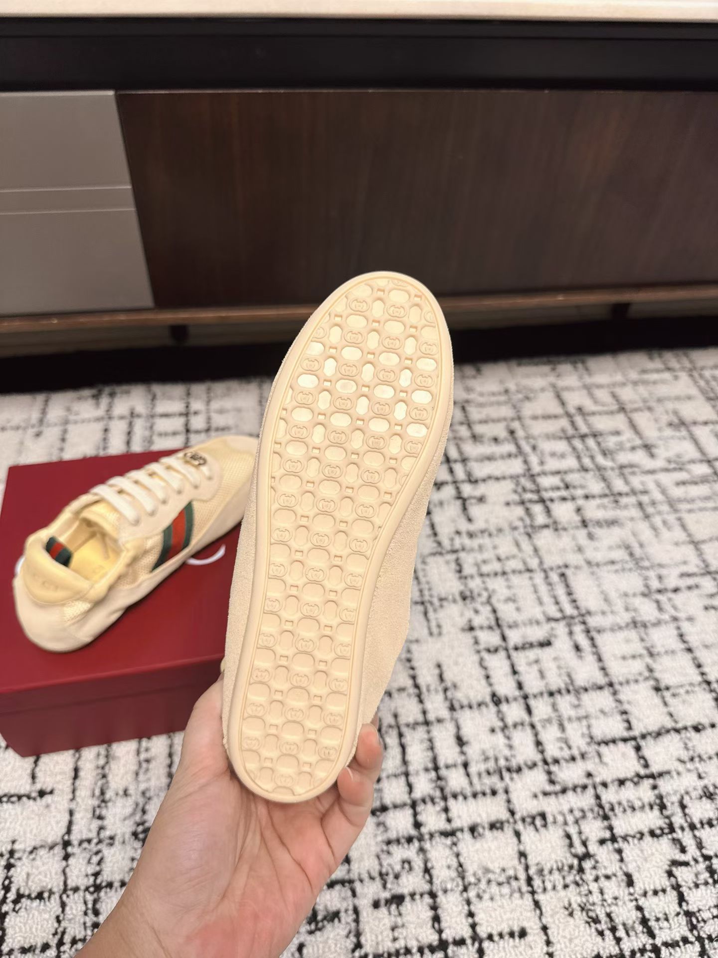 這款鞋子是AAAAA 1:1 質量(非常棒). 使用了和原版一模一樣的材料. 商標部分也保持了和古奇/Gucci一樣. 圖片拍攝是實物鞋子拍攝, 您所收到的實物保證和我們圖片一模一樣.
