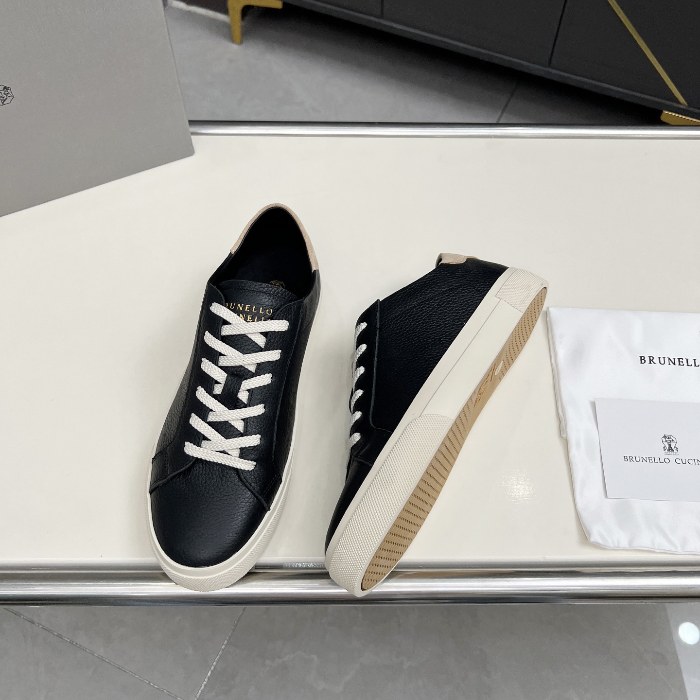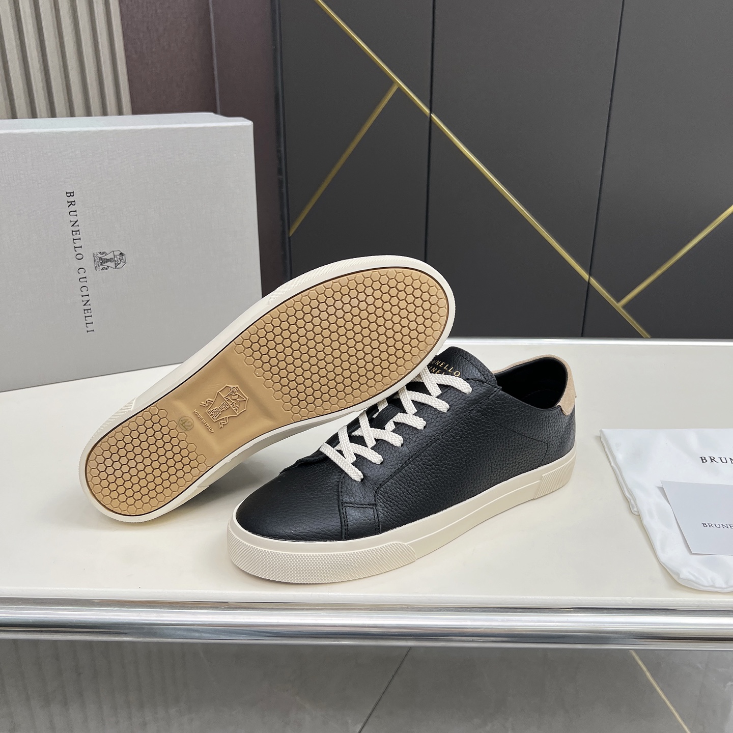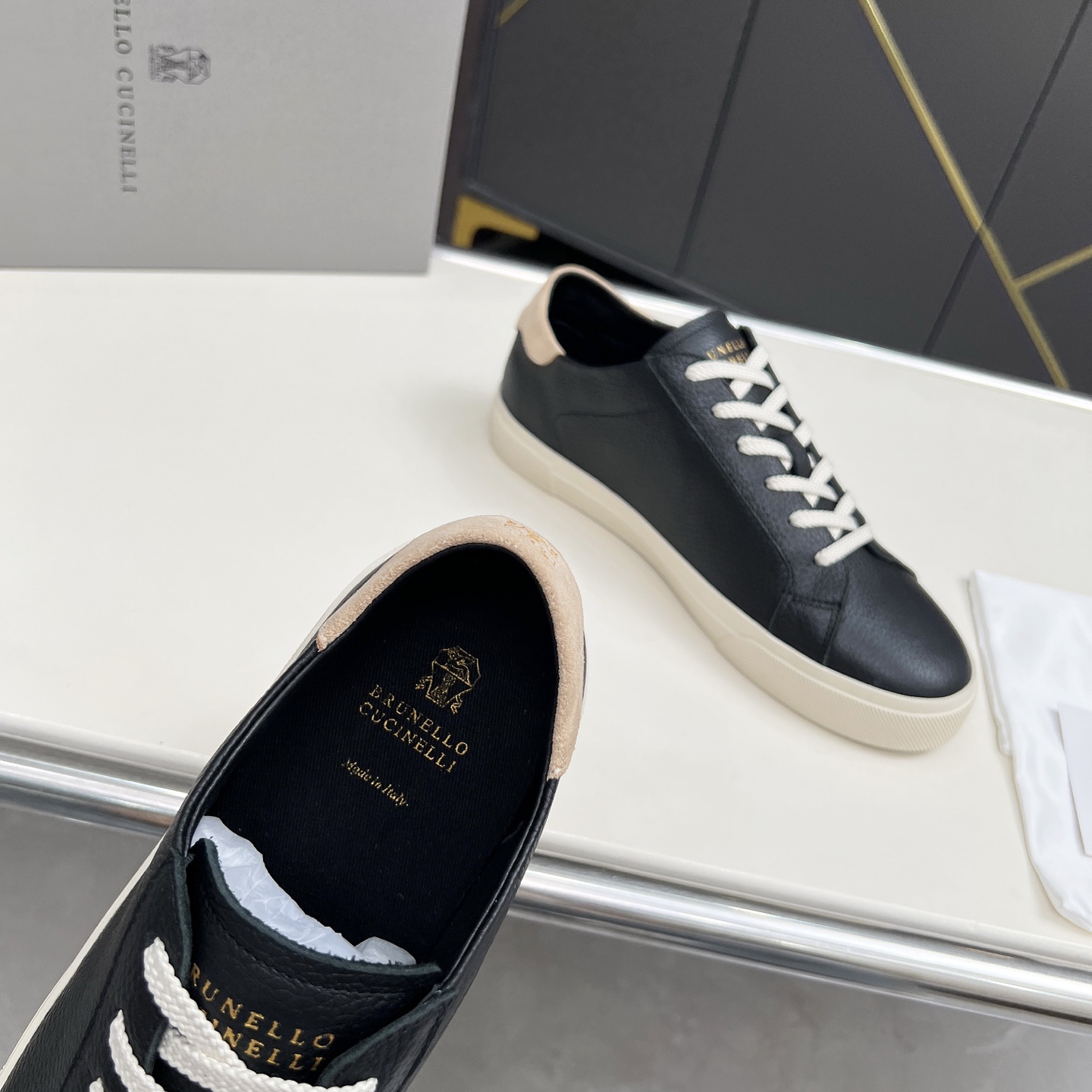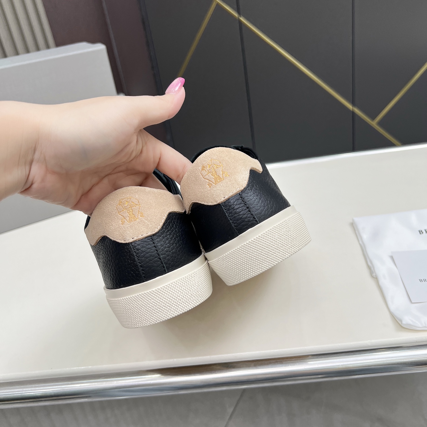 這款鞋子是AAAAA 1:1 質量(非常棒). 使用了和原版一模一樣的材料. 商標部分也保持了和Brunello Cucinelli一樣. 圖片拍攝是實物鞋子拍攝, 您所收到的實物保證和我們圖片一模一樣.