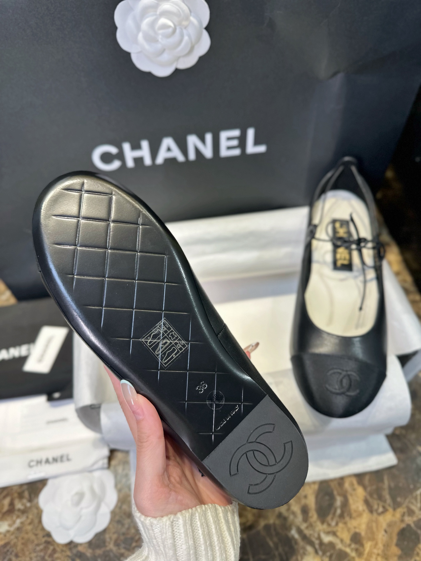 這款鞋子是AAAAA 1:1 質量(非常棒). 使用了和原版一模一樣的材料. 商標部分也保持了和香奈兒/Chanel一樣. 圖片拍攝是實物鞋子拍攝, 您所收到的實物保證和我們圖片一模一樣.