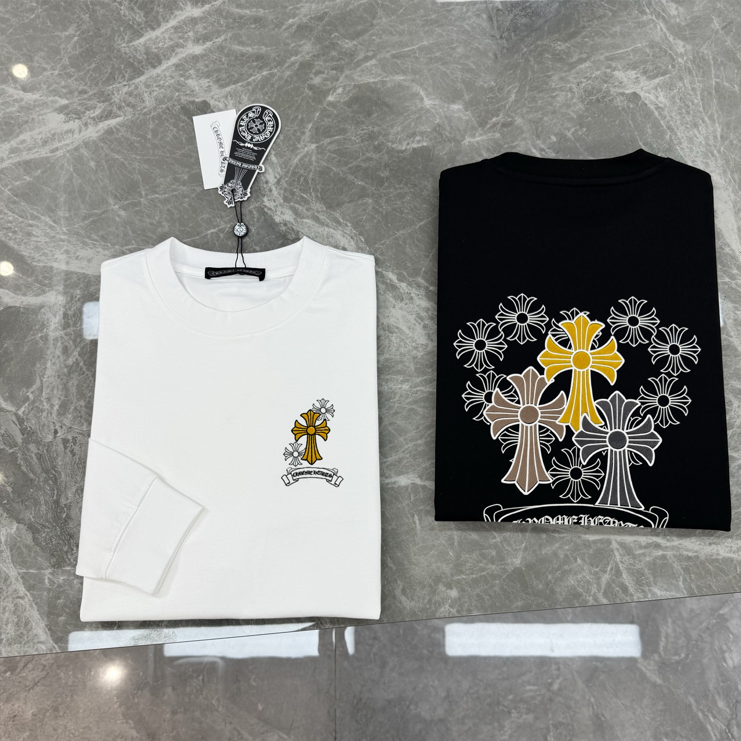 這款衣服是AAAAA 1:1 質量(非常棒). 使用了和原版一模一樣的材料. 商標部分也保持了和鉻心/Chrome Hearts一樣. 圖片拍攝是實物衣服拍攝, 您所收到的實物保證和我們圖片一模一樣.