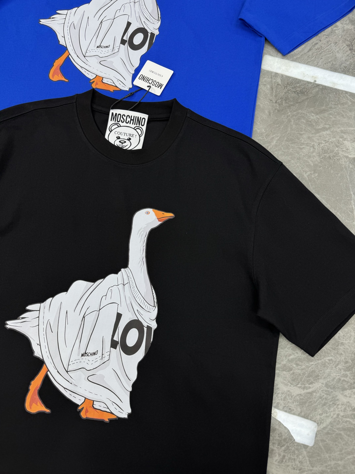 這款衣服是AAAAA 1:1 質量(非常棒). 使用了和原版一模一樣的材料. 商標部分也保持了和莫斯基諾/Moschino一樣. 圖片拍攝是實物衣服拍攝, 您所收到的實物保證和我們圖片一模一樣.