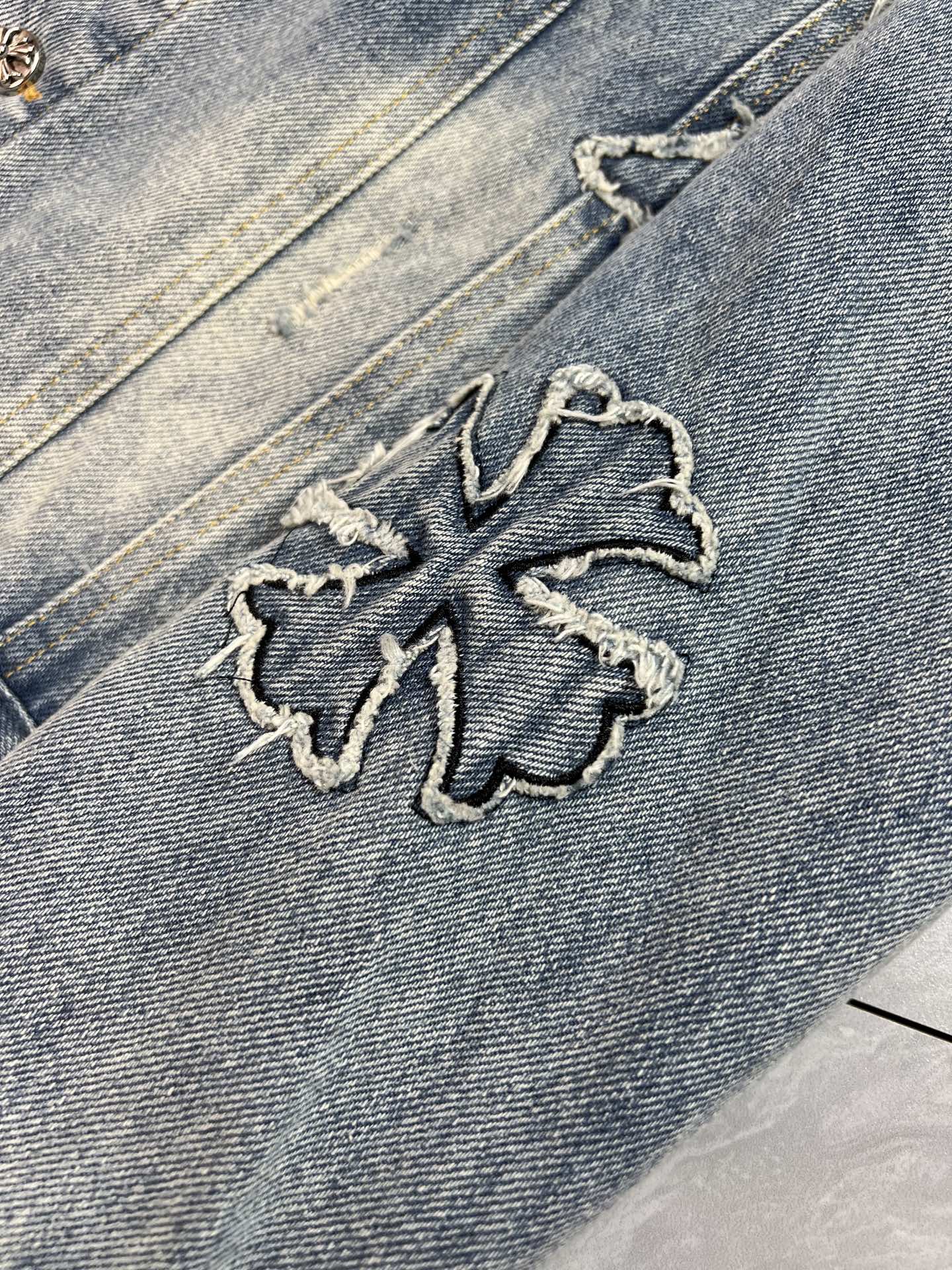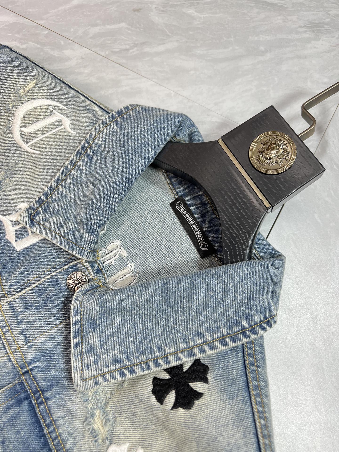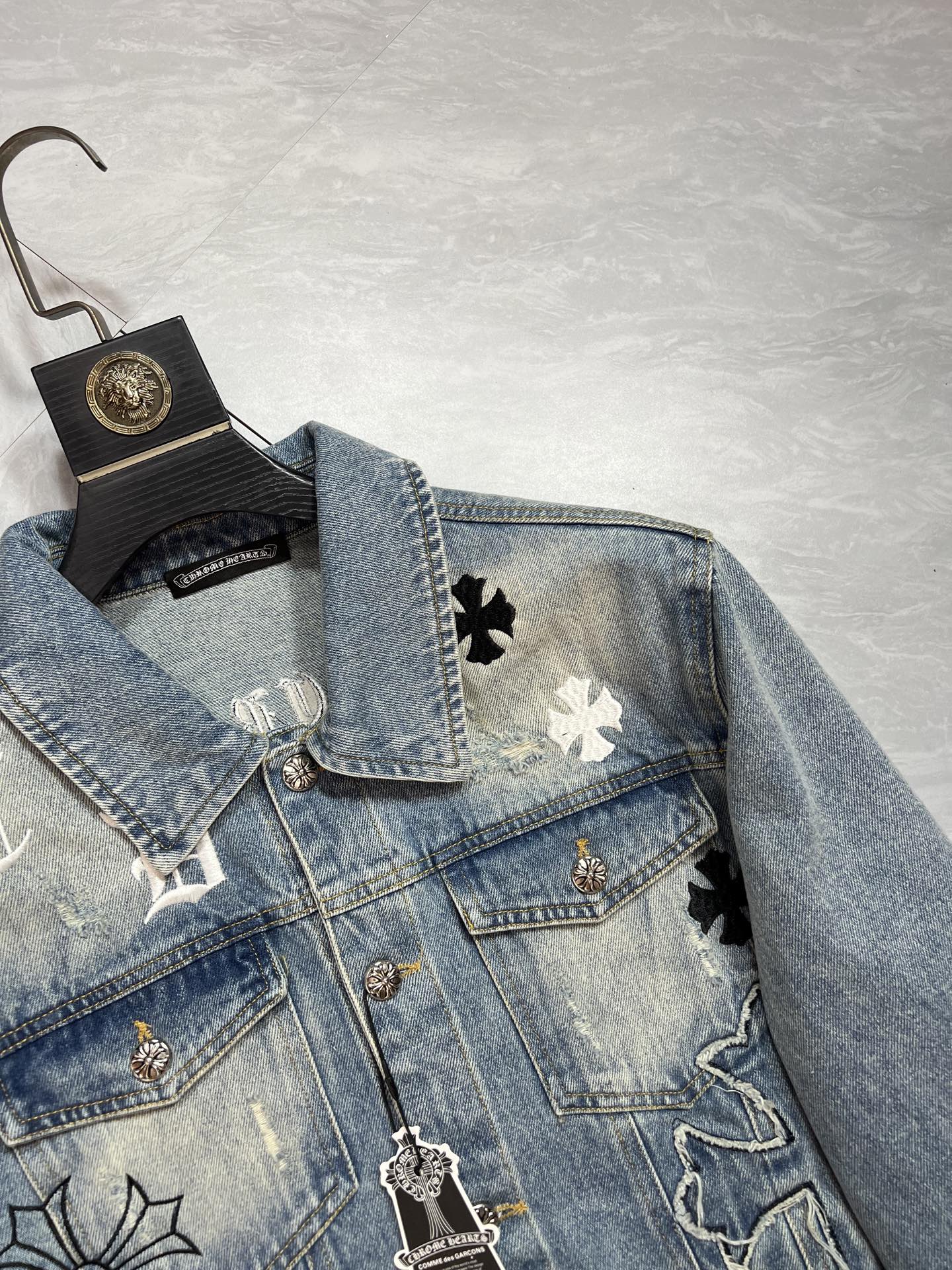 這款衣服是AAAAA 1:1 質量(非常棒). 使用了和原版一模一樣的材料. 商標部分也保持了和鉻心/Chrome Hearts一樣. 圖片拍攝是實物衣服拍攝, 您所收到的實物保證和我們圖片一模一樣.