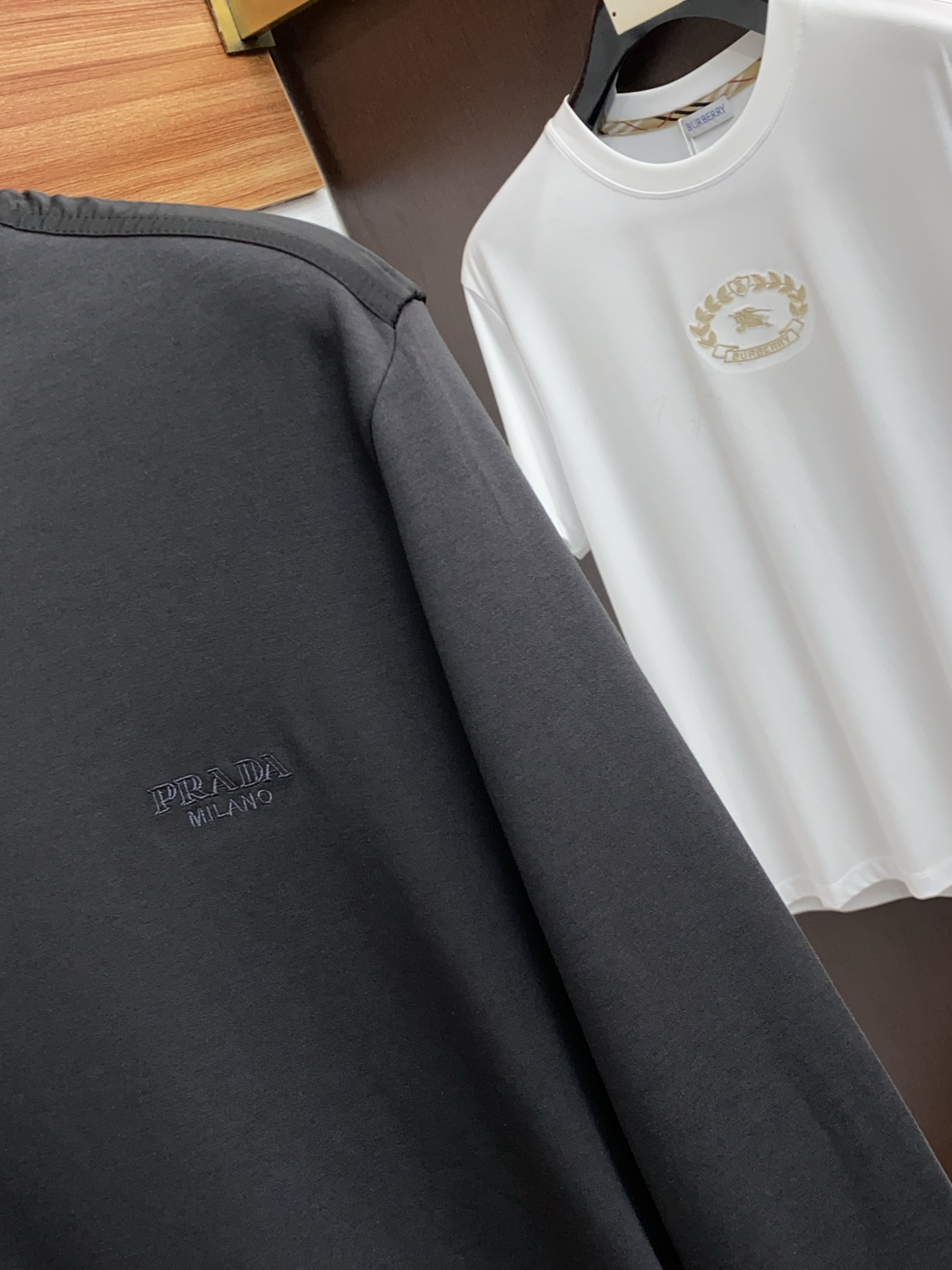 這款衣服是AAAAA 1:1 質量(非常棒). 使用了和原版一模一樣的材料. 商標部分也保持了和普拉達/Prada一樣. 圖片拍攝是實物衣服拍攝, 您所收到的實物保證和我們圖片一模一樣.
