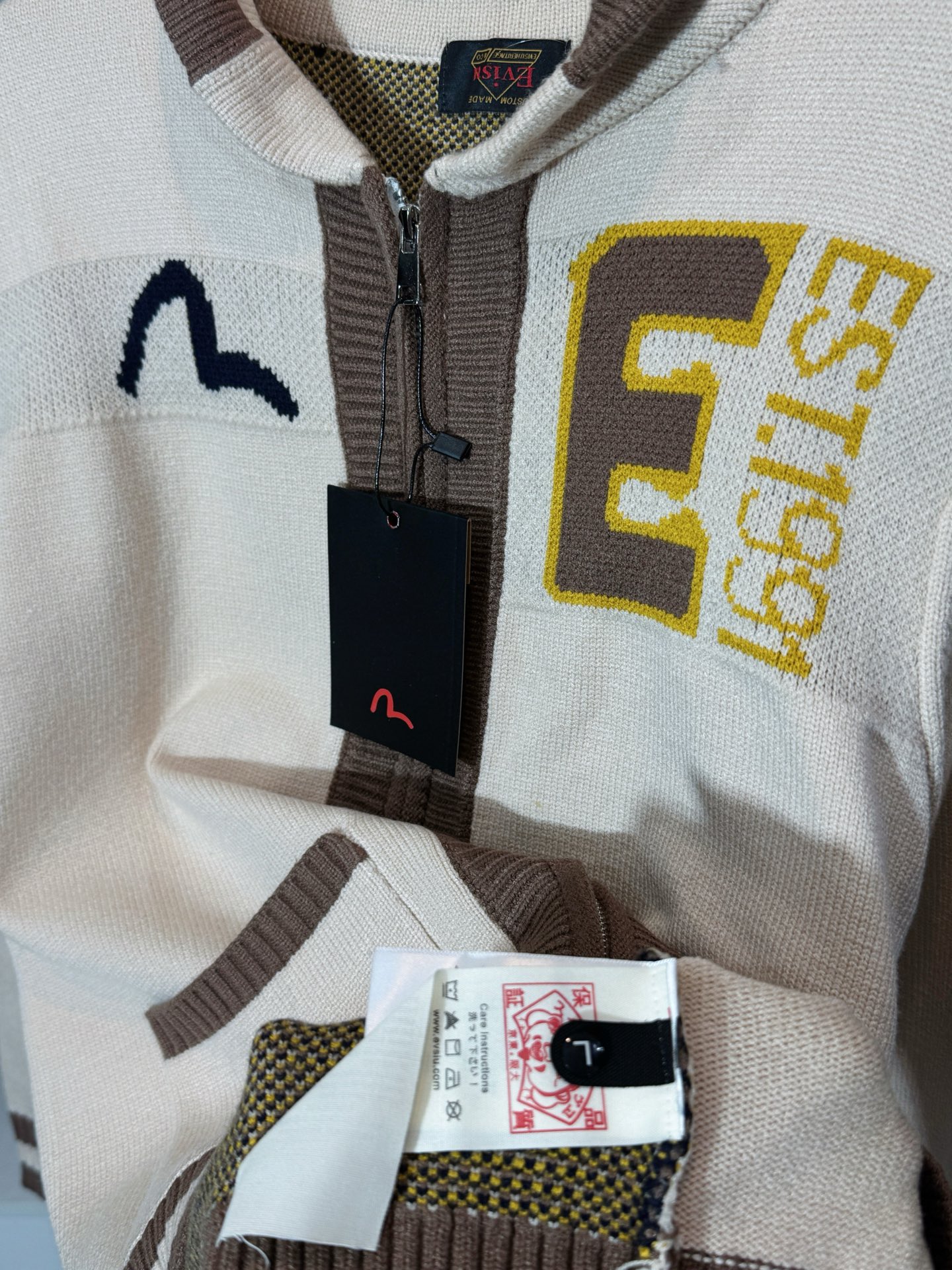 這款衣服是AAAAA 1:1 質量(非常棒). 使用了和原版一模一樣的材料. 商標部分也保持了和EVISU一樣. 圖片拍攝是實物衣服拍攝, 您所收到的實物保證和我們圖片一模一樣.