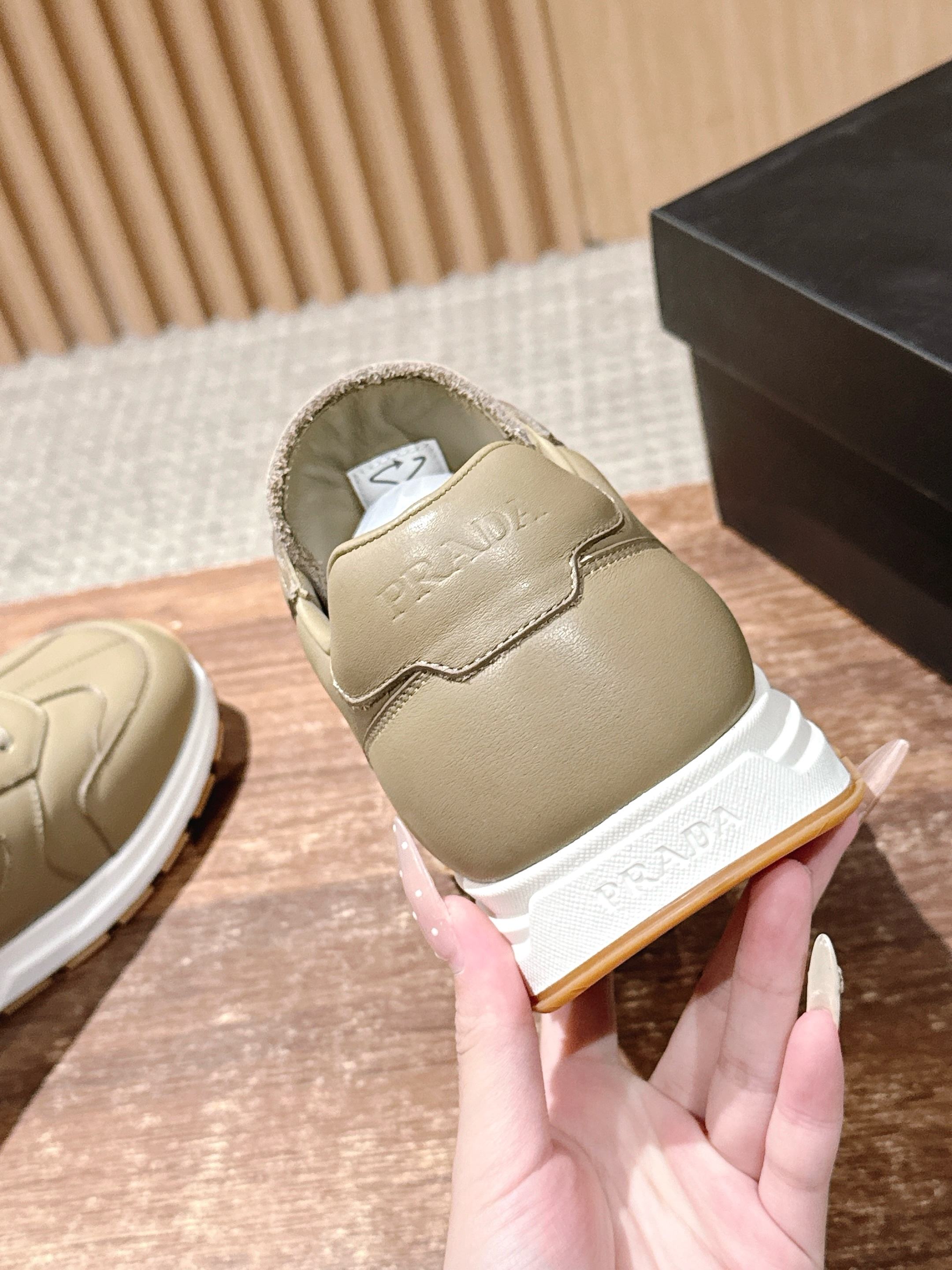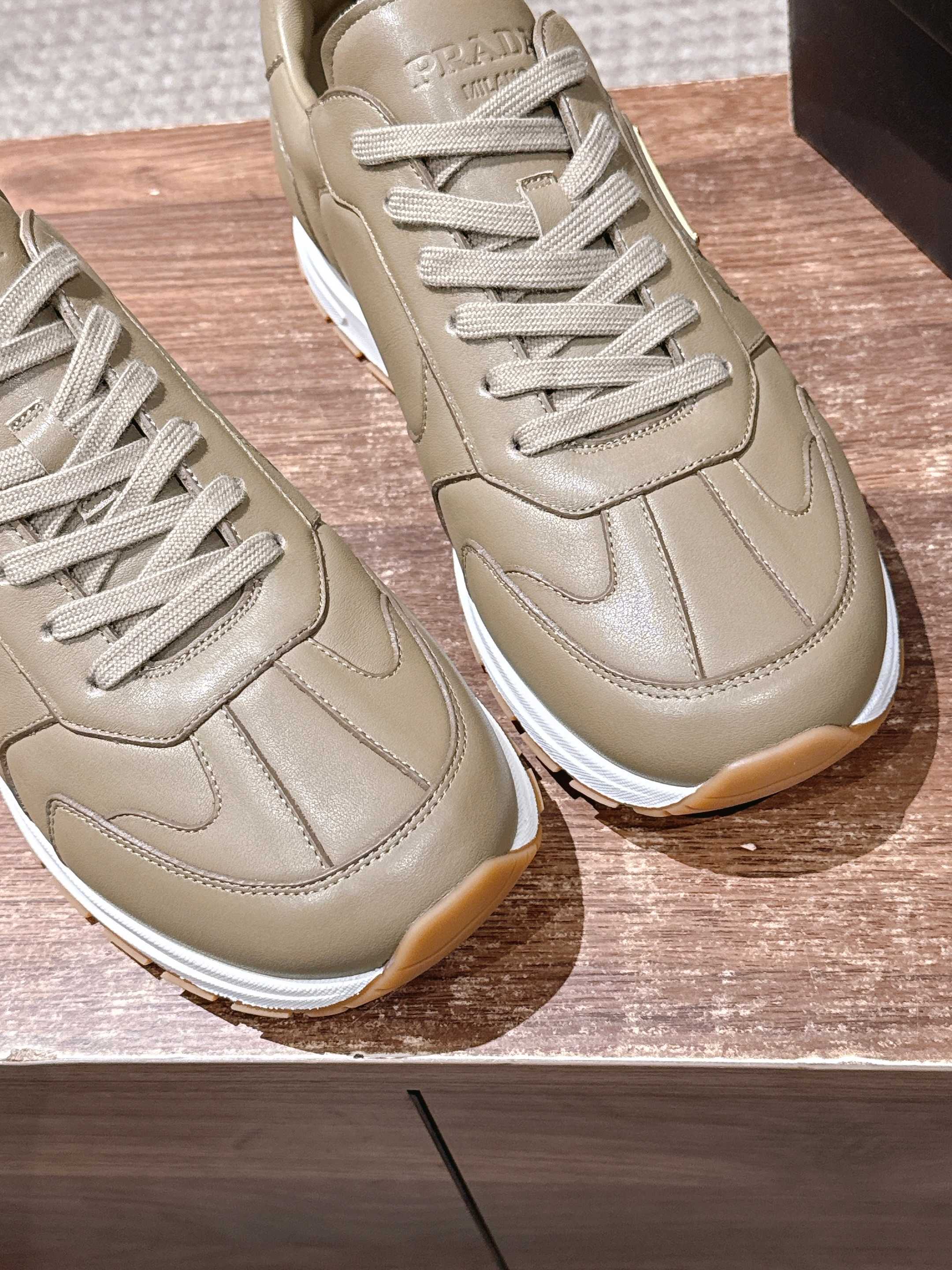這款鞋子是AAAAA 1:1 質量(非常棒). 使用了和原版一模一樣的材料. 商標部分也保持了和普拉達/Prada一樣. 圖片拍攝是實物鞋子拍攝, 您所收到的實物保證和我們圖片一模一樣.