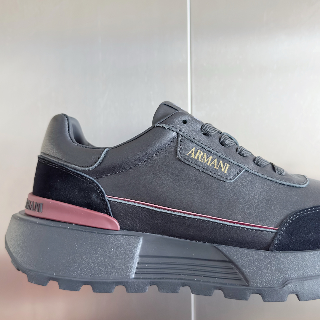 這款鞋子是AAAAA 1:1 質量(非常棒). 使用了和原版一模一樣的材料. 商標部分也保持了和阿瑪尼/Armani一樣. 圖片拍攝是實物鞋子拍攝, 您所收到的實物保證和我們圖片一模一樣.