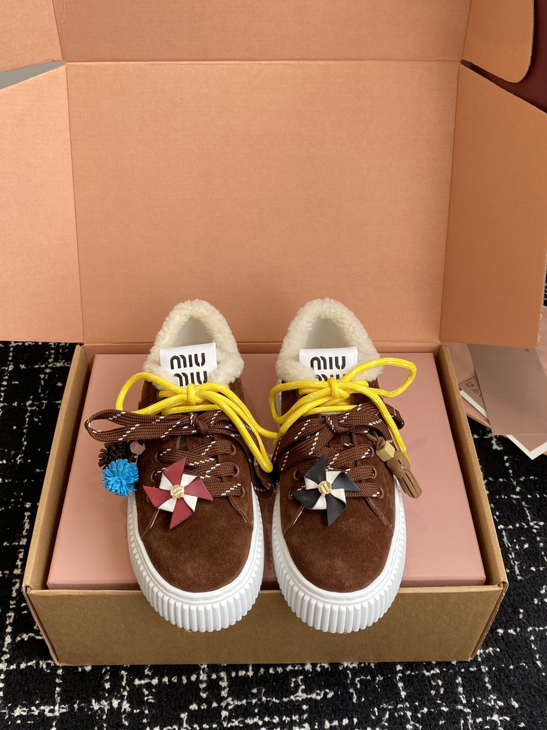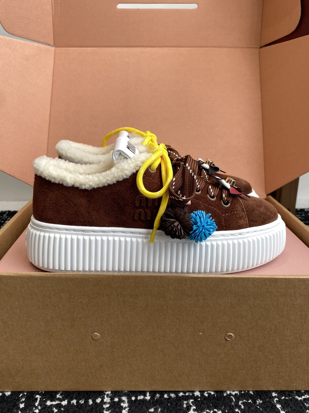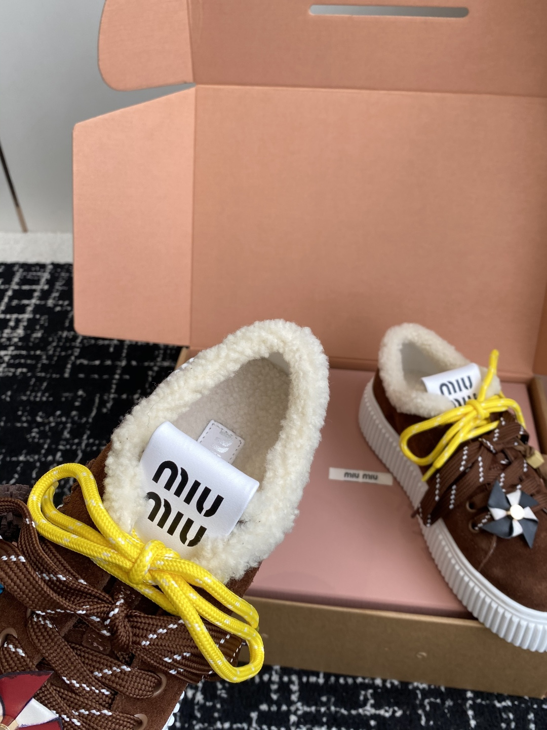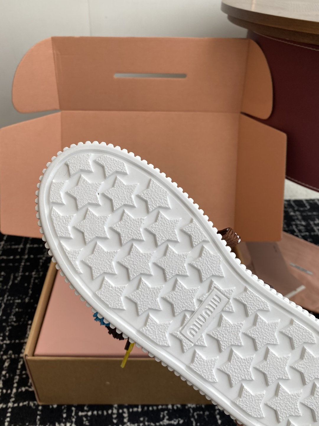 這款鞋子是AAAAA 1:1 質量(非常棒). 使用了和原版一模一樣的材料. 商標部分也保持了和繆繆/Miu Miu一樣. 圖片拍攝是實物鞋子拍攝, 您所收到的實物保證和我們圖片一模一樣.