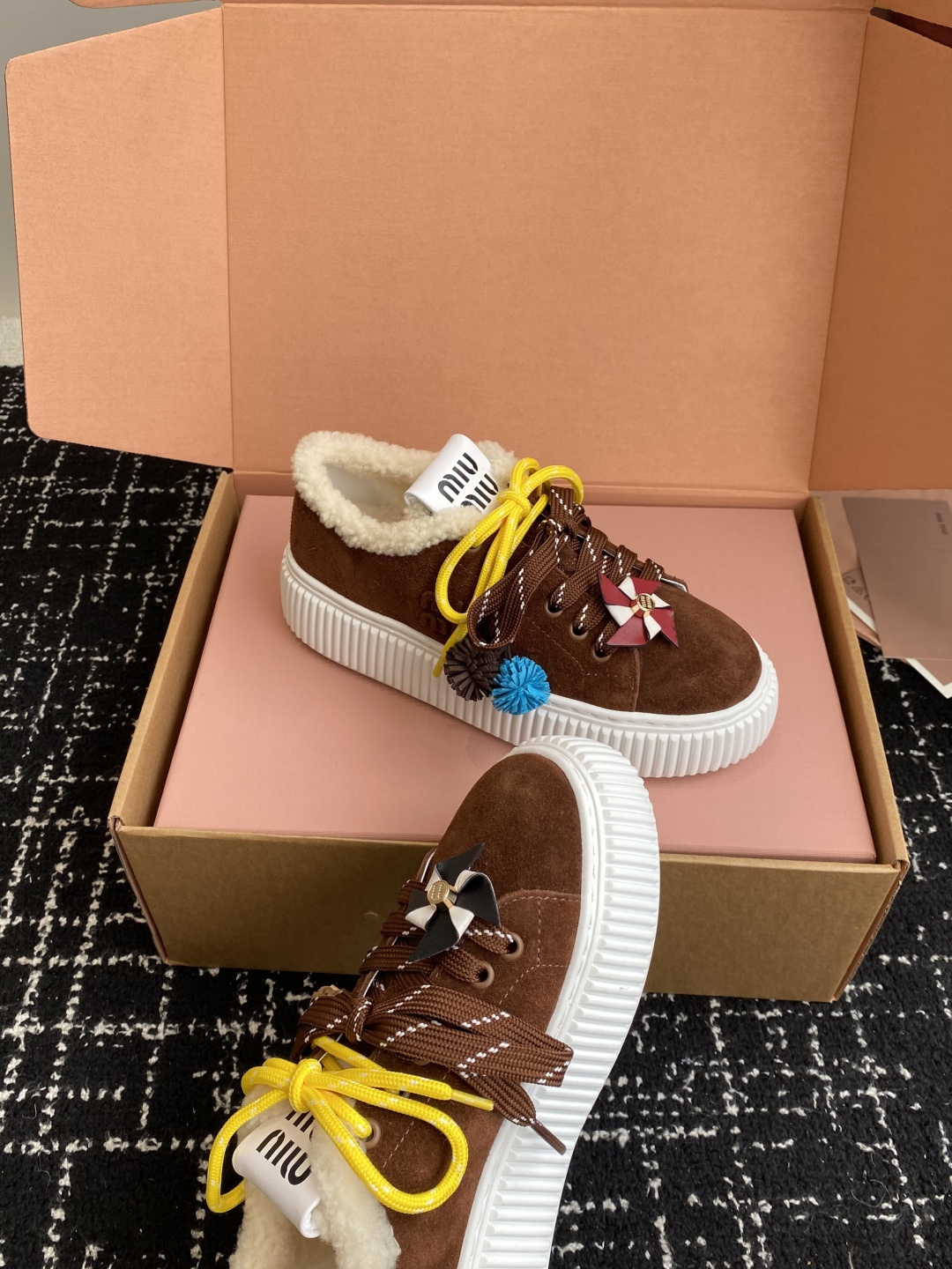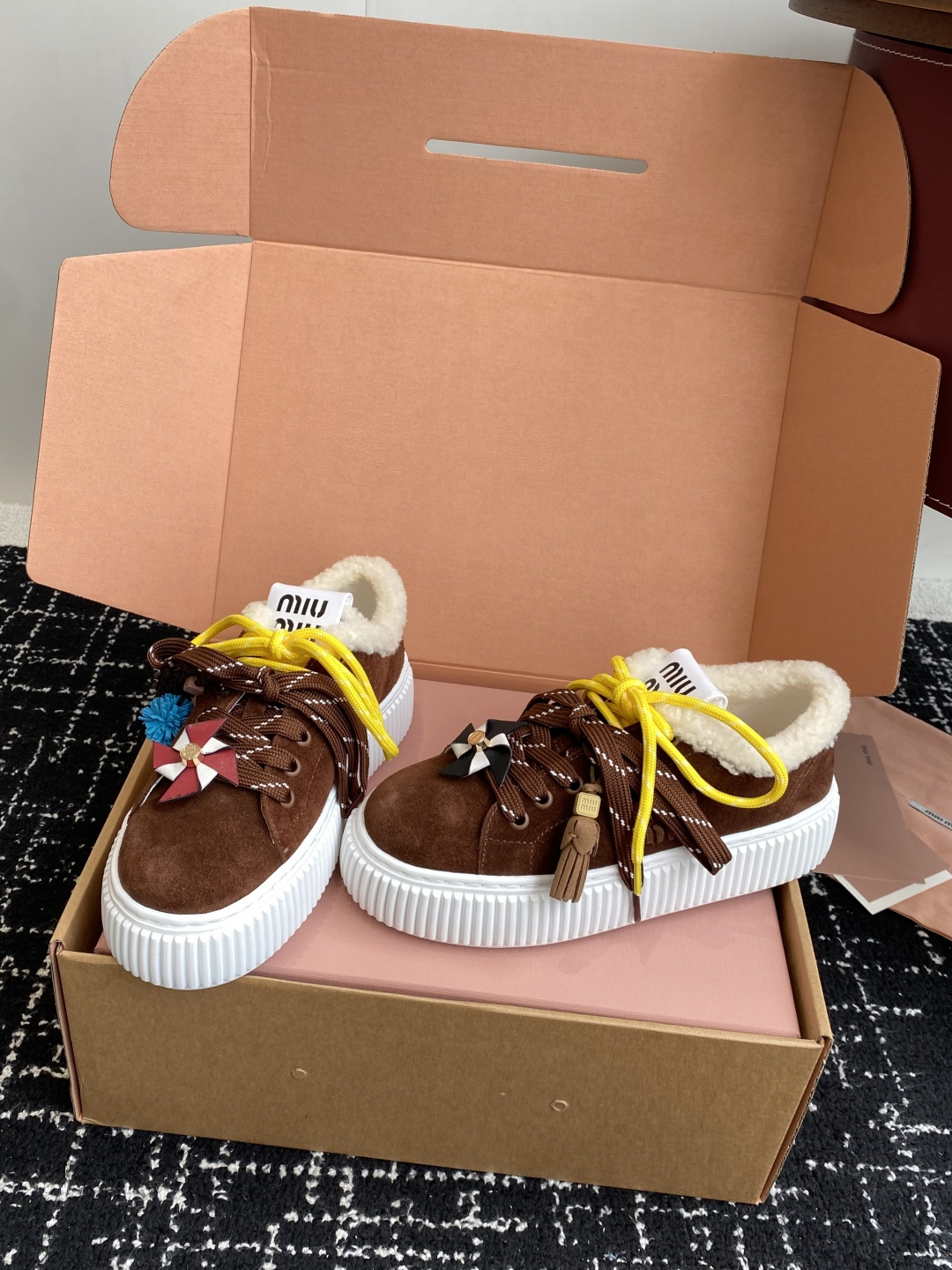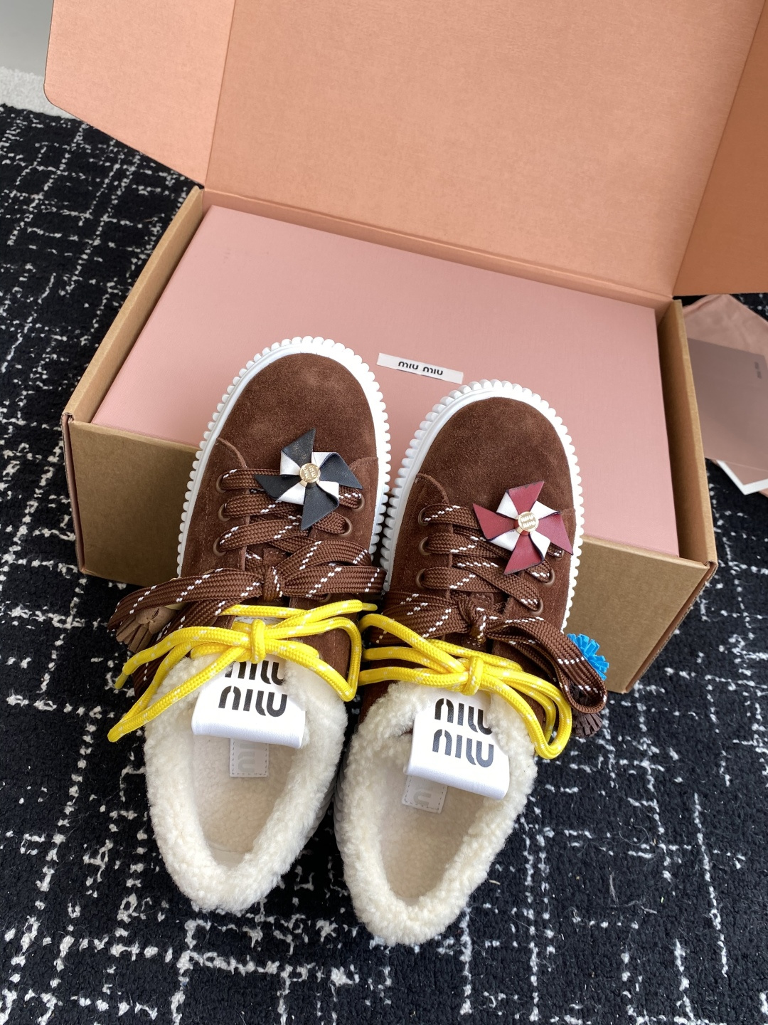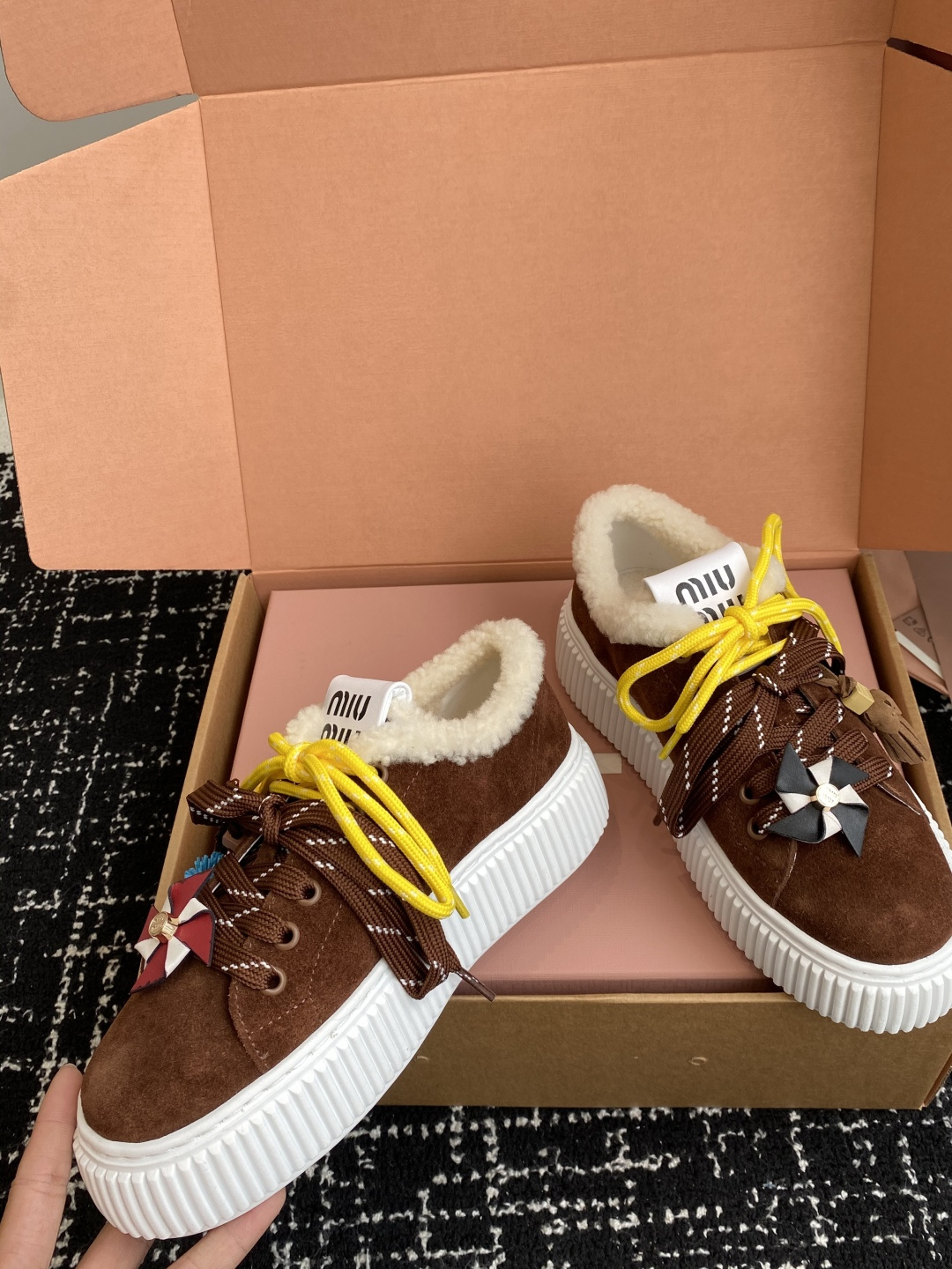 這款鞋子是AAAAA 1:1 質量(非常棒). 使用了和原版一模一樣的材料. 商標部分也保持了和繆繆/Miu Miu一樣. 圖片拍攝是實物鞋子拍攝, 您所收到的實物保證和我們圖片一模一樣.