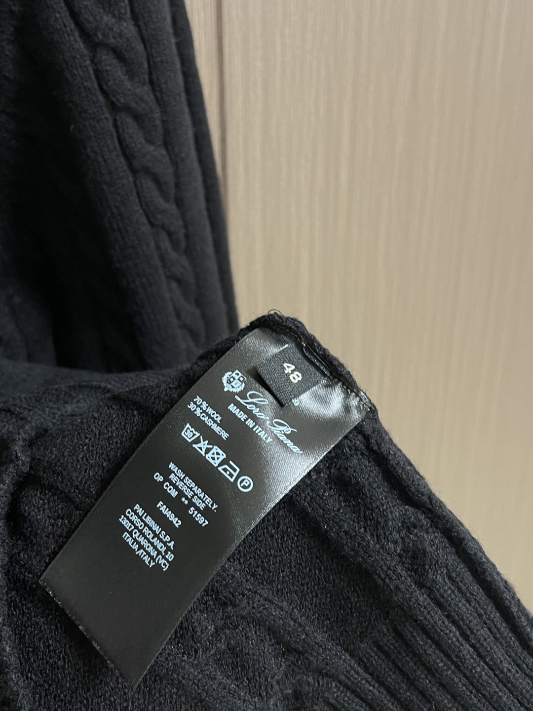 這款衣服是AAAAA 1:1 質量(非常棒). 使用了和原版一模一樣的材料. 商標部分也保持了和Loro Piana一樣. 圖片拍攝是實物衣服拍攝, 您所收到的實物保證和我們圖片一模一樣.
