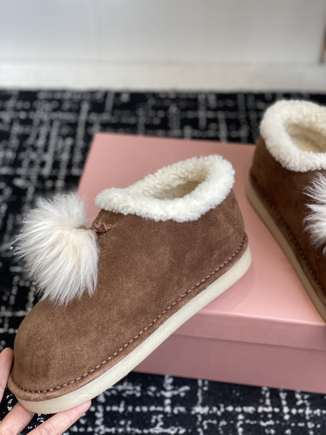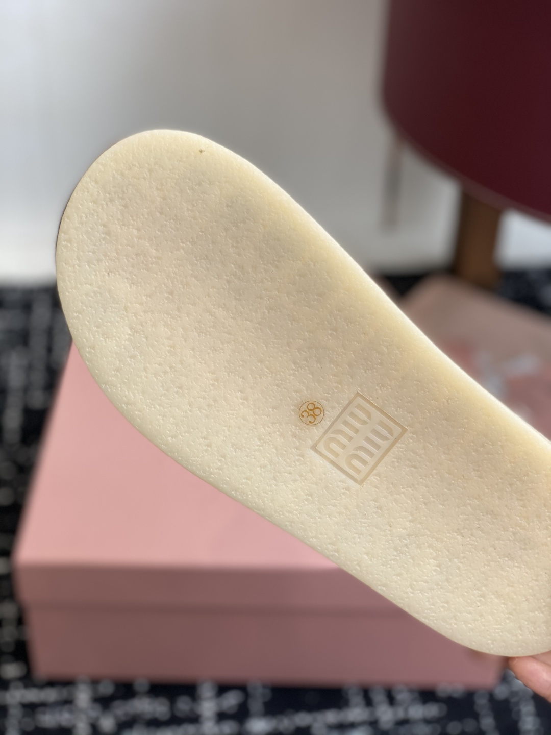 這款鞋子是AAAAA 1:1 質量(非常棒). 使用了和原版一模一樣的材料. 商標部分也保持了和繆繆/Miu Miu一樣. 圖片拍攝是實物鞋子拍攝, 您所收到的實物保證和我們圖片一模一樣.