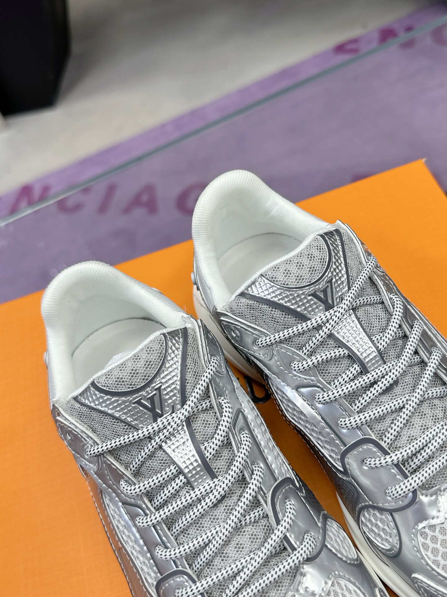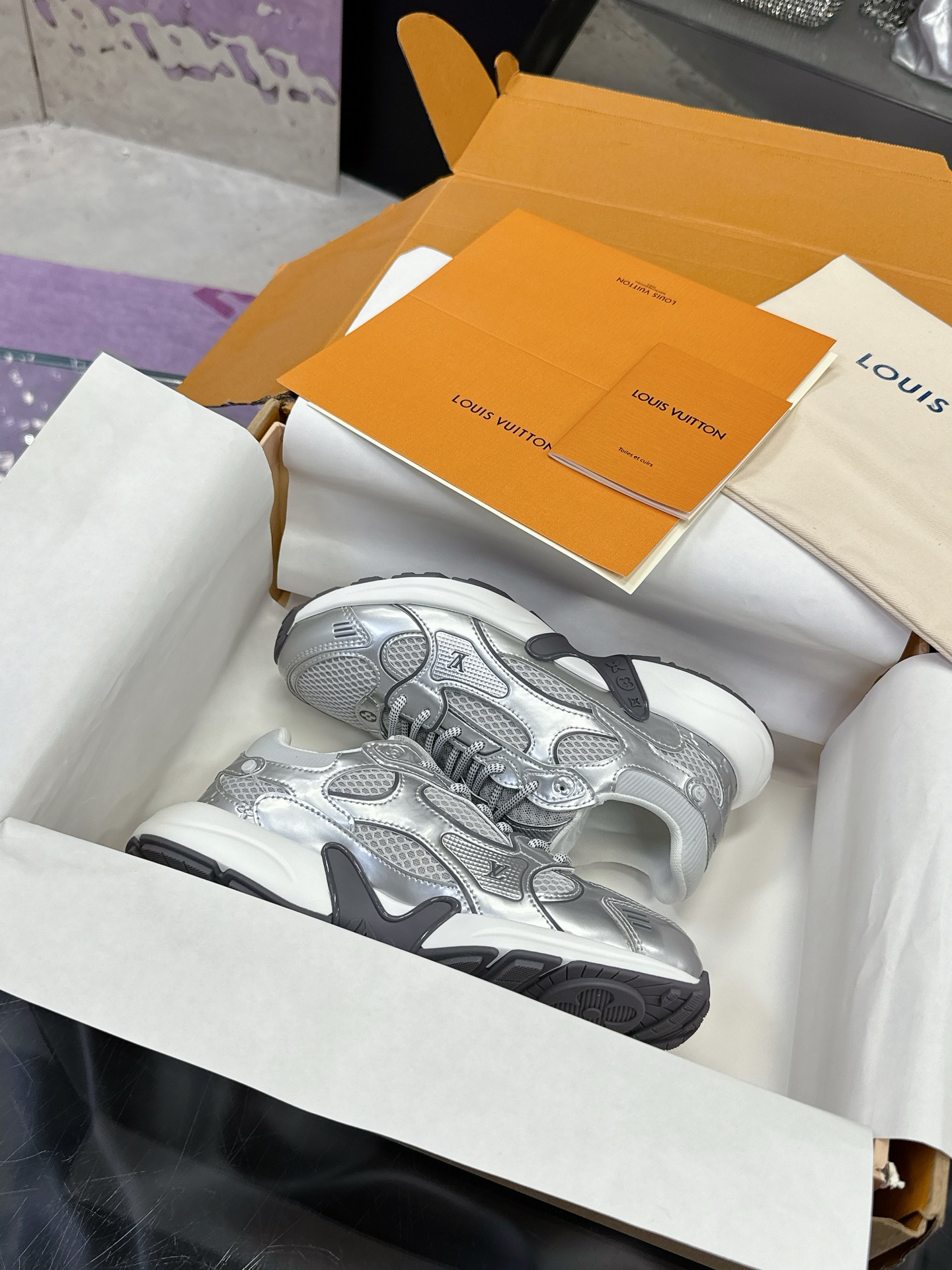 這款鞋子是AAAAA 1:1 質量(非常棒). 使用了和原版一模一樣的材料. 商標部分也保持了和路易威登/Louis Vuitton一樣. 圖片拍攝是實物鞋子拍攝, 您所收到的實物保證和我們圖片一模一樣.
