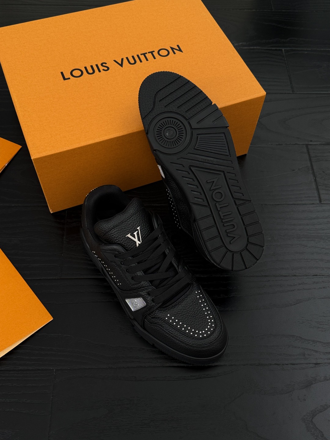這款鞋子是AAAAA 1:1 質量(非常棒). 使用了和原版一模一樣的材料. 商標部分也保持了和路易威登/Louis Vuitton一樣. 圖片拍攝是實物鞋子拍攝, 您所收到的實物保證和我們圖片一模一樣.