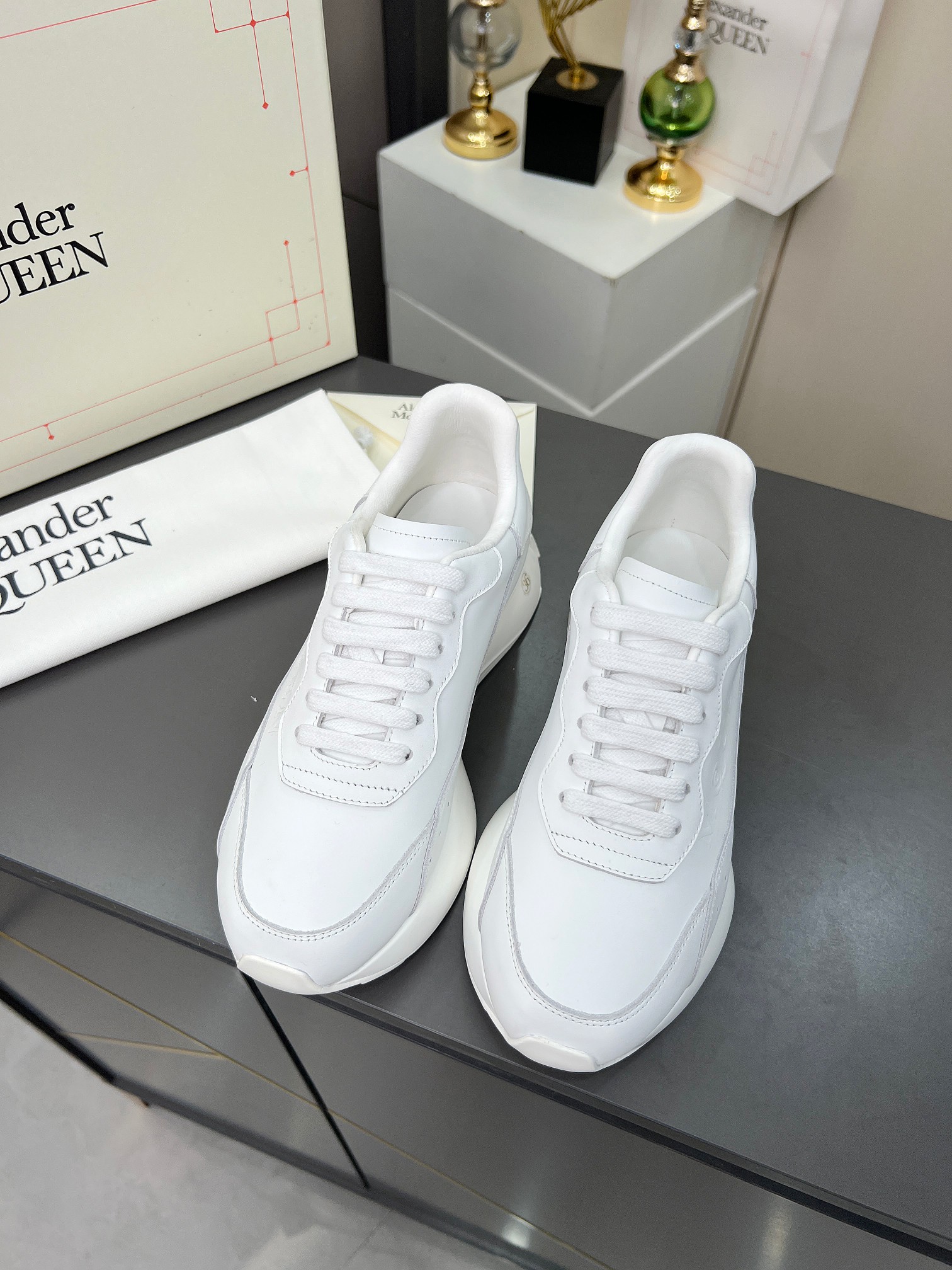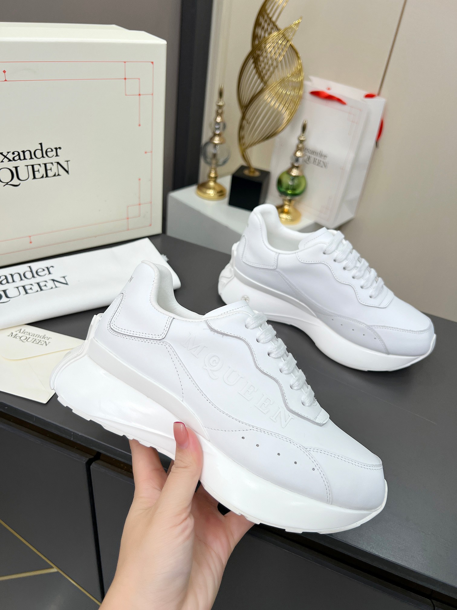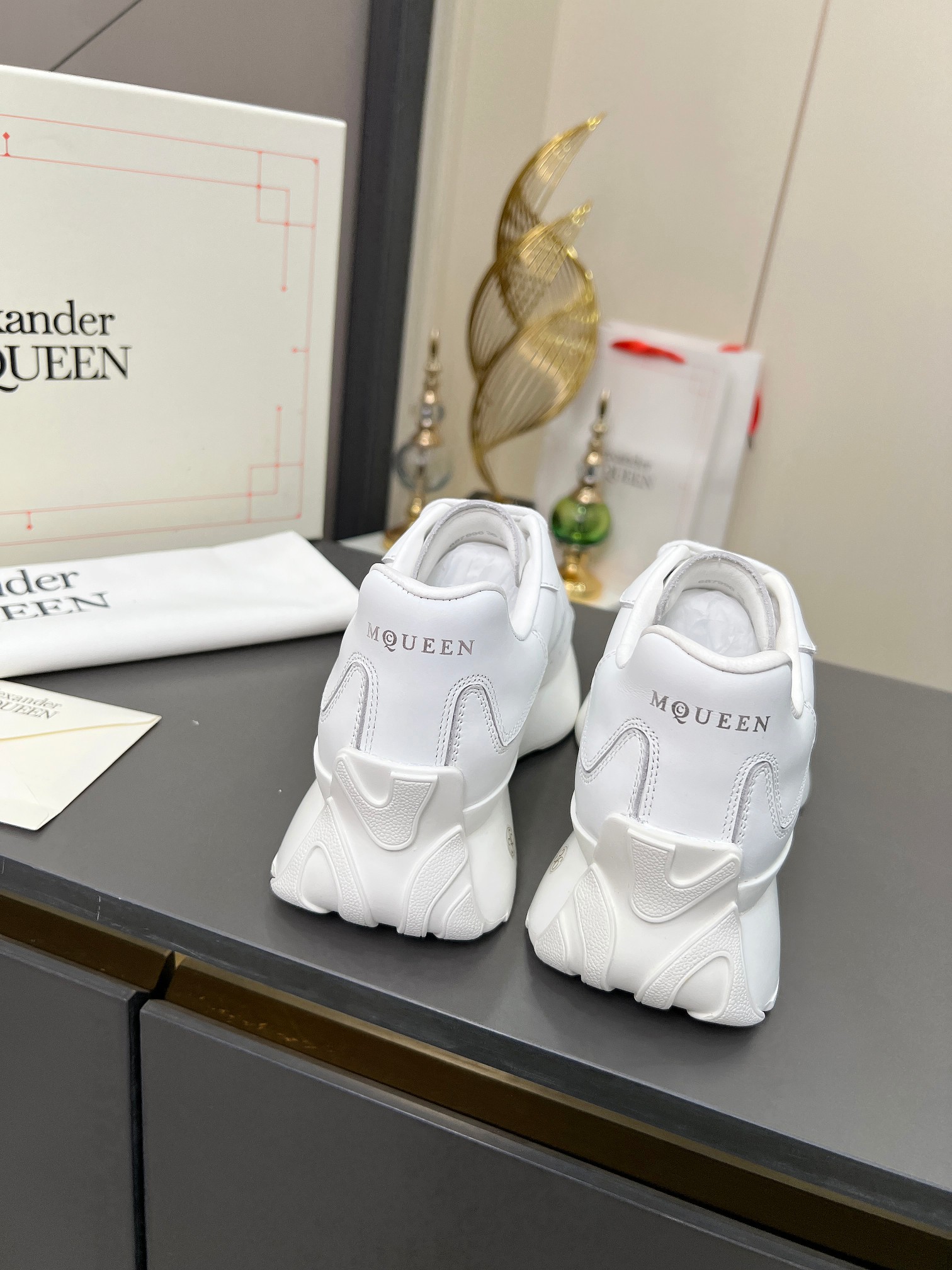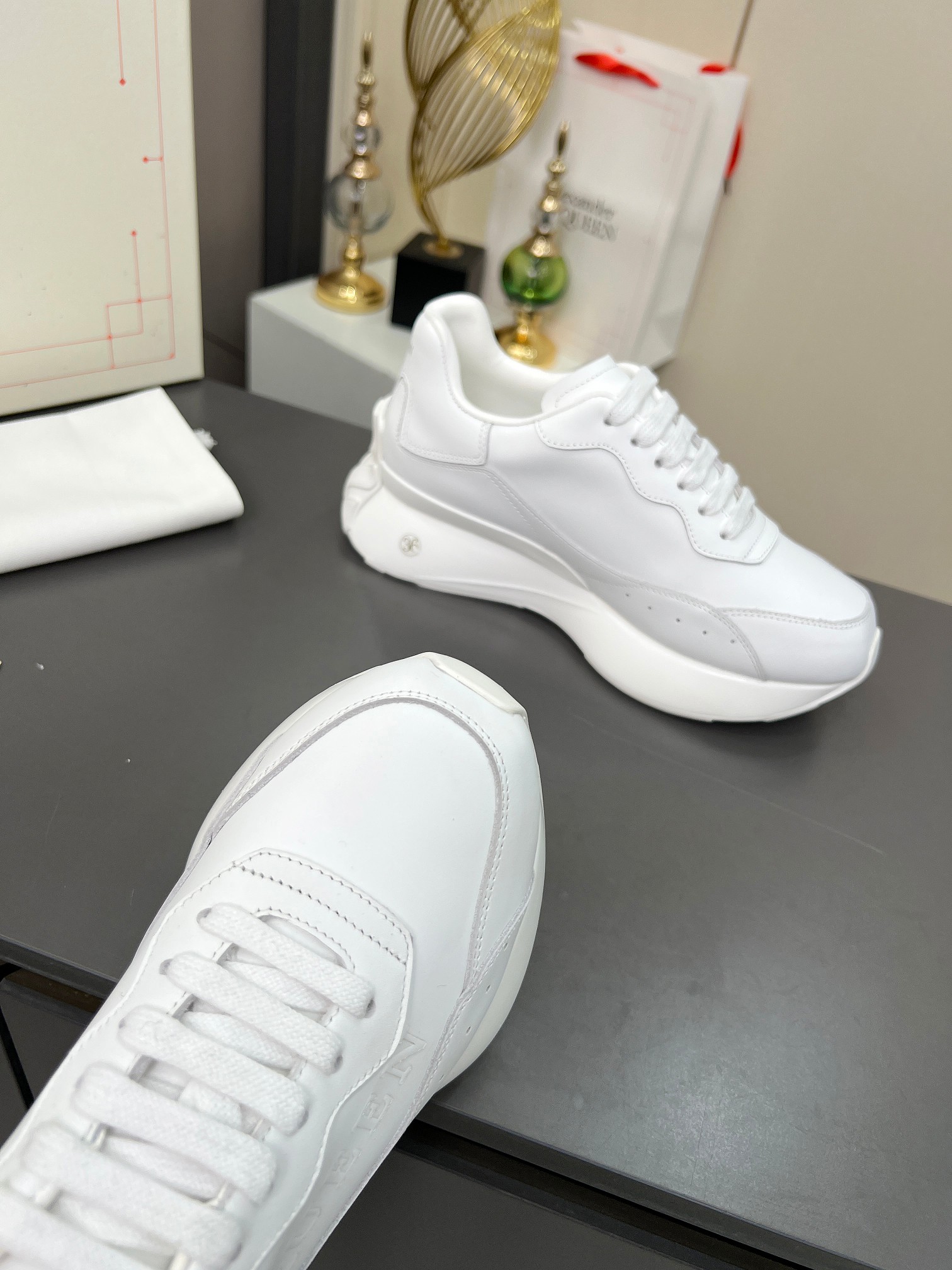 這款鞋子是AAAAA 1:1 質量(非常棒). 使用了和原版一模一樣的材料. 商標部分也保持了和麥奎恩/McQueen一樣. 圖片拍攝是實物鞋子拍攝, 您所收到的實物保證和我們圖片一模一樣.