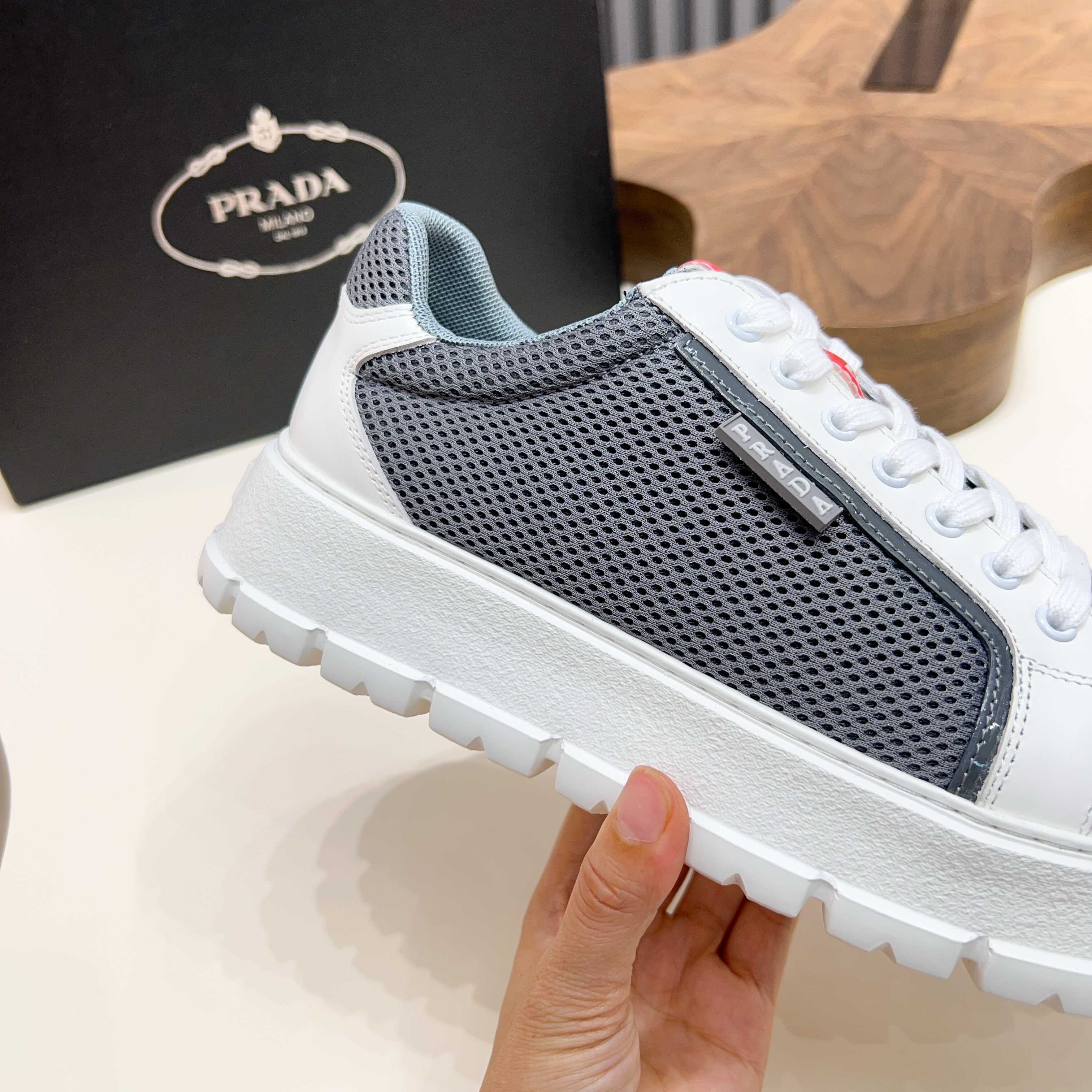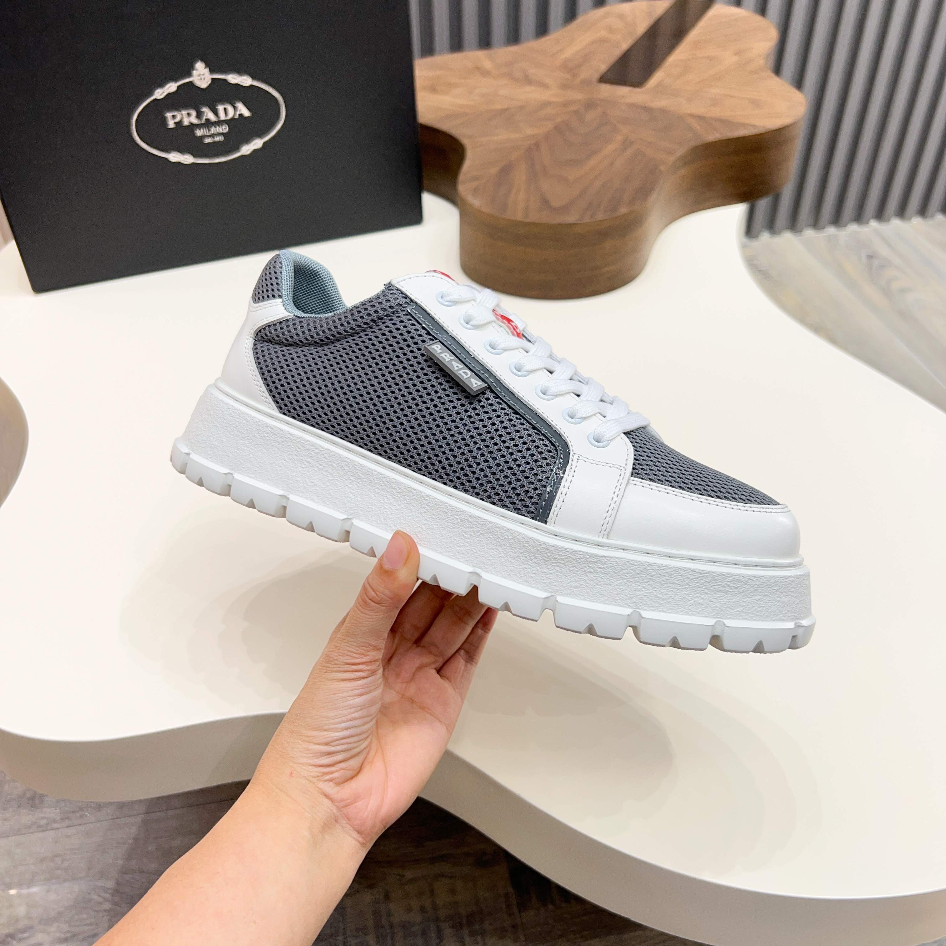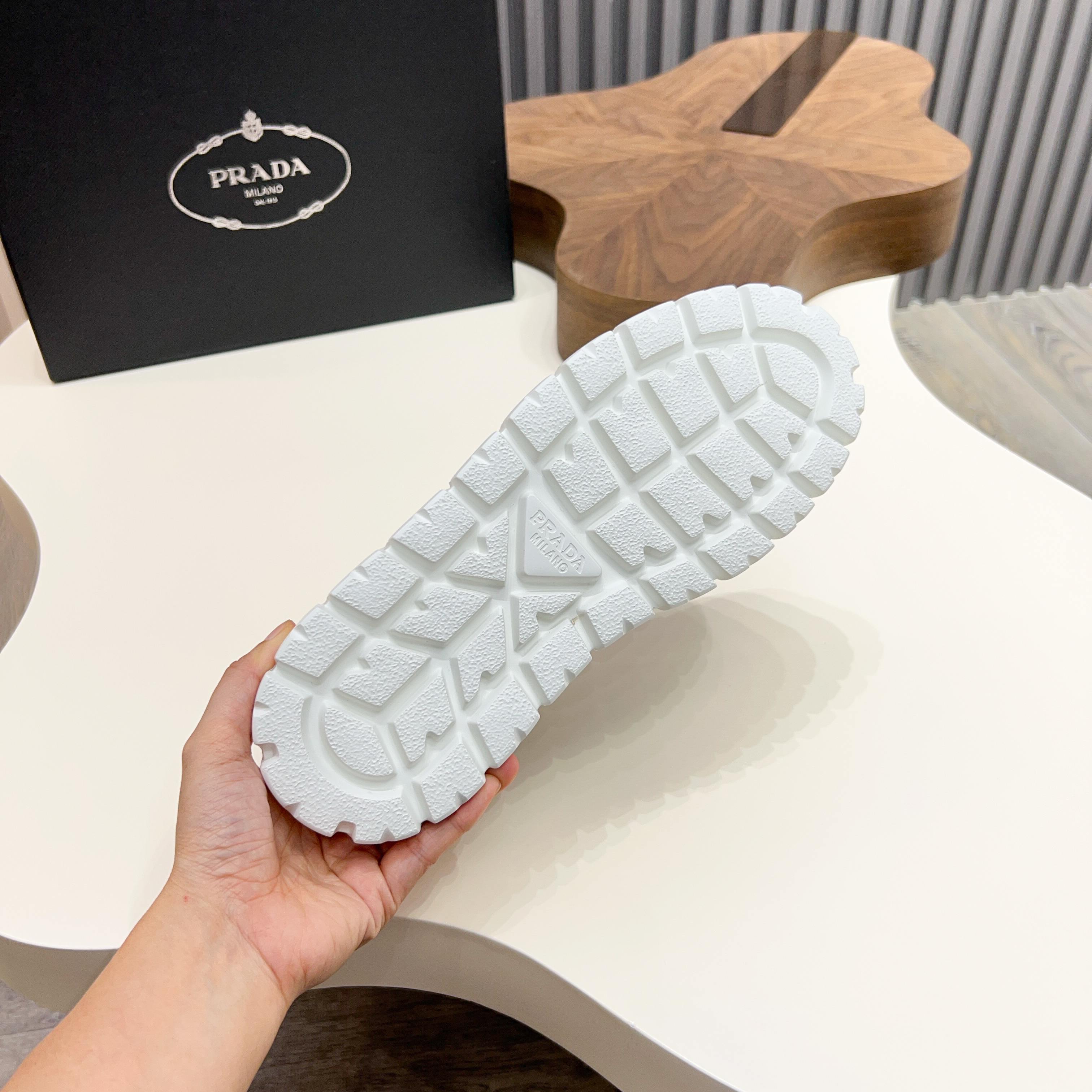 這款鞋子是AAAAA 1:1 質量(非常棒). 使用了和原版一模一樣的材料. 商標部分也保持了和普拉達/Prada一樣. 圖片拍攝是實物鞋子拍攝, 您所收到的實物保證和我們圖片一模一樣.