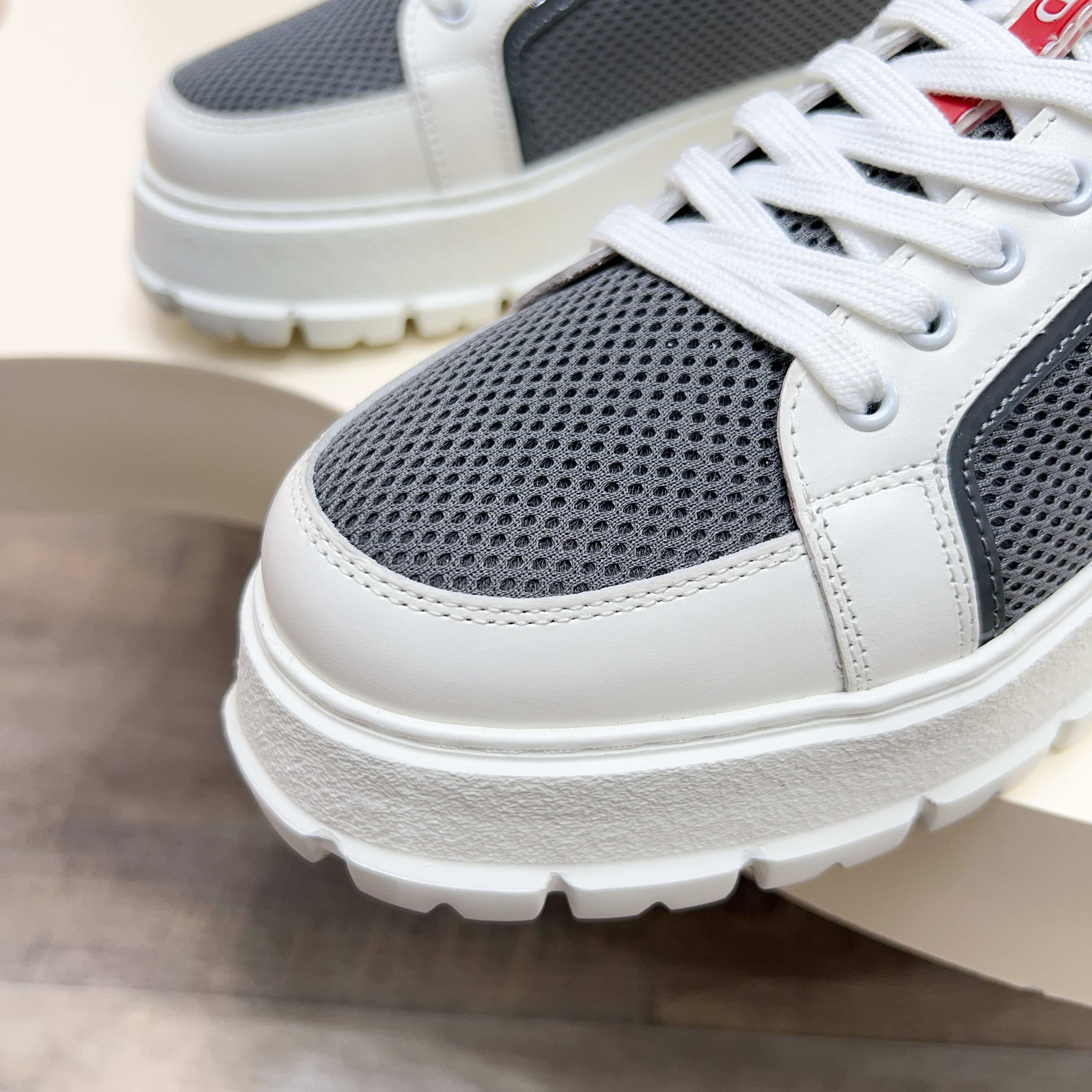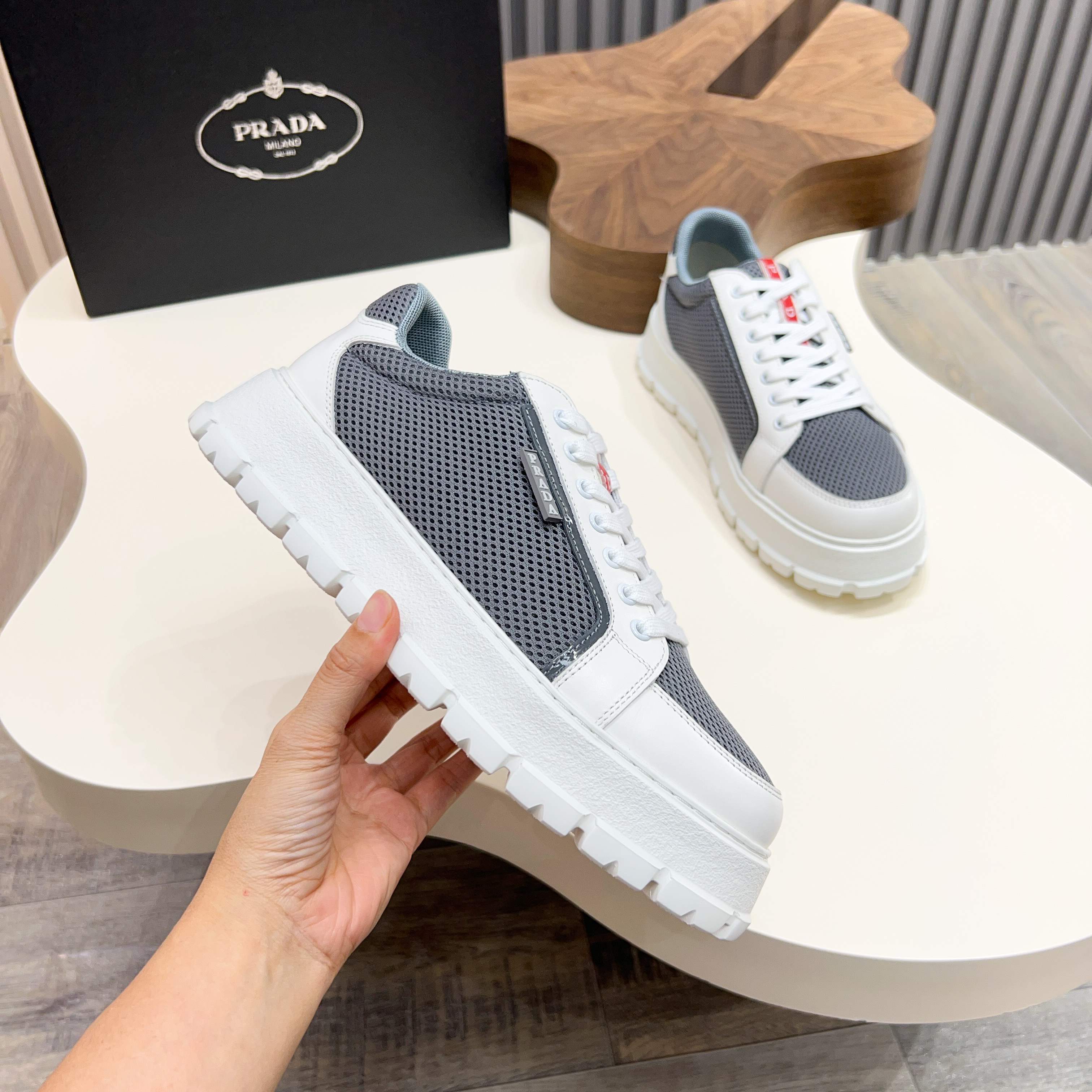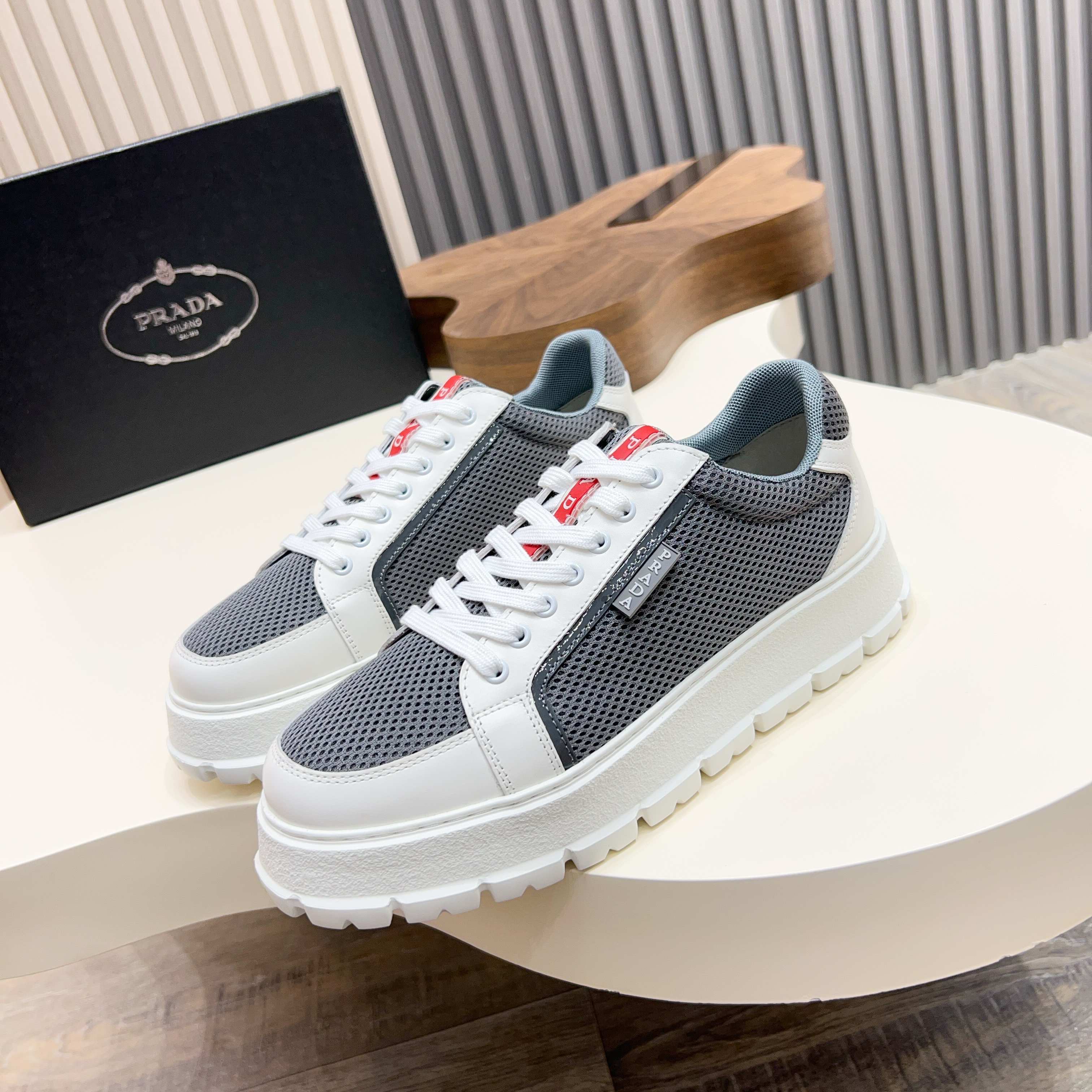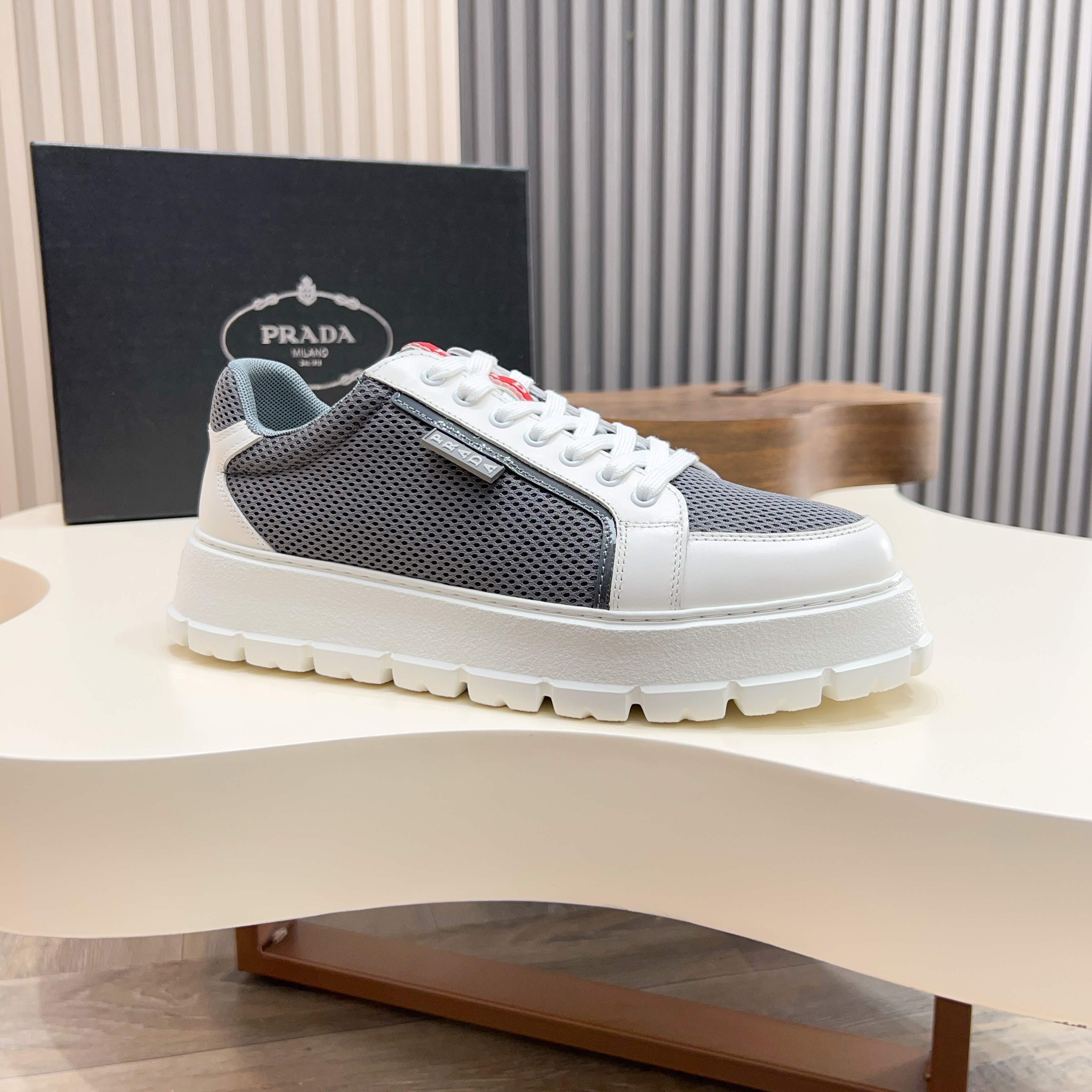 這款鞋子是AAAAA 1:1 質量(非常棒). 使用了和原版一模一樣的材料. 商標部分也保持了和普拉達/Prada一樣. 圖片拍攝是實物鞋子拍攝, 您所收到的實物保證和我們圖片一模一樣.