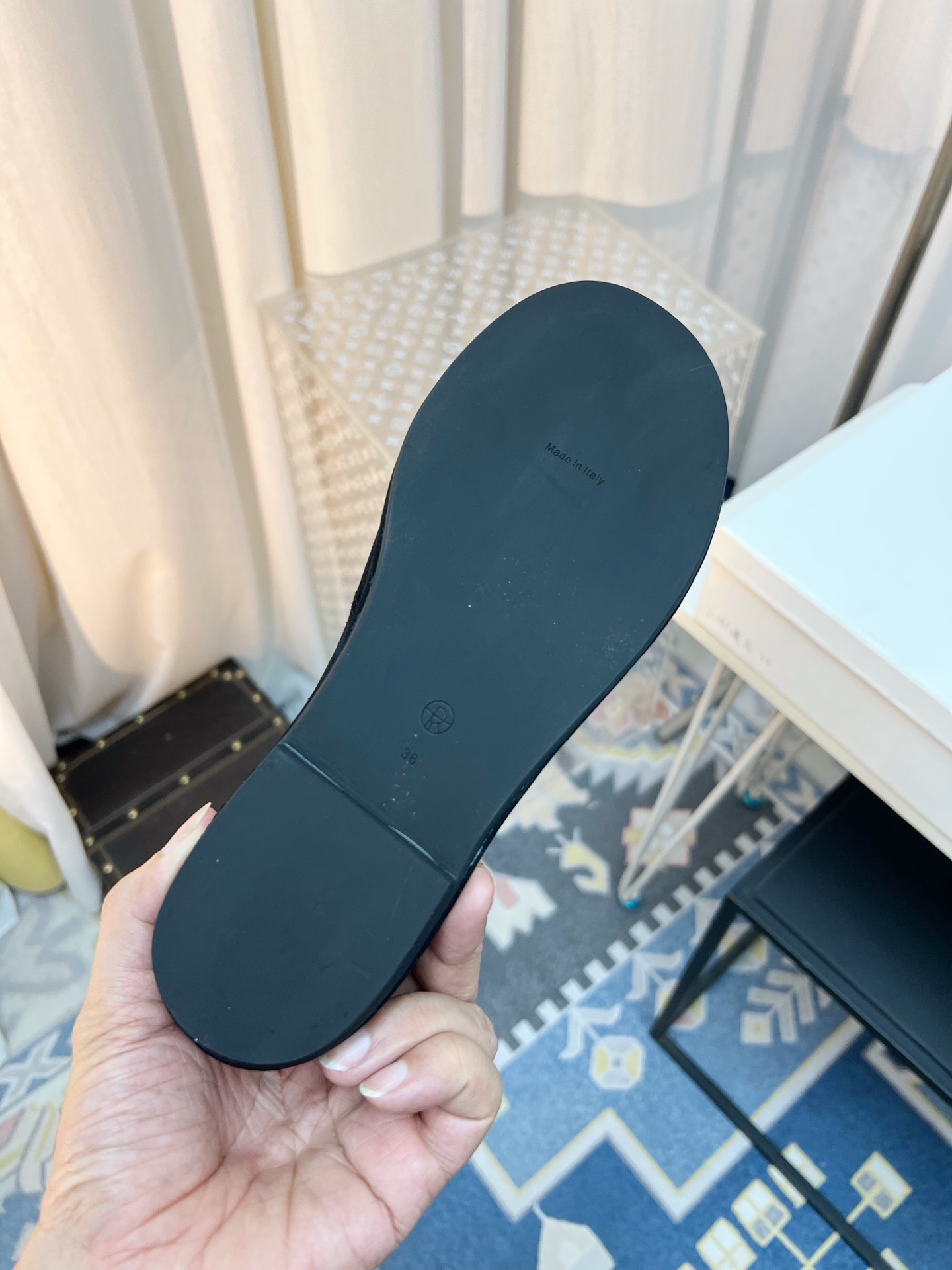 這款鞋子是AAAAA 1:1 質量(非常棒). 使用了和原版一模一樣的材料. 商標部分也保持了和The Row一樣. 圖片拍攝是實物鞋子拍攝, 您所收到的實物保證和我們圖片一模一樣.