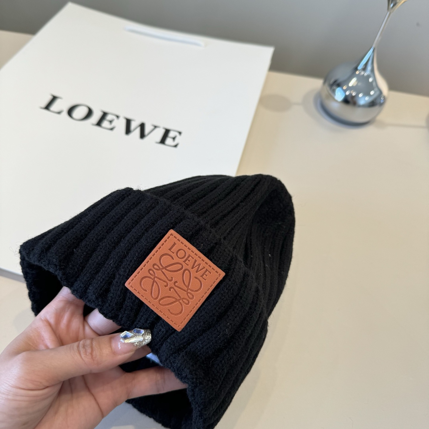 這款帽子是AAAAA 1:1 質量(非常棒). 使用了和原版一模一樣的材料. 商標部分也保持了和Loewe一樣. 圖片拍攝是實物帽子拍攝, 您所收到的實物保證和我們圖片一模一樣.