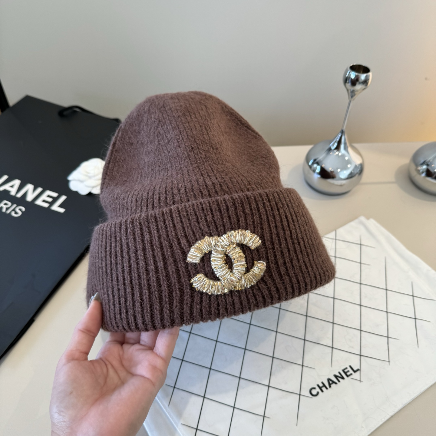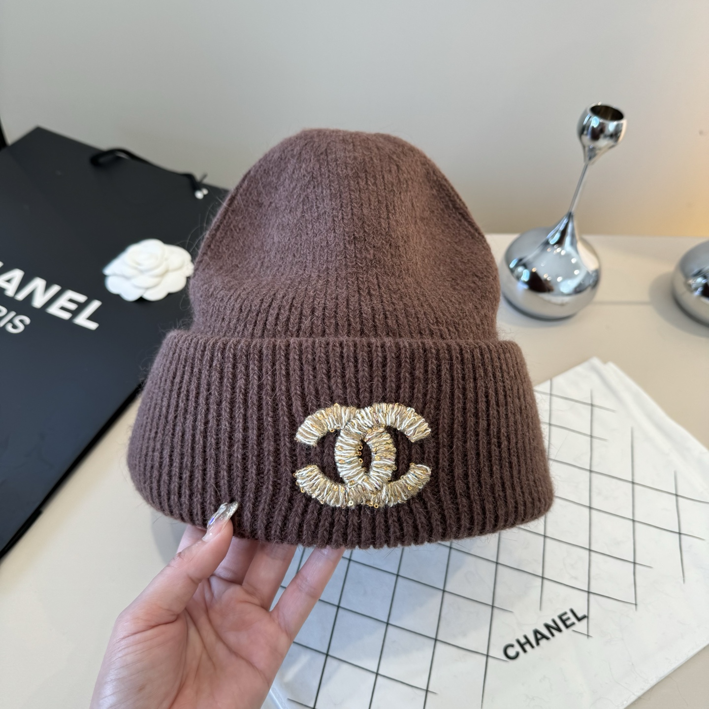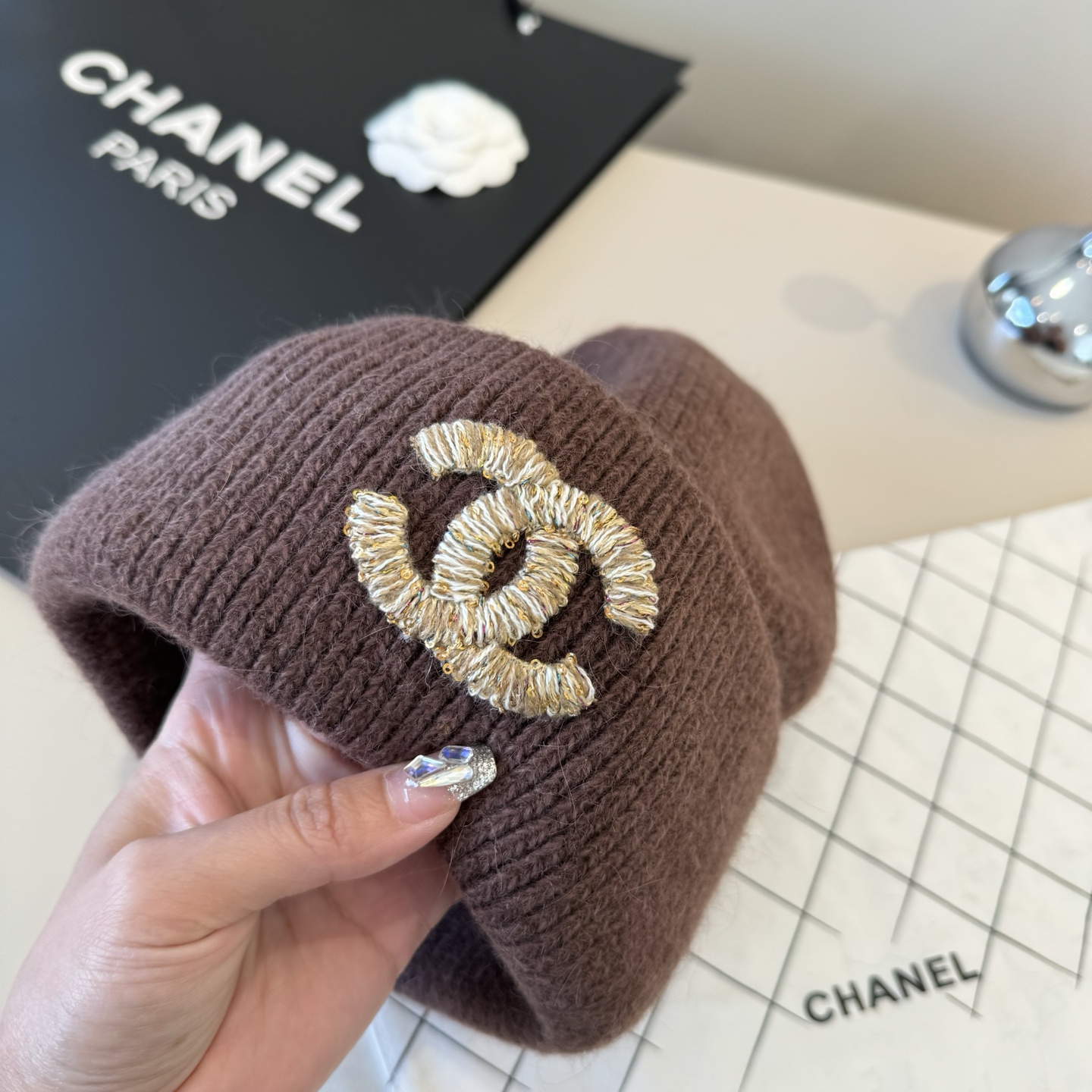 這款帽子是AAAAA 1:1 質量(非常棒). 使用了和原版一模一樣的材料. 商標部分也保持了和香奈兒/Chanel一樣. 圖片拍攝是實物帽子拍攝, 您所收到的實物保證和我們圖片一模一樣.