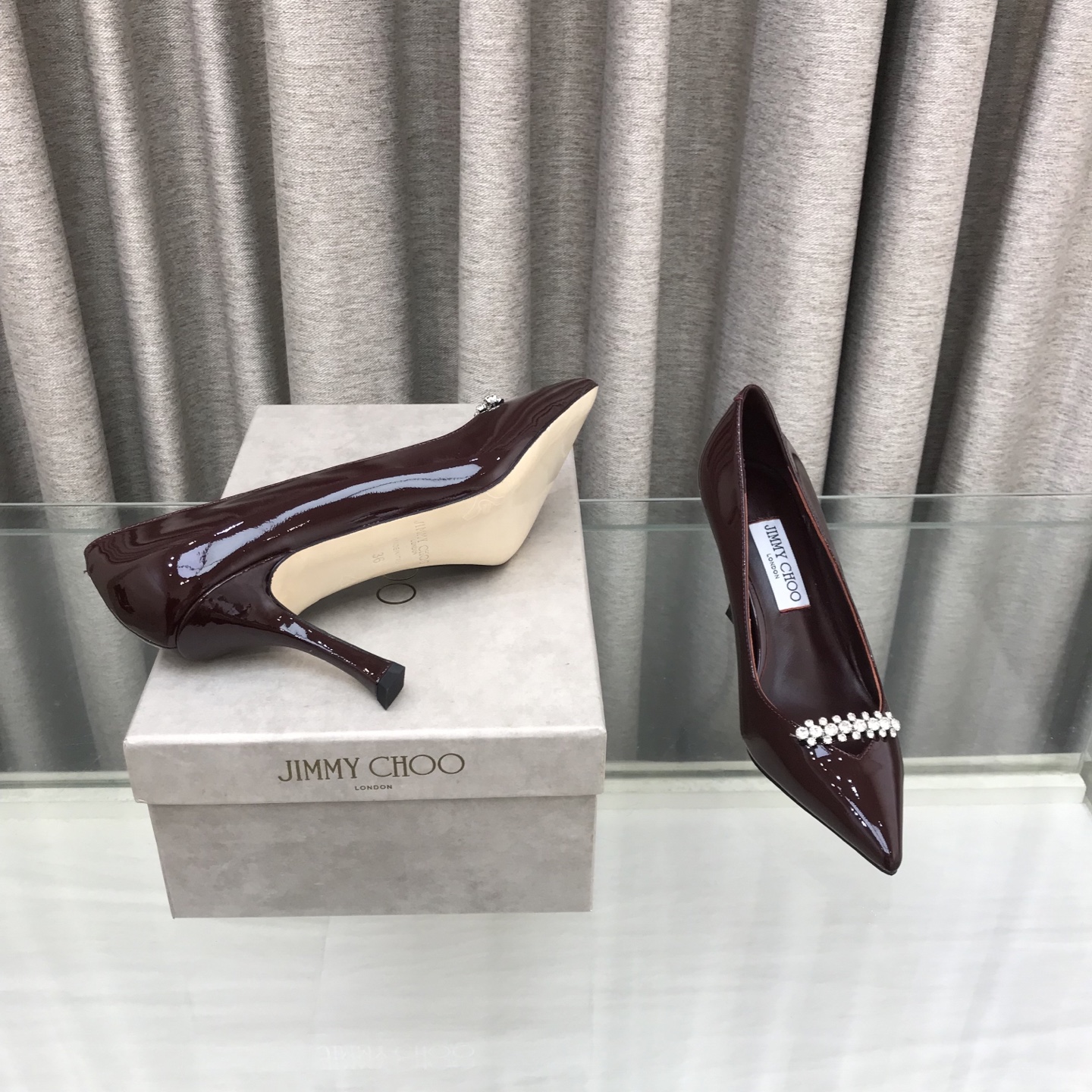 這款鞋子是AAAAA 1:1 質量(非常棒). 使用了和原版一模一樣的材料. 商標部分也保持了和吉米喬/JIMMY CHOO一樣. 圖片拍攝是實物鞋子拍攝, 您所收到的實物保證和我們圖片一模一樣.