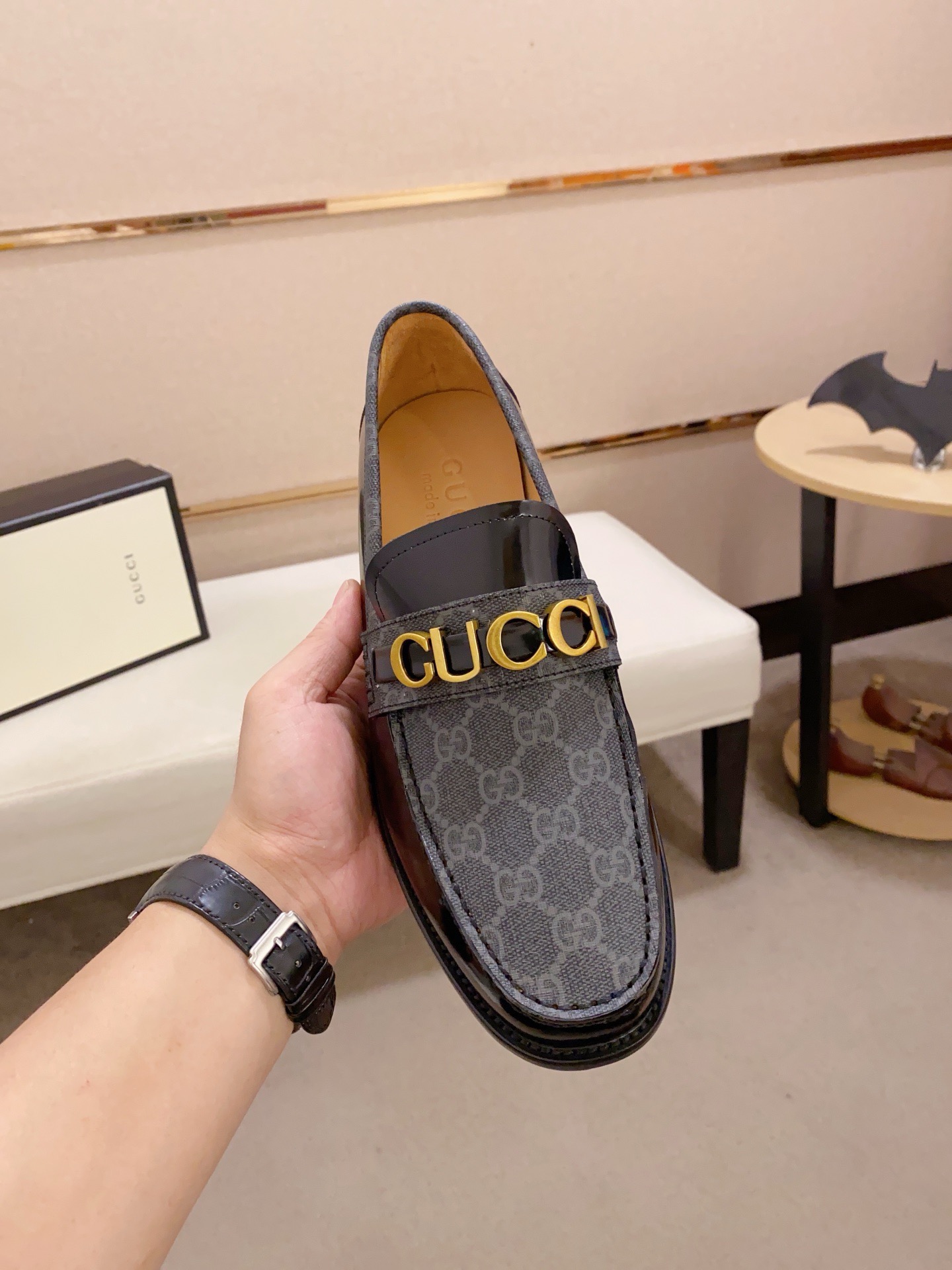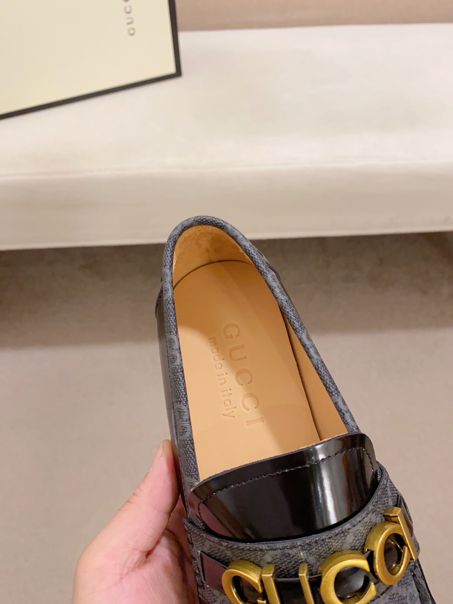 這款鞋子是AAAAA 1:1 質量(非常棒). 使用了和原版一模一樣的材料. 商標部分也保持了和古奇/Gucci一樣. 圖片拍攝是實物鞋子拍攝, 您所收到的實物保證和我們圖片一模一樣.