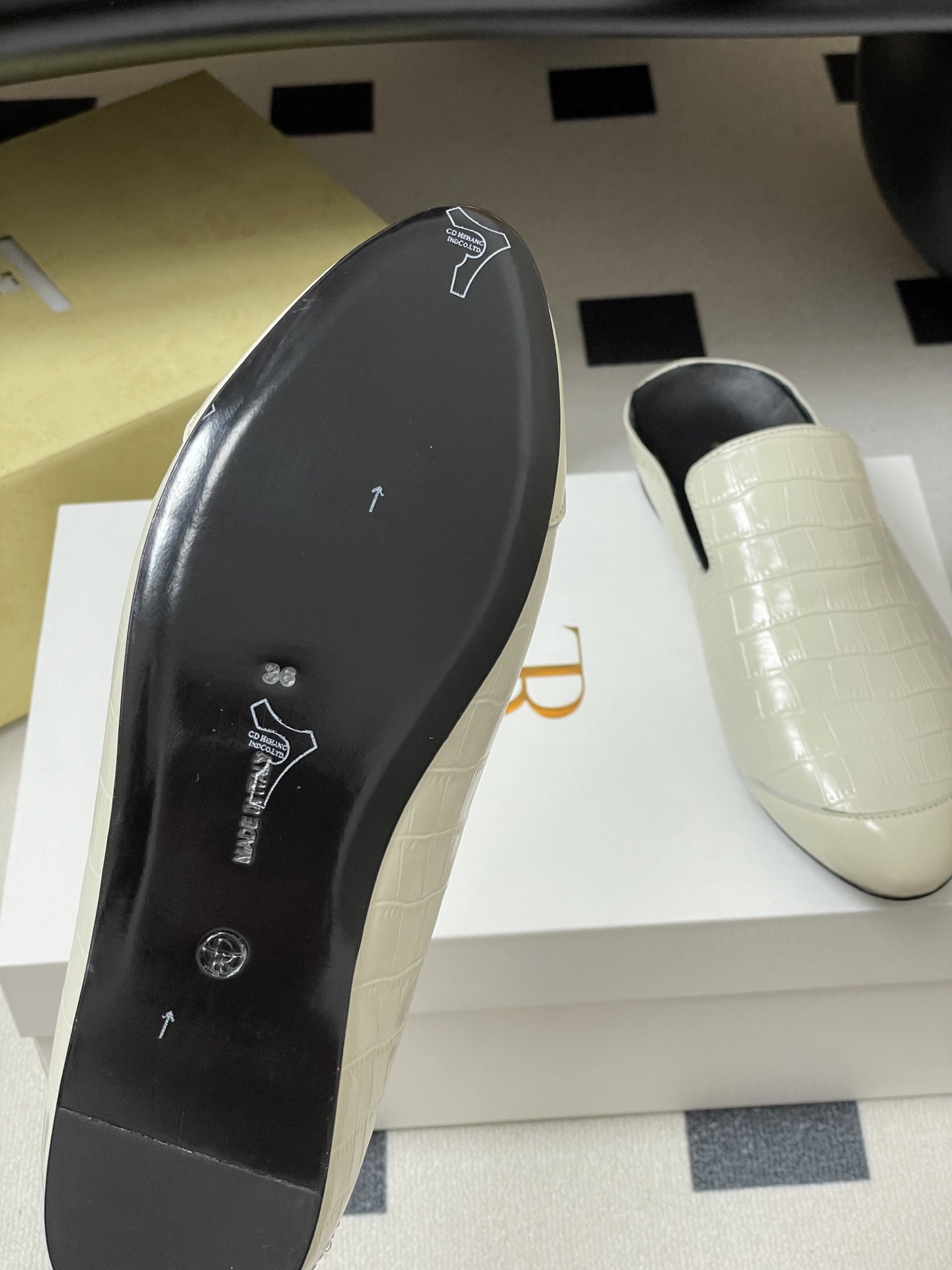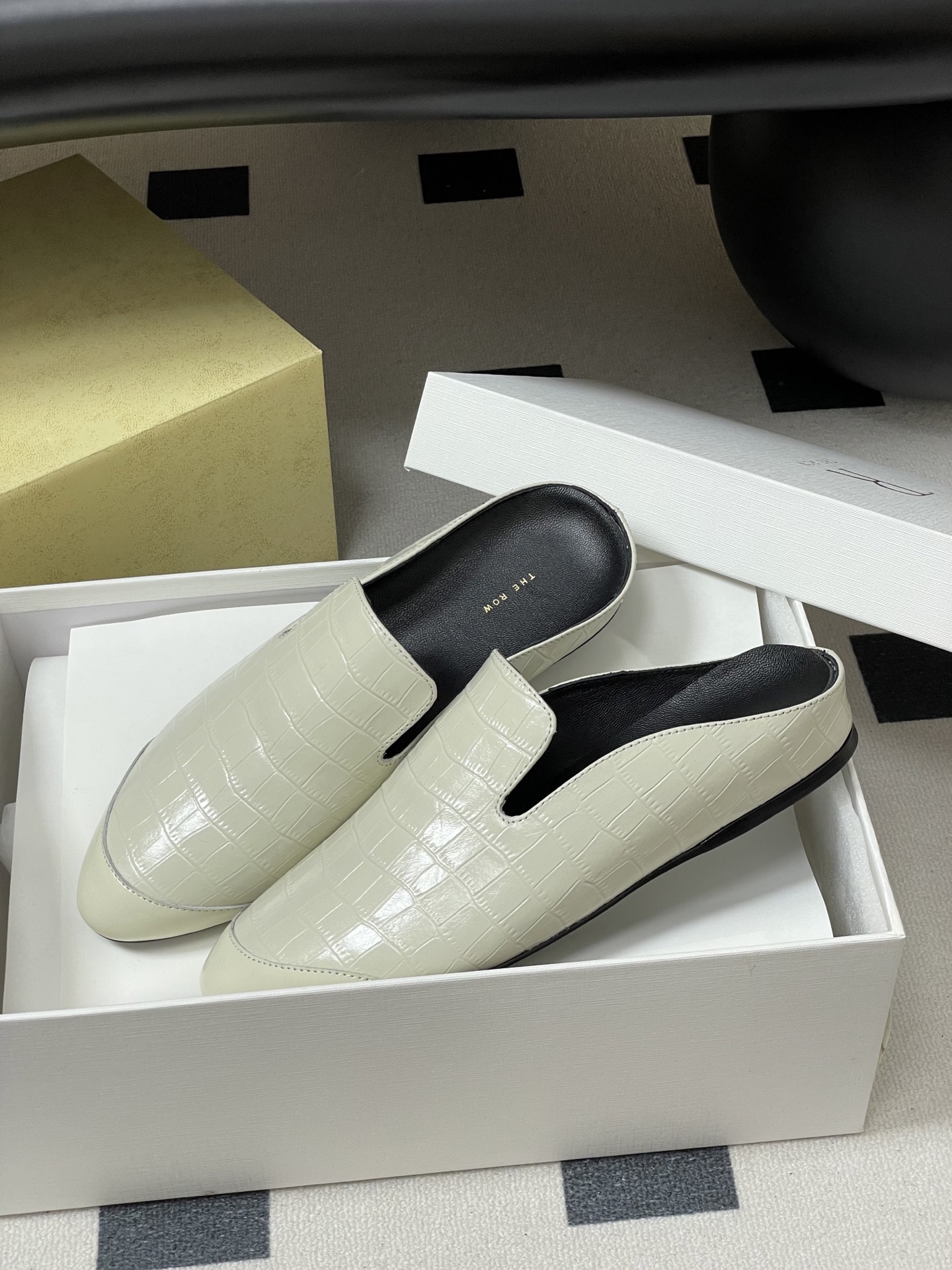 這款鞋子是AAAAA 1:1 質量(非常棒). 使用了和原版一模一樣的材料. 商標部分也保持了和The Row一樣. 圖片拍攝是實物鞋子拍攝, 您所收到的實物保證和我們圖片一模一樣.