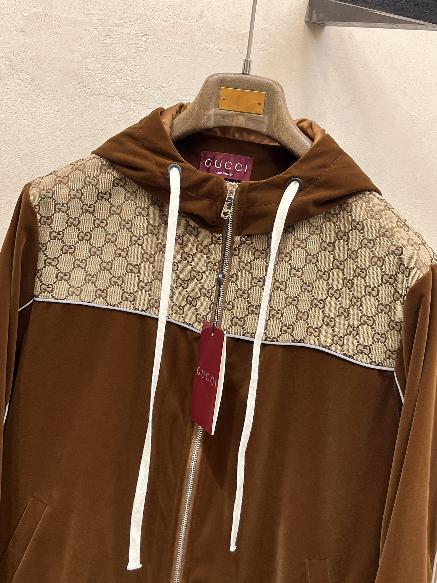 這款衣服是AAAAA 1:1 質量(非常棒). 使用了和原版一模一樣的材料. 商標部分也保持了和古奇/Gucci一樣. 圖片拍攝是實物衣服拍攝, 您所收到的實物保證和我們圖片一模一樣.