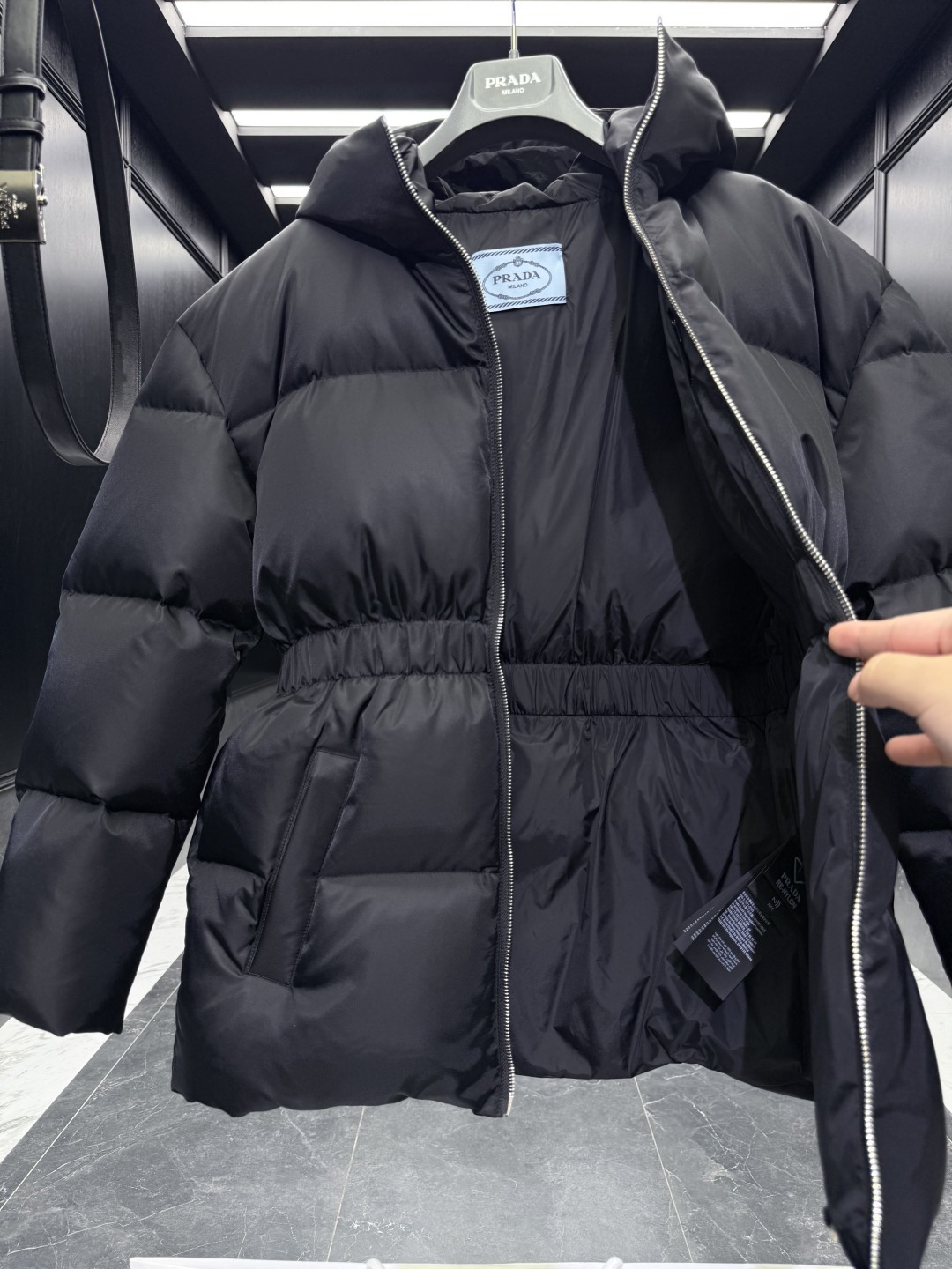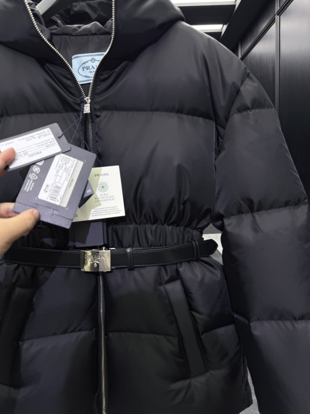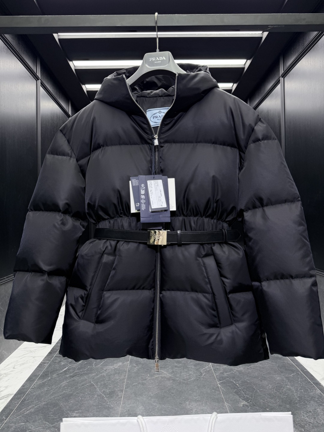 這款衣服是AAAAA 1:1 質量(非常棒). 使用了和原版一模一樣的材料. 商標部分也保持了和普拉達/Prada一樣. 圖片拍攝是實物衣服拍攝, 您所收到的實物保證和我們圖片一模一樣.