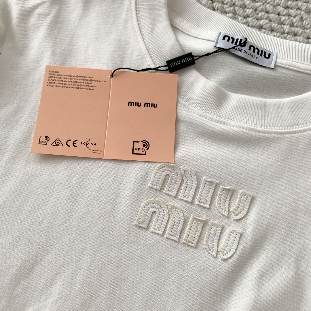 這款衣服是AAAAA 1:1 質量(非常棒). 使用了和原版一模一樣的材料. 商標部分也保持了和繆繆/Miu Miu一樣. 圖片拍攝是實物衣服拍攝, 您所收到的實物保證和我們圖片一模一樣.