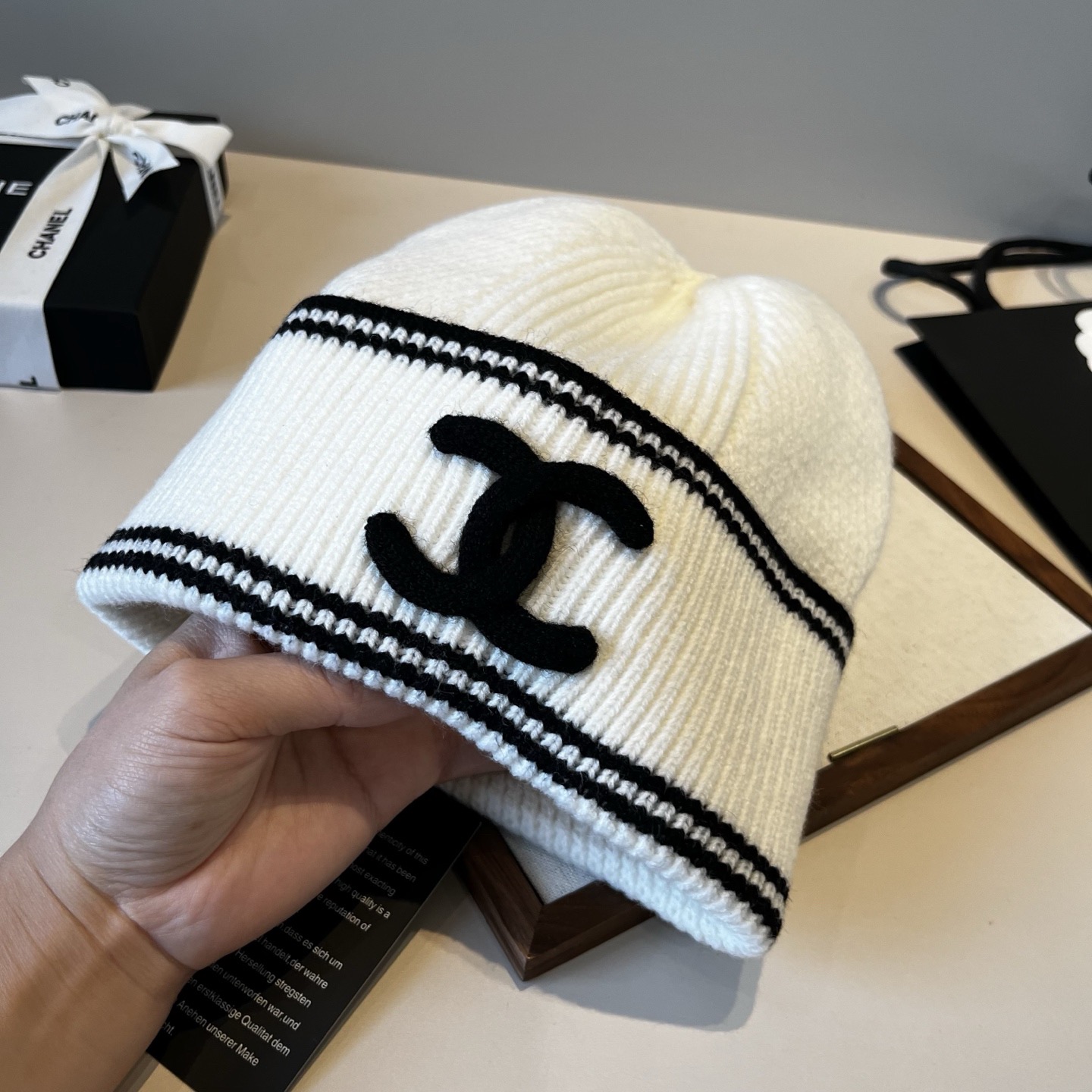 這款帽子是AAAAA 1:1 質量(非常棒). 使用了和原版一模一樣的材料. 商標部分也保持了和香奈兒/Chanel一樣. 圖片拍攝是實物帽子拍攝, 您所收到的實物保證和我們圖片一模一樣.