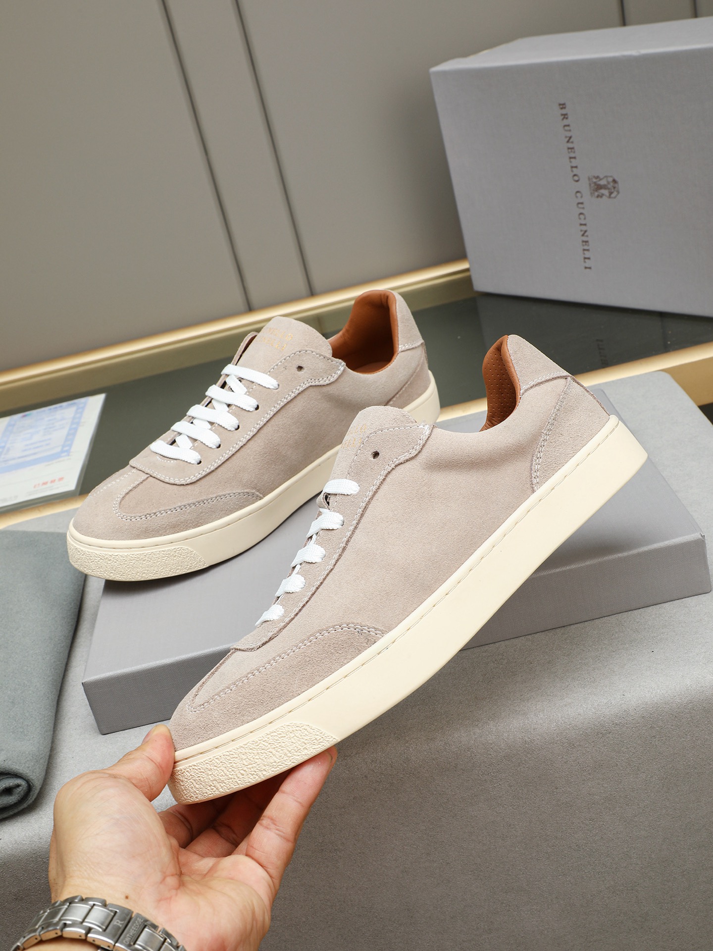 這款鞋子是AAAAA 1:1 質量(非常棒). 使用了和原版一模一樣的材料. 商標部分也保持了和Brunello Cucinelli一樣. 圖片拍攝是實物鞋子拍攝, 您所收到的實物保證和我們圖片一模一樣.
