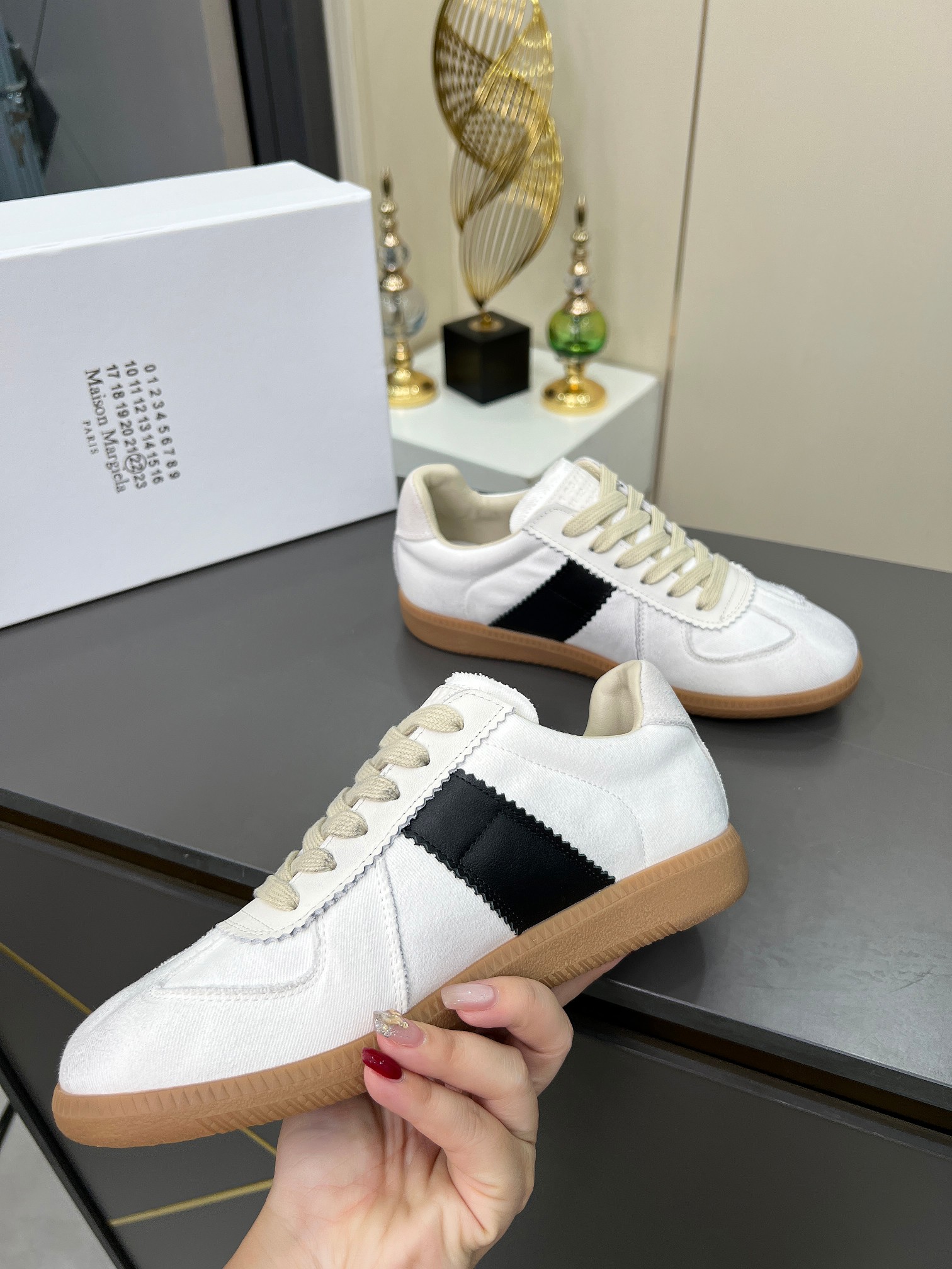 這款鞋子是AAAAA 1:1 質量(非常棒). 使用了和原版一模一樣的材料. 商標部分也保持了和一樣. 圖片拍攝是實物鞋子拍攝, 您所收到的實物保證和我們圖片一模一樣.