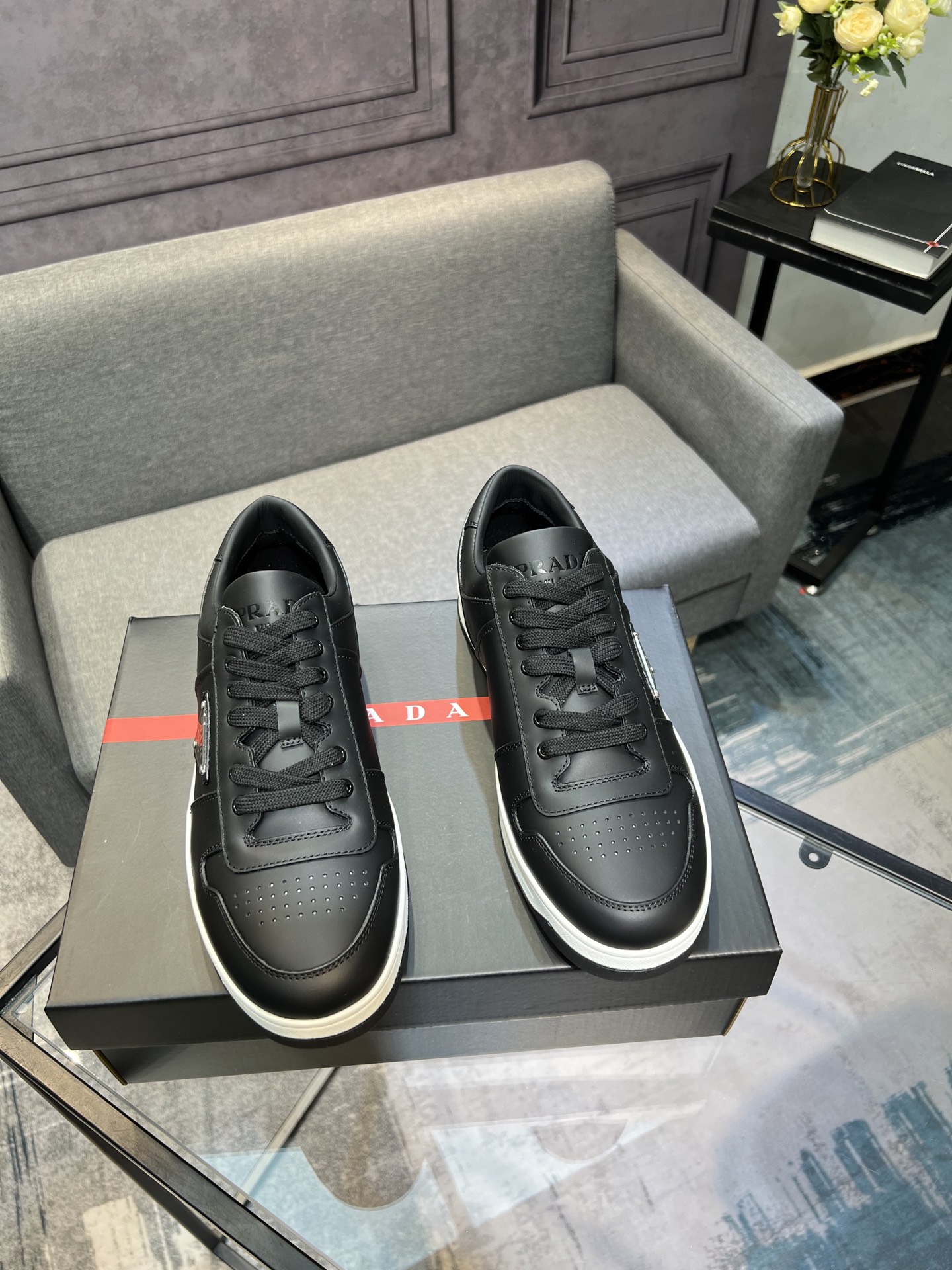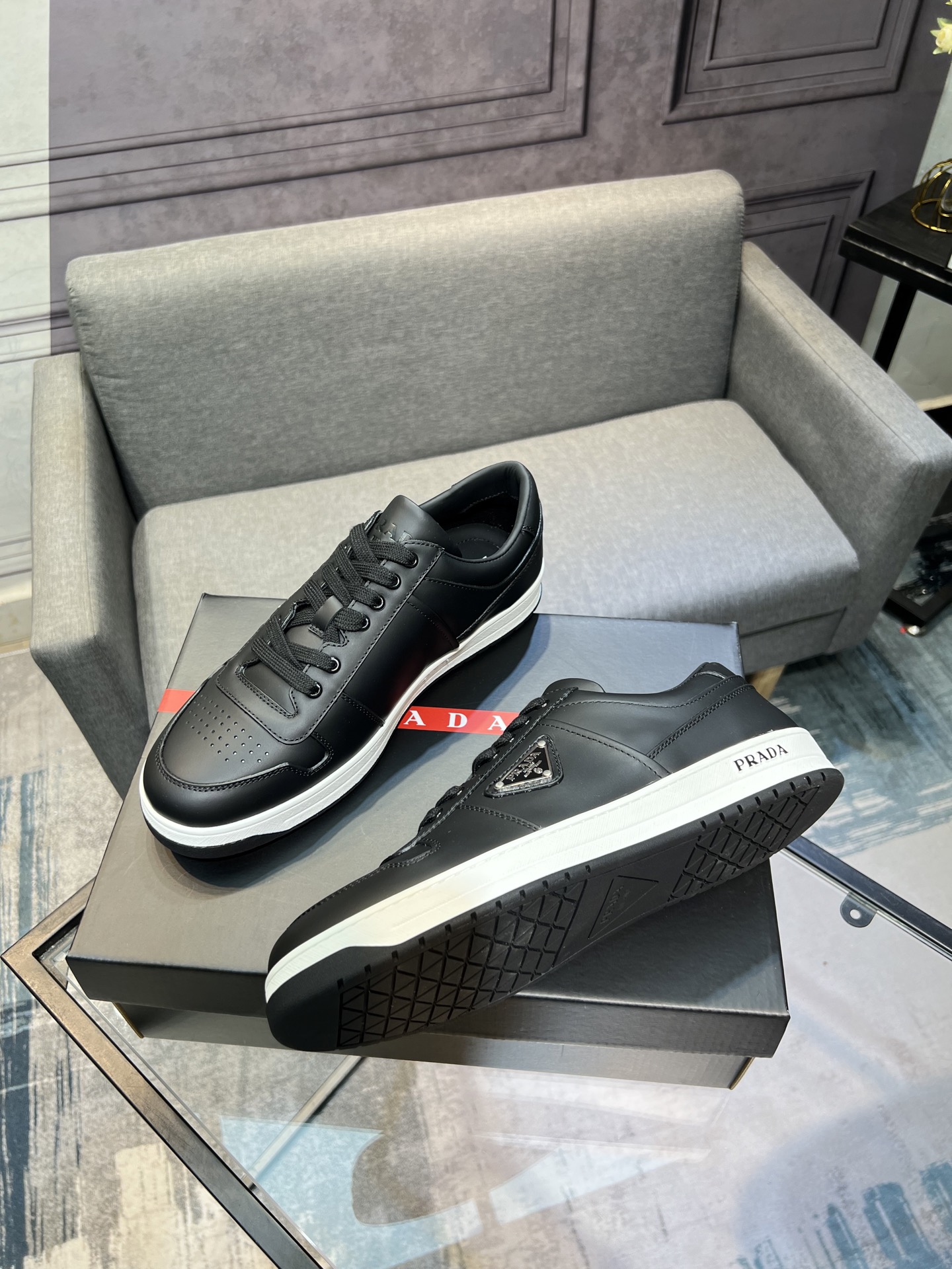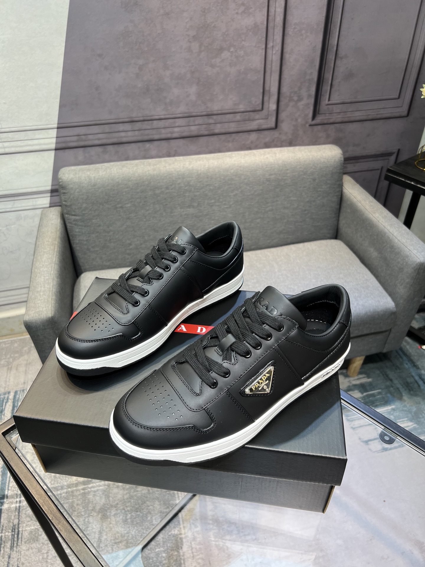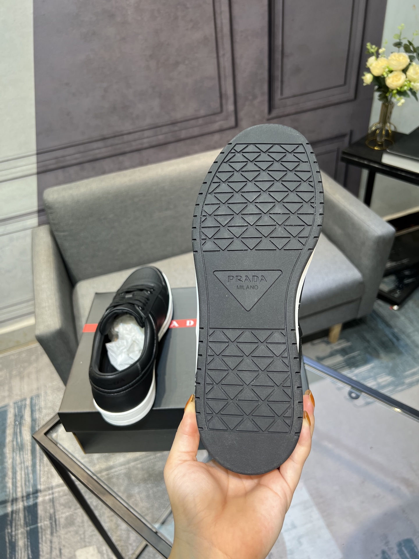 這款鞋子是AAAAA 1:1 質量(非常棒). 使用了和原版一模一樣的材料. 商標部分也保持了和普拉達/Prada一樣. 圖片拍攝是實物鞋子拍攝, 您所收到的實物保證和我們圖片一模一樣.
