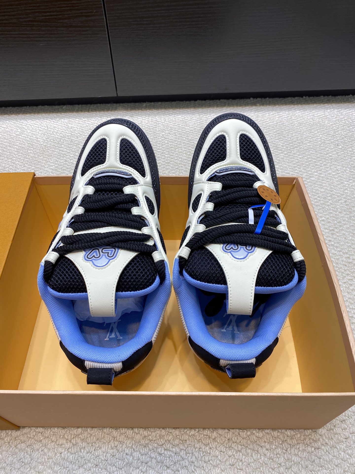這款鞋子是AAAAA 1:1 質量(非常棒). 使用了和原版一模一樣的材料. 商標部分也保持了和路易威登/Louis Vuitton一樣. 圖片拍攝是實物鞋子拍攝, 您所收到的實物保證和我們圖片一模一樣.