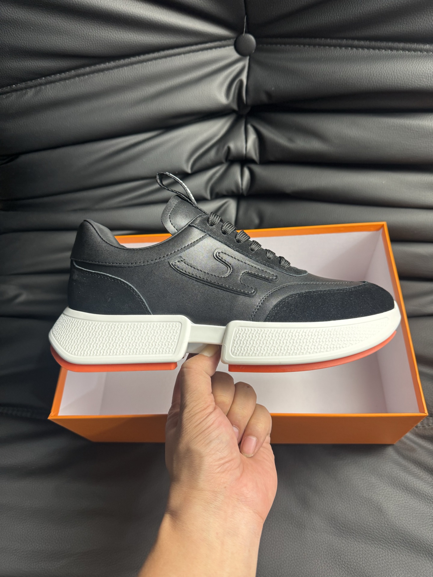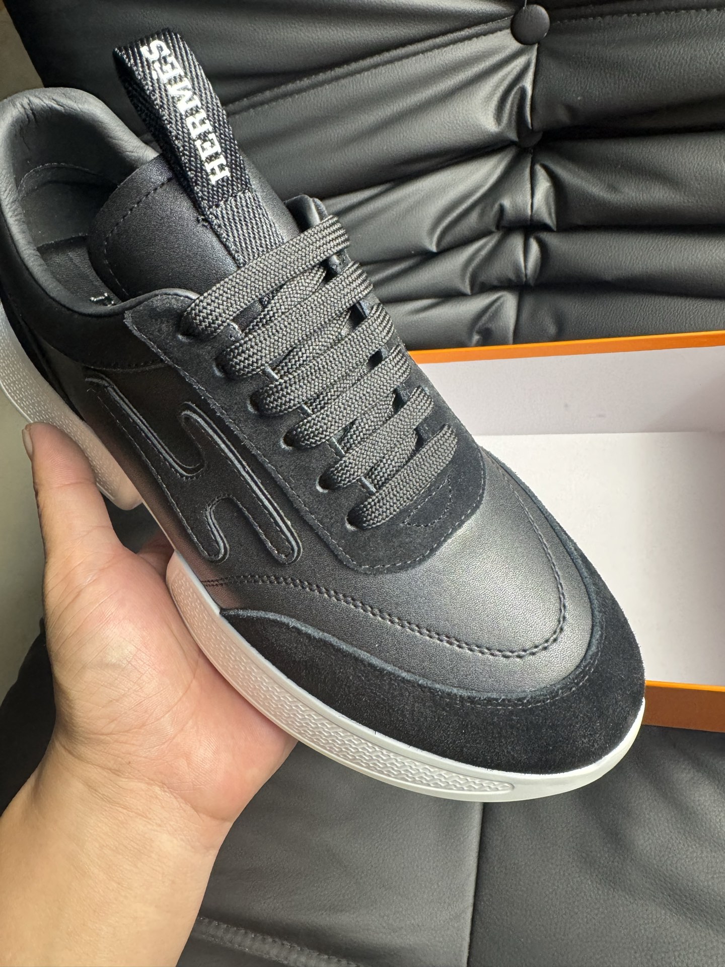 這款鞋子是AAAAA 1:1 質量(非常棒). 使用了和原版一模一樣的材料. 商標部分也保持了和愛馬仕/Hermes一樣. 圖片拍攝是實物鞋子拍攝, 您所收到的實物保證和我們圖片一模一樣.