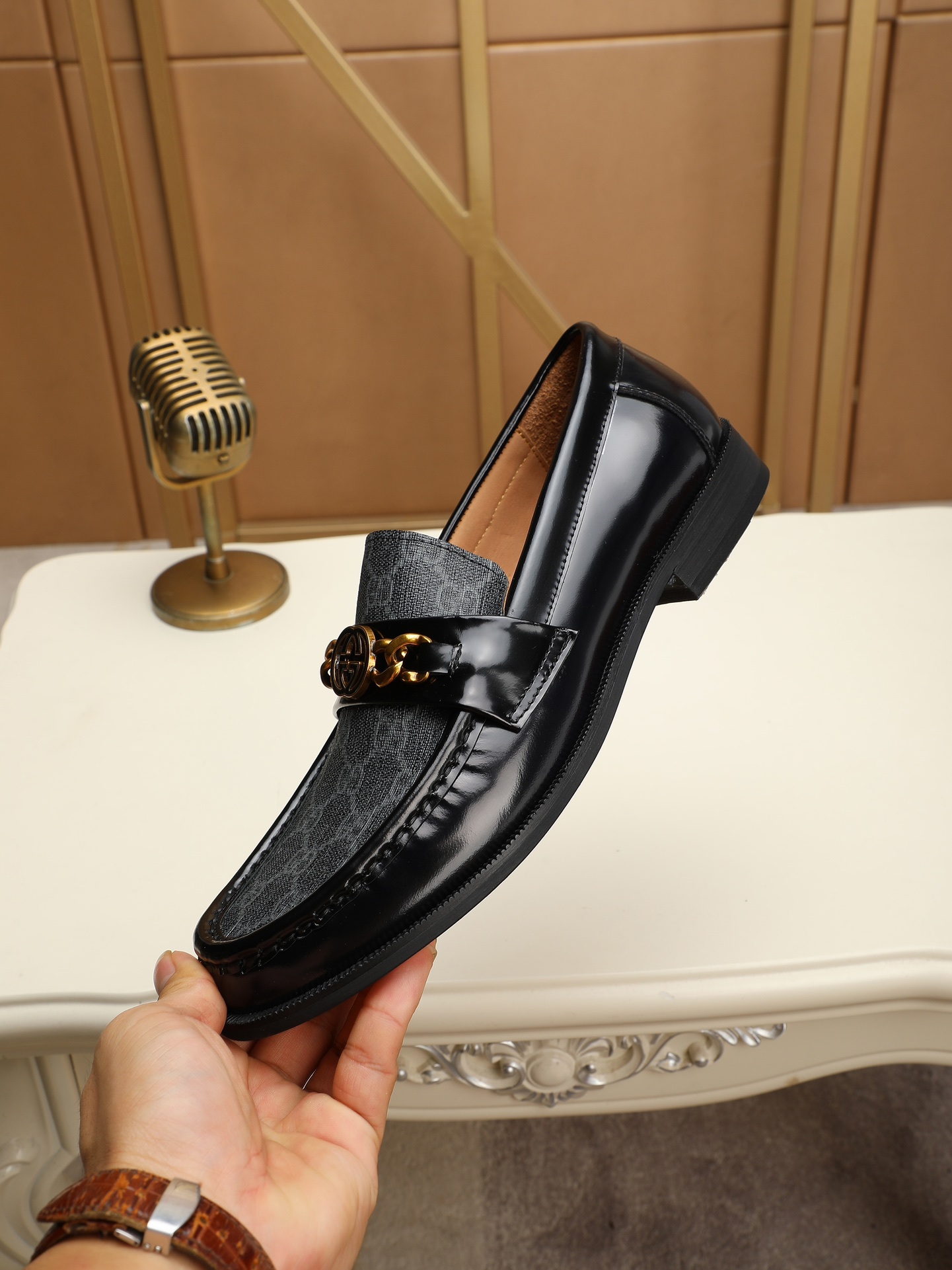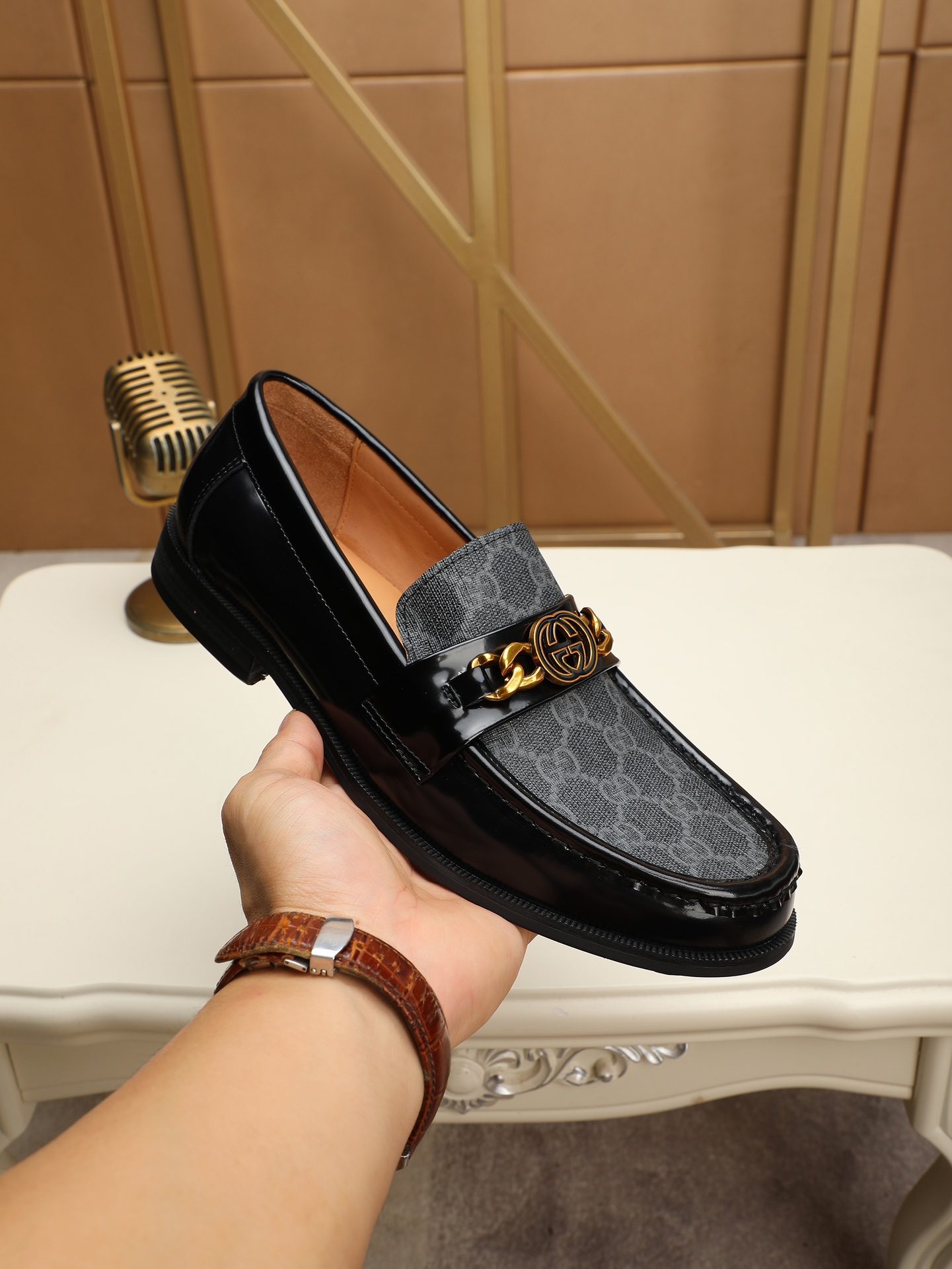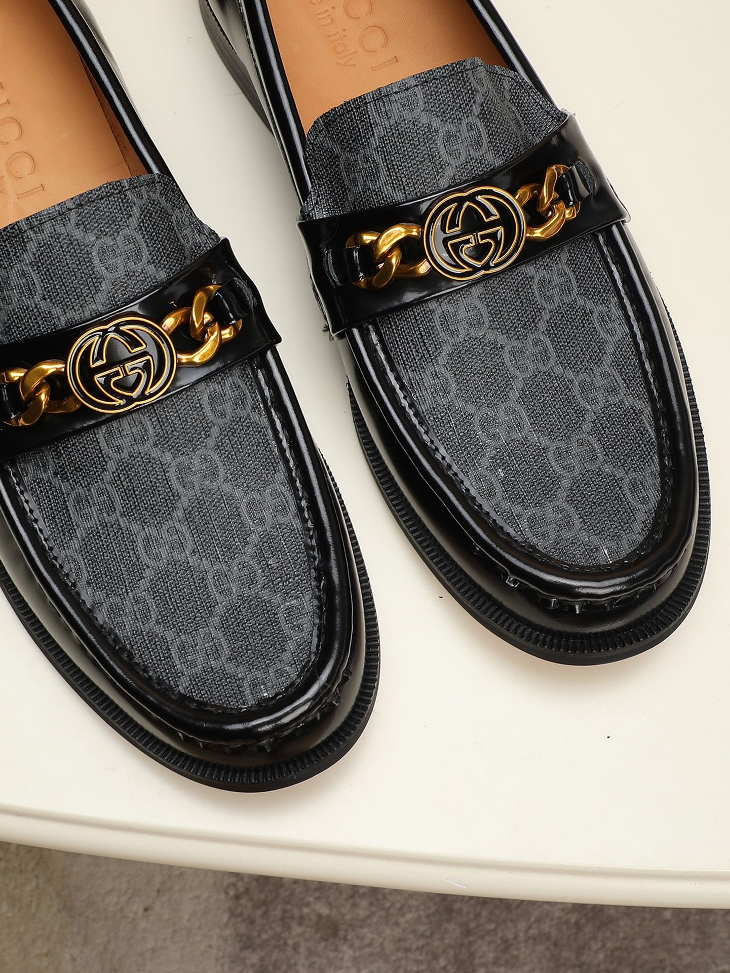 這款鞋子是AAAAA 1:1 質量(非常棒). 使用了和原版一模一樣的材料. 商標部分也保持了和古奇/Gucci一樣. 圖片拍攝是實物鞋子拍攝, 您所收到的實物保證和我們圖片一模一樣.