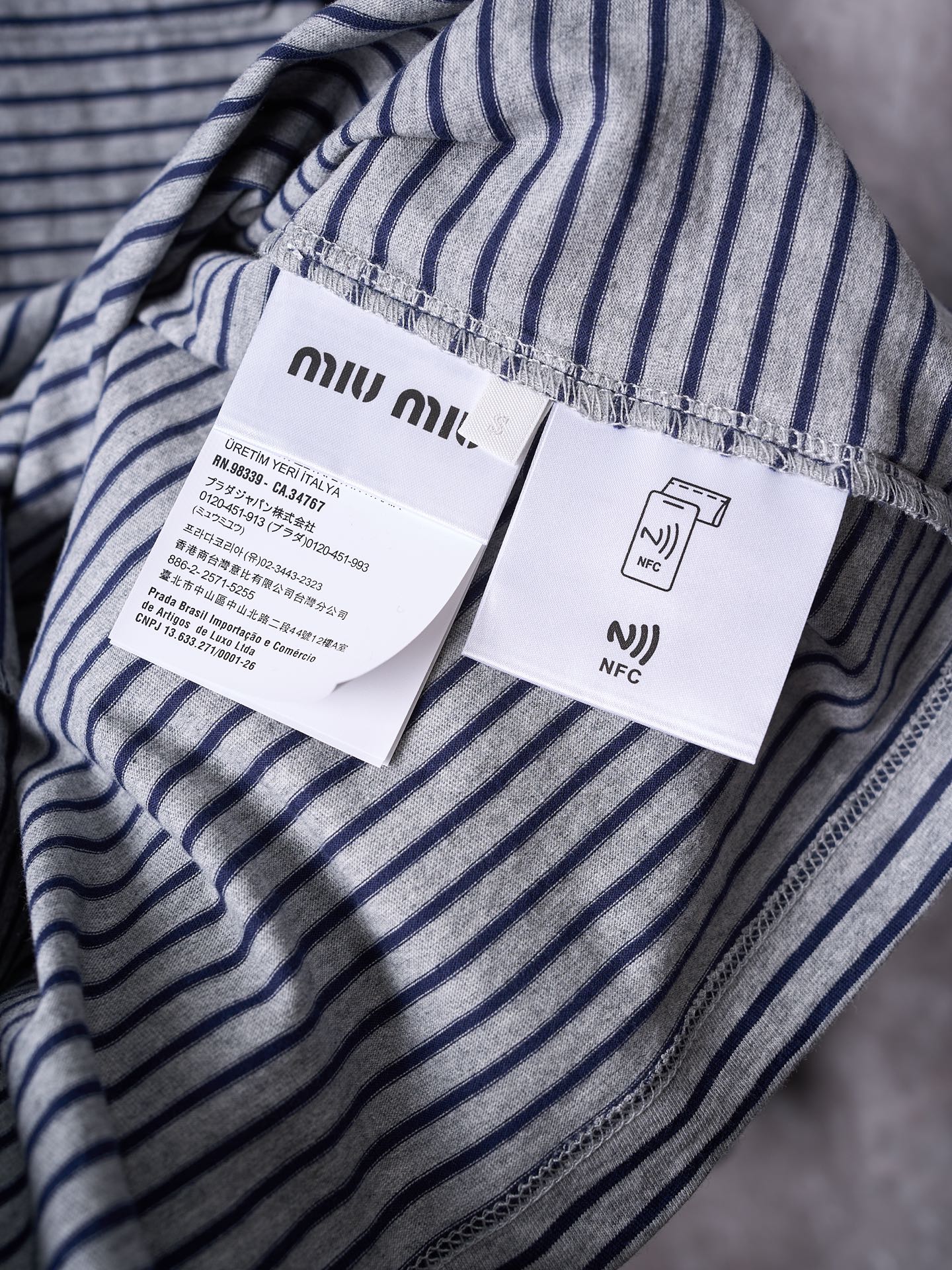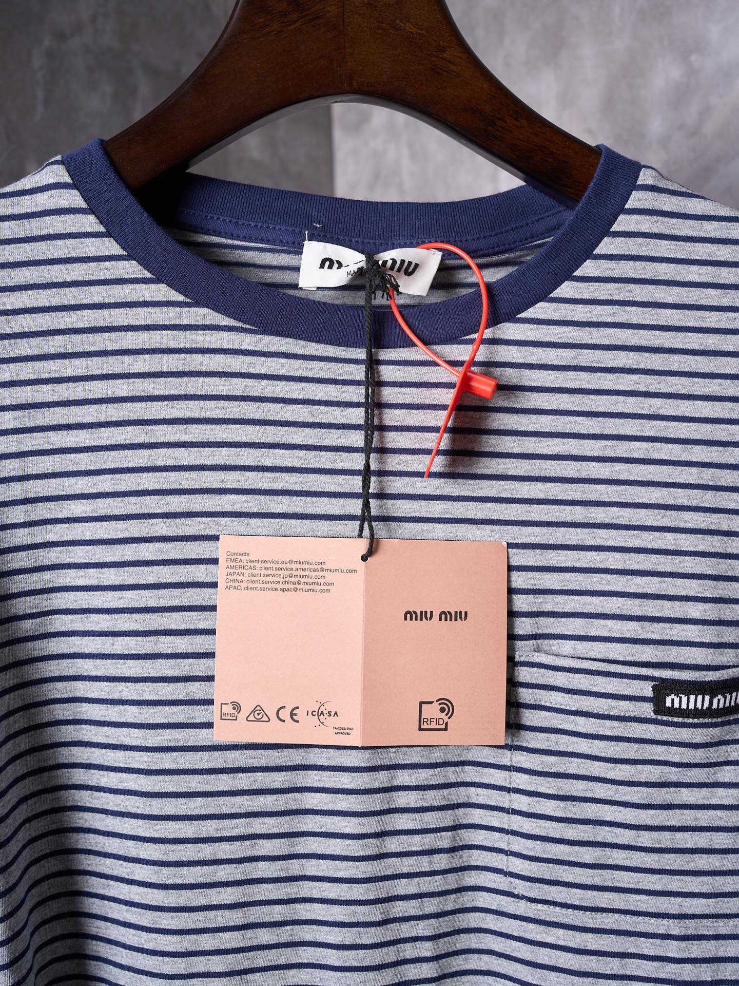 這款衣服是AAAAA 1:1 質量(非常棒). 使用了和原版一模一樣的材料. 商標部分也保持了和繆繆/Miu Miu一樣. 圖片拍攝是實物衣服拍攝, 您所收到的實物保證和我們圖片一模一樣.
