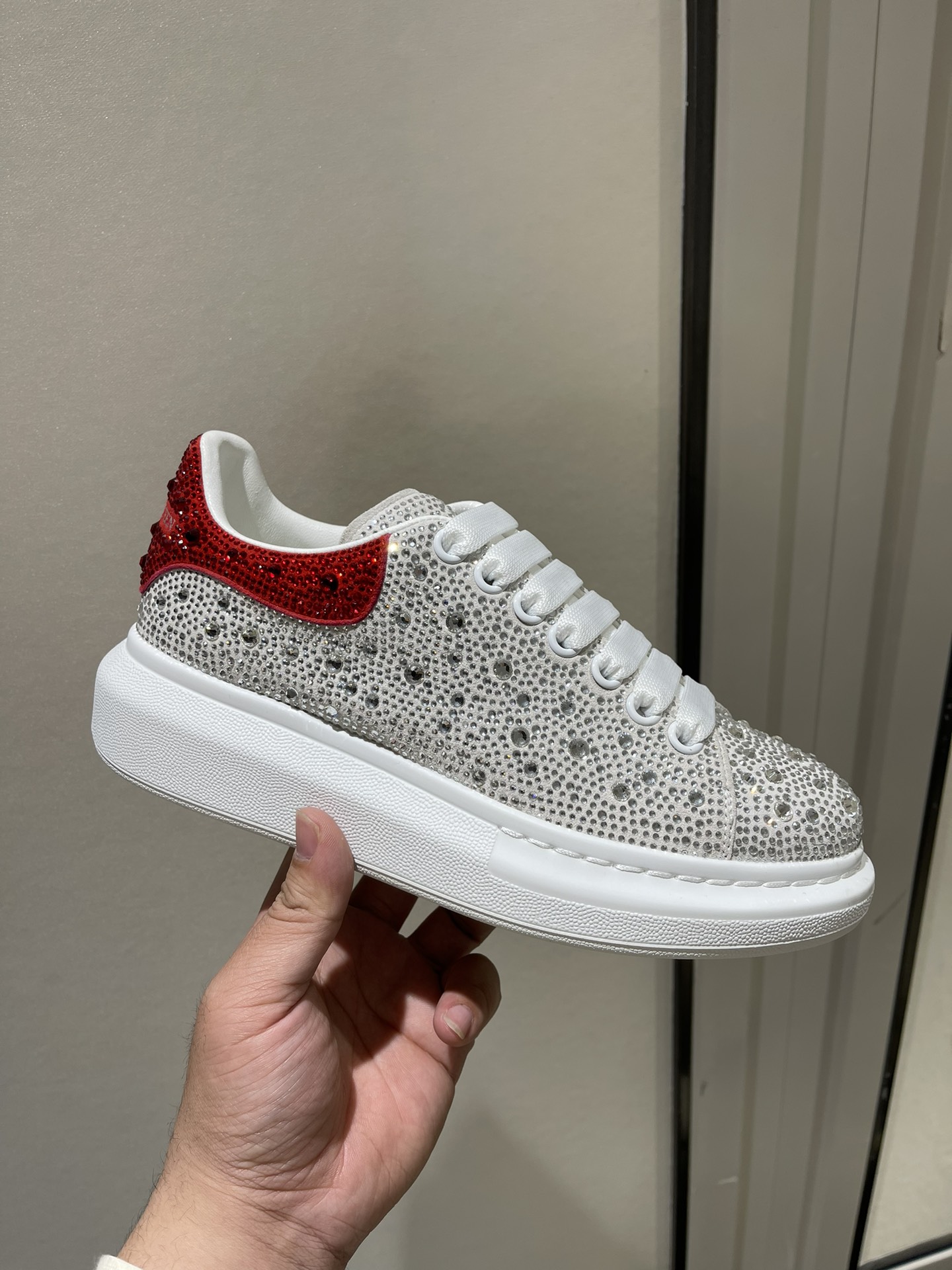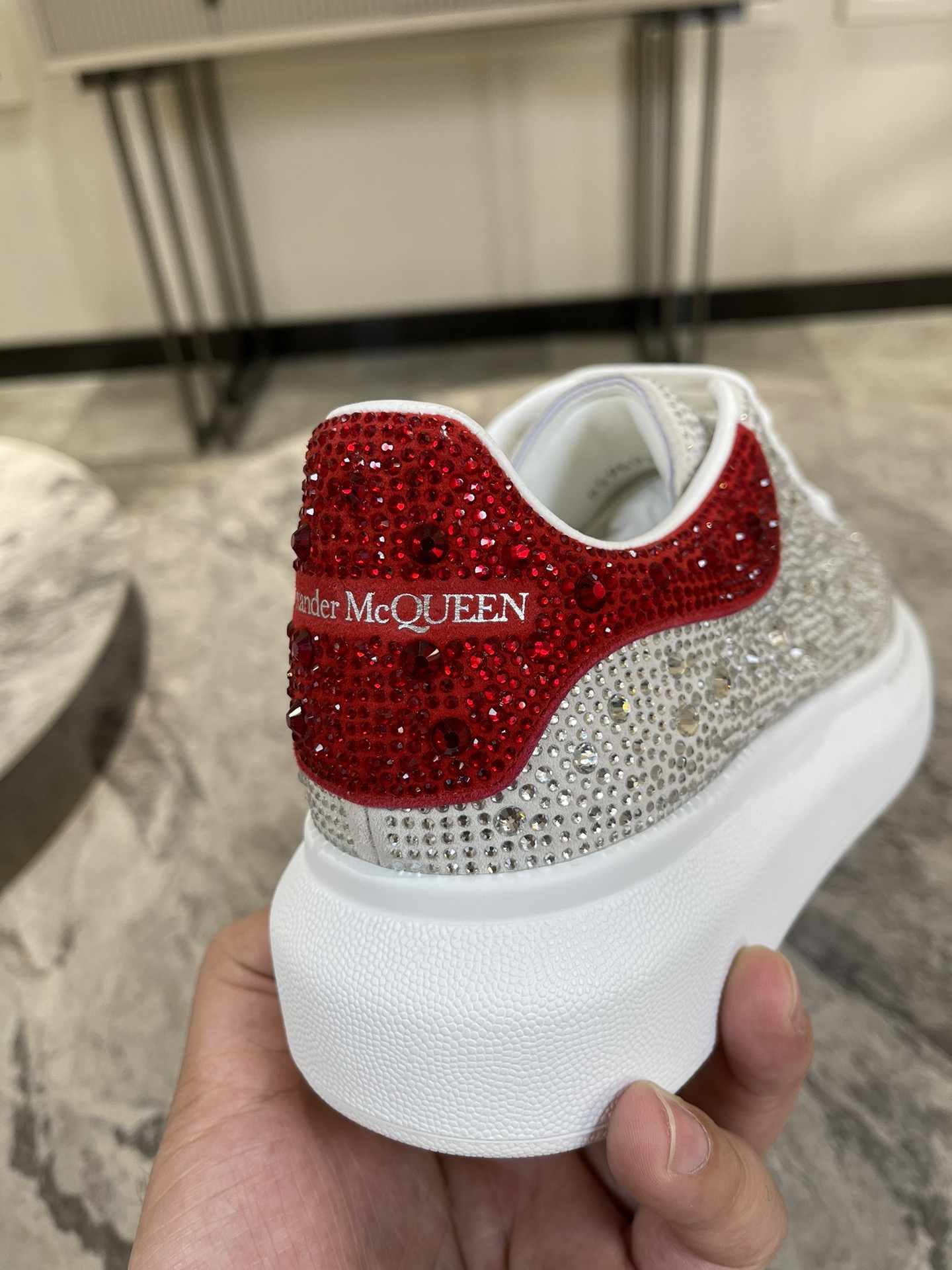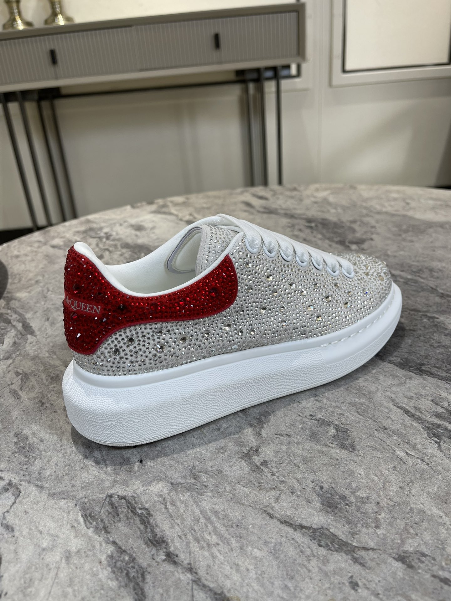 這款鞋子是AAAAA 1:1 質量(非常棒). 使用了和原版一模一樣的材料. 商標部分也保持了和麥奎恩/McQueen一樣. 圖片拍攝是實物鞋子拍攝, 您所收到的實物保證和我們圖片一模一樣.