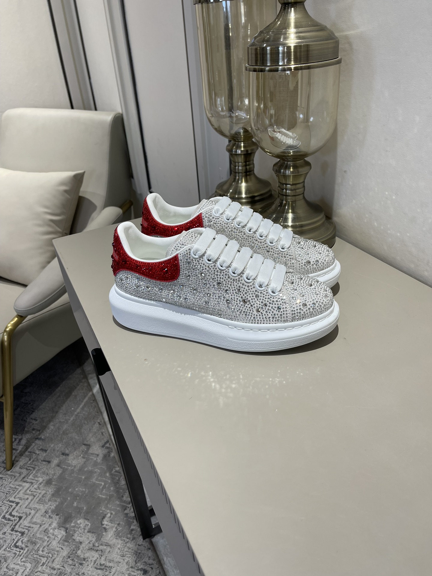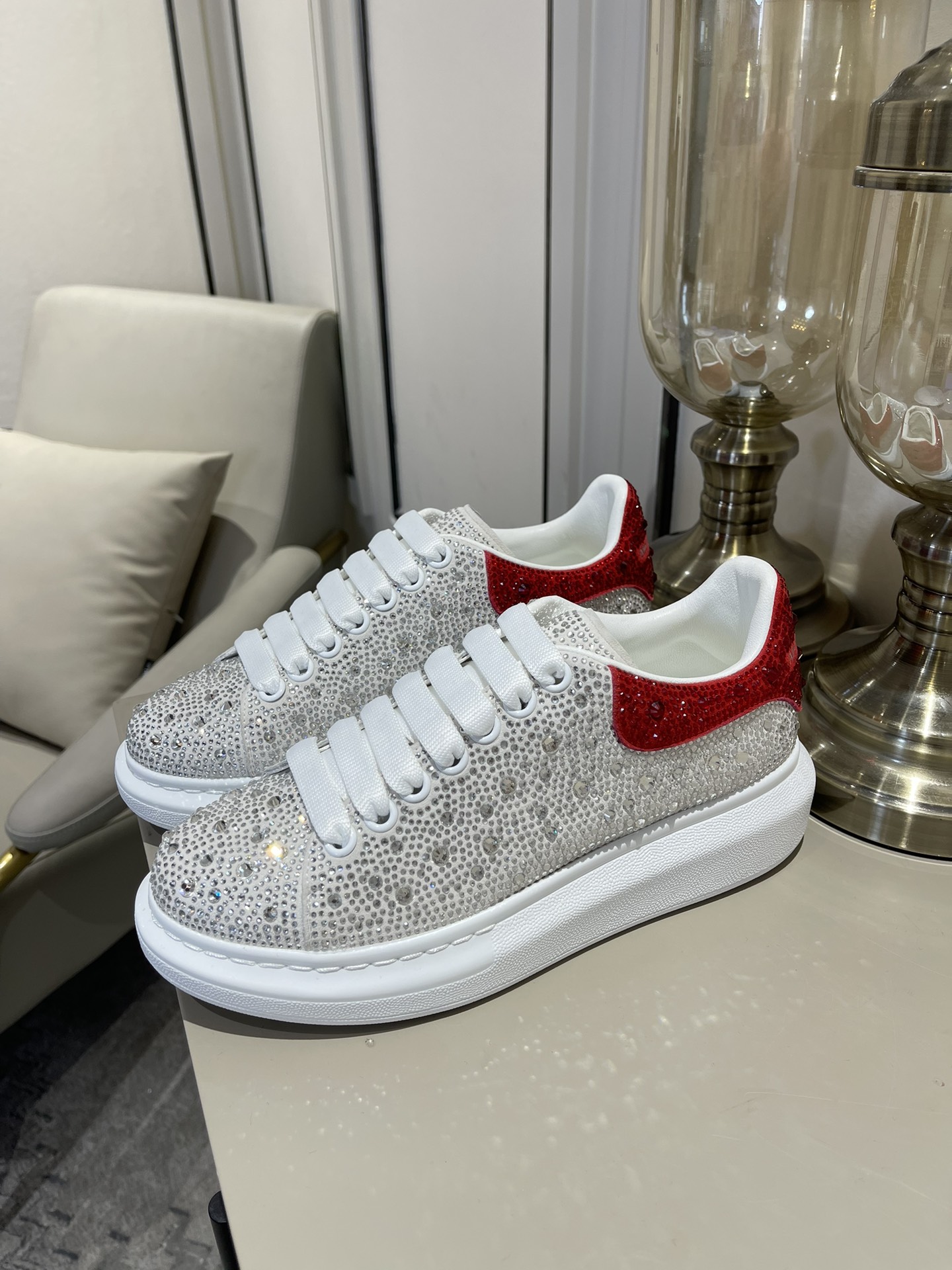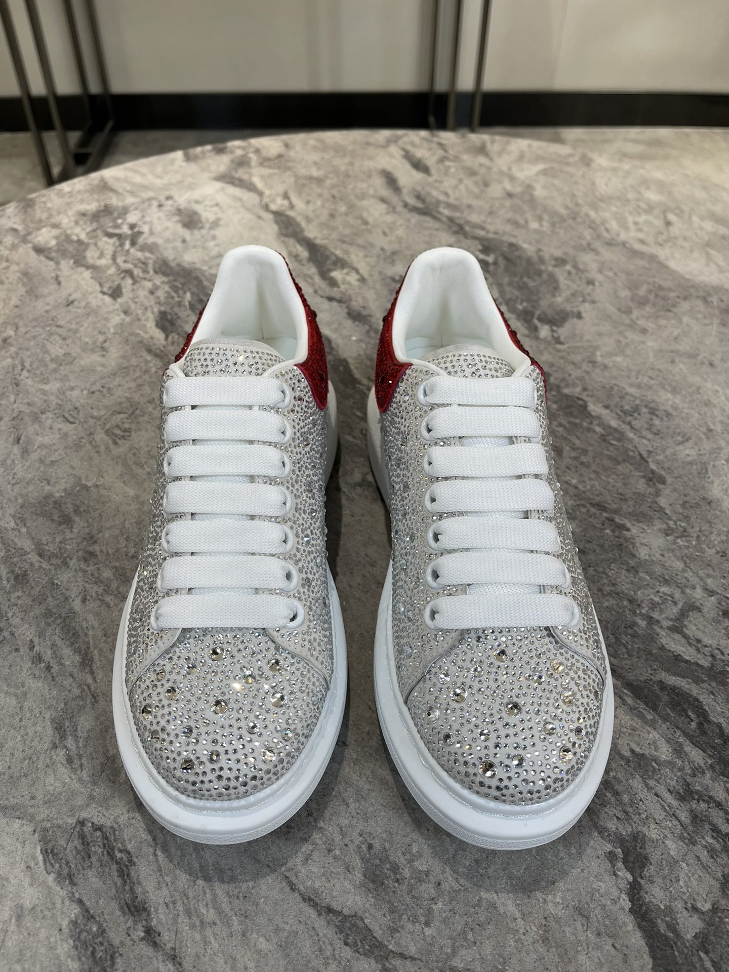這款鞋子是AAAAA 1:1 質量(非常棒). 使用了和原版一模一樣的材料. 商標部分也保持了和麥奎恩/McQueen一樣. 圖片拍攝是實物鞋子拍攝, 您所收到的實物保證和我們圖片一模一樣.