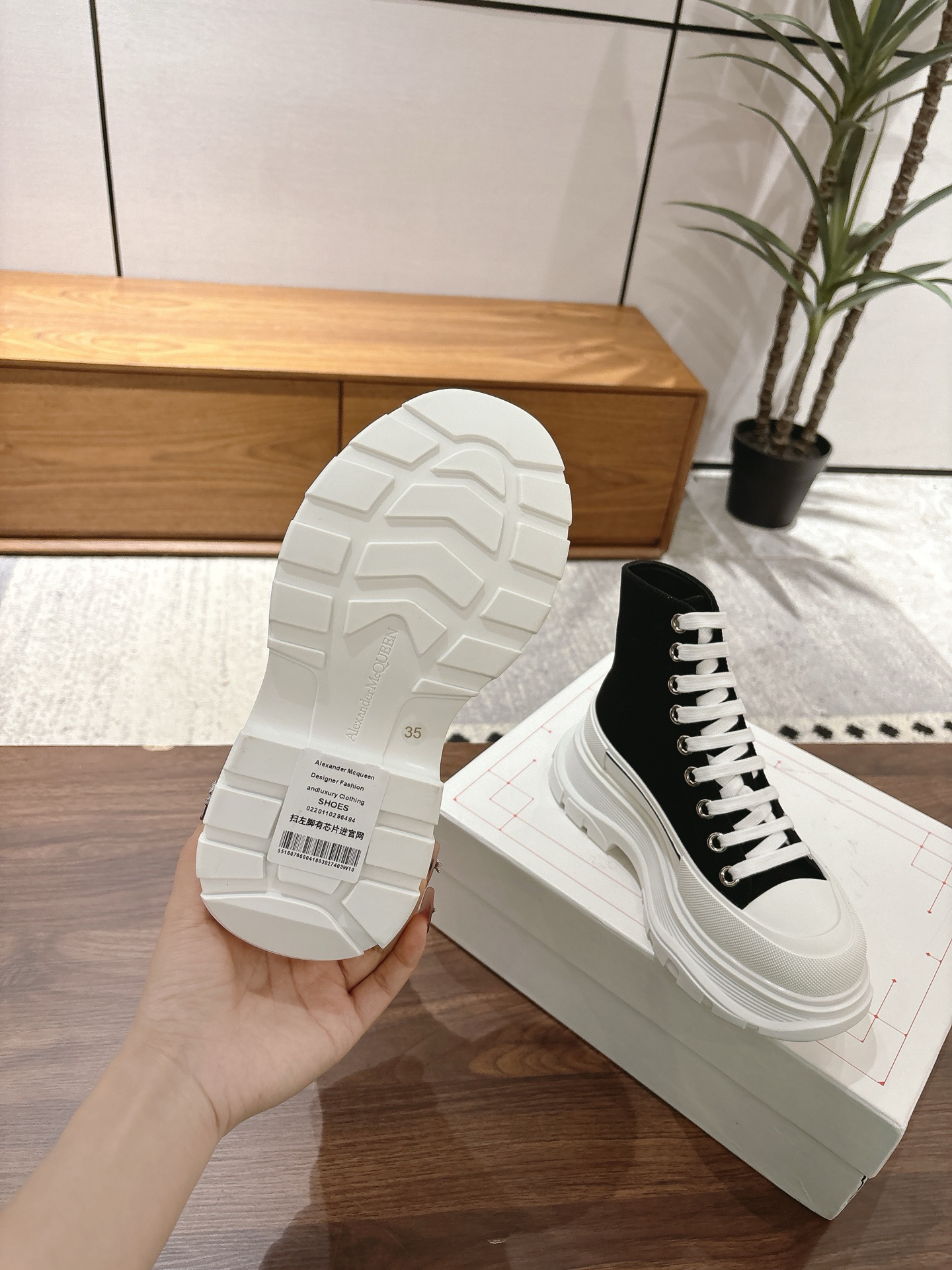 這款鞋子是AAAAA 1:1 質量(非常棒). 使用了和原版一模一樣的材料. 商標部分也保持了和麥奎恩/McQueen一樣. 圖片拍攝是實物鞋子拍攝, 您所收到的實物保證和我們圖片一模一樣.