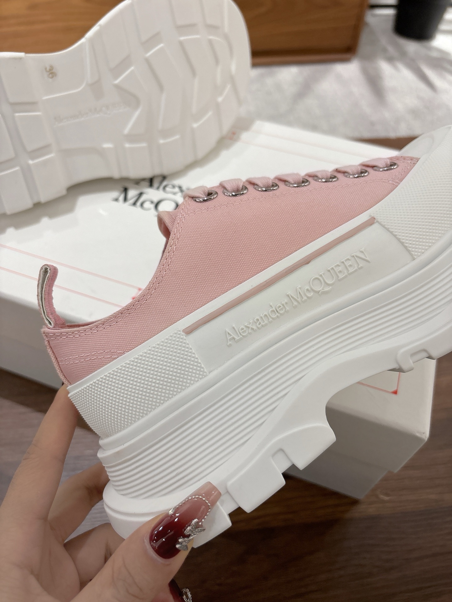 這款鞋子是AAAAA 1:1 質量(非常棒). 使用了和原版一模一樣的材料. 商標部分也保持了和麥奎恩/McQueen一樣. 圖片拍攝是實物鞋子拍攝, 您所收到的實物保證和我們圖片一模一樣.