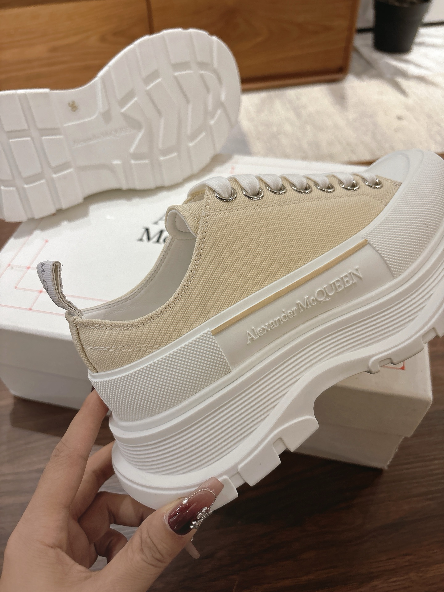 這款鞋子是AAAAA 1:1 質量(非常棒). 使用了和原版一模一樣的材料. 商標部分也保持了和麥奎恩/McQueen一樣. 圖片拍攝是實物鞋子拍攝, 您所收到的實物保證和我們圖片一模一樣.