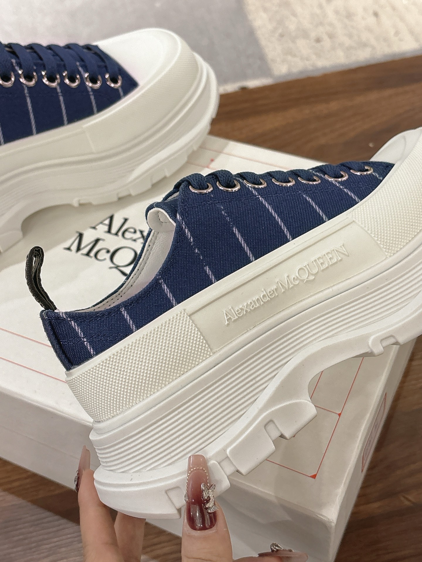 這款鞋子是AAAAA 1:1 質量(非常棒). 使用了和原版一模一樣的材料. 商標部分也保持了和麥奎恩/McQueen一樣. 圖片拍攝是實物鞋子拍攝, 您所收到的實物保證和我們圖片一模一樣.