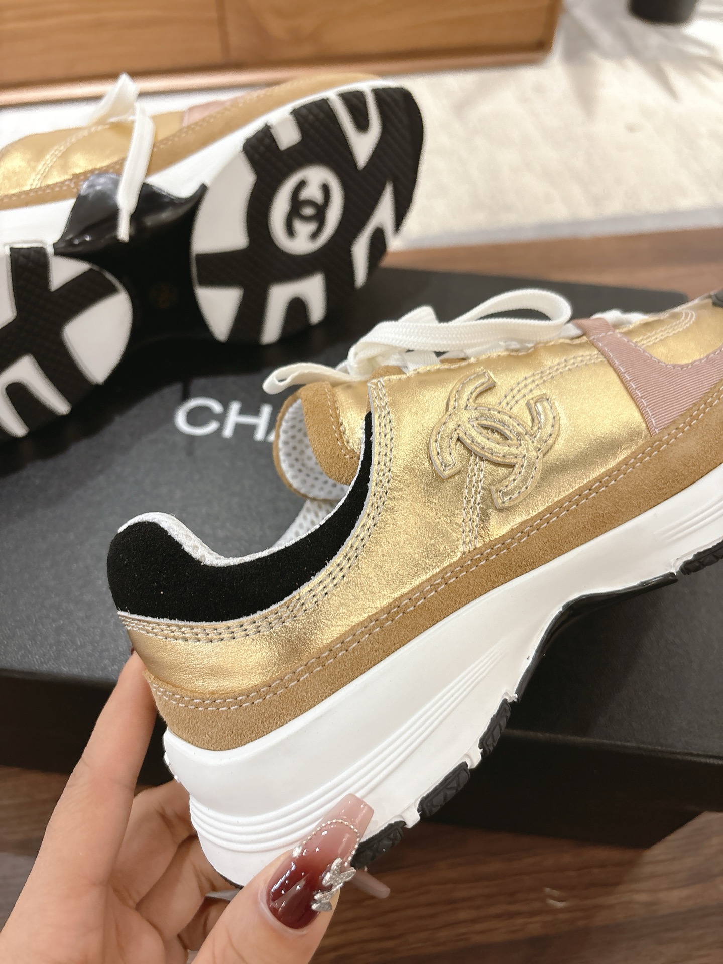 這款鞋子是AAAAA 1:1 質量(非常棒). 使用了和原版一模一樣的材料. 商標部分也保持了和香奈兒/Chanel一樣. 圖片拍攝是實物鞋子拍攝, 您所收到的實物保證和我們圖片一模一樣.