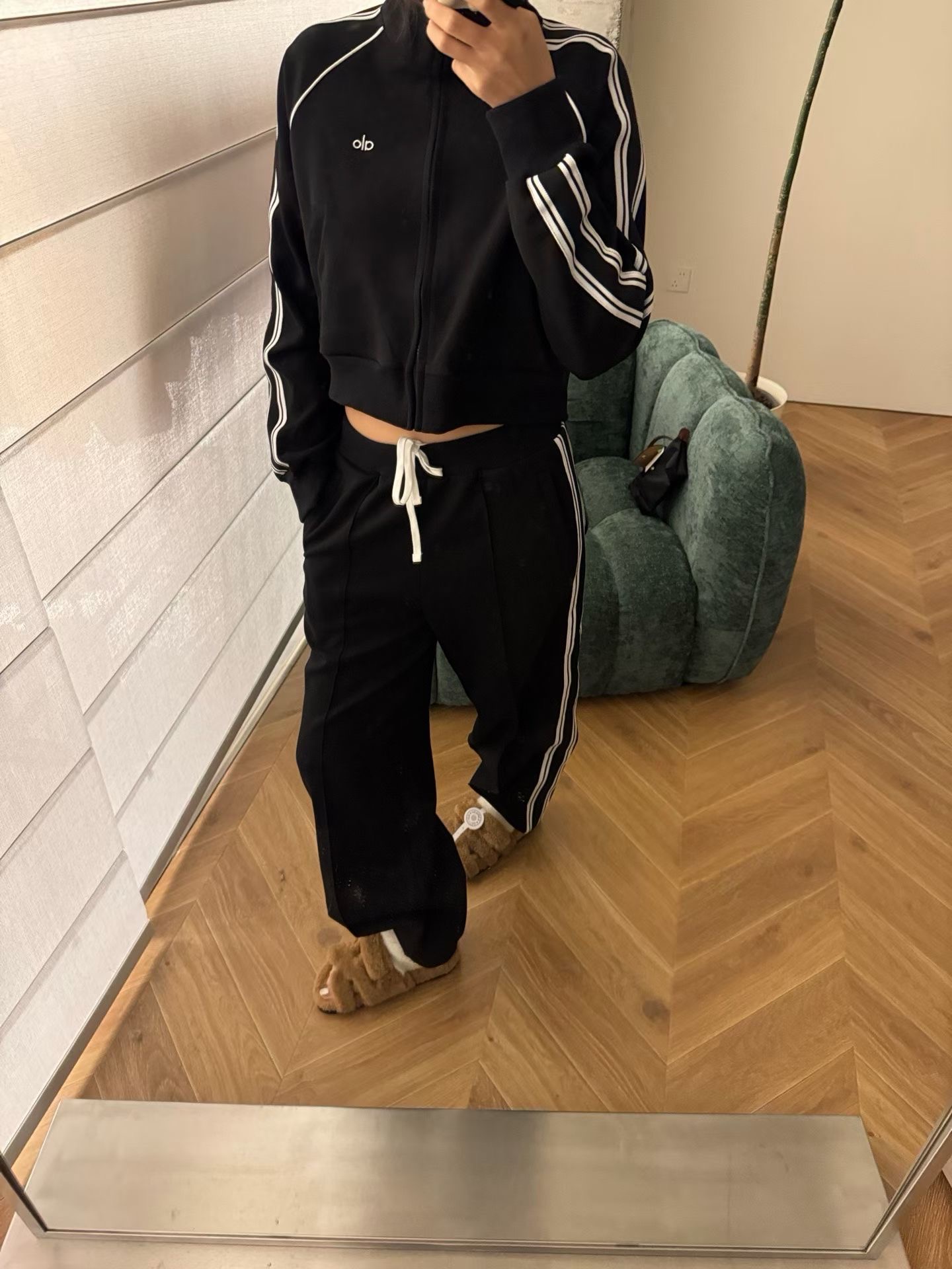 這款衣服是AAAAA 1:1 質量(非常棒). 使用了和原版一模一樣的材料. 商標部分也保持了和Alo Yoga一樣. 圖片拍攝是實物衣服拍攝, 您所收到的實物保證和我們圖片一模一樣.