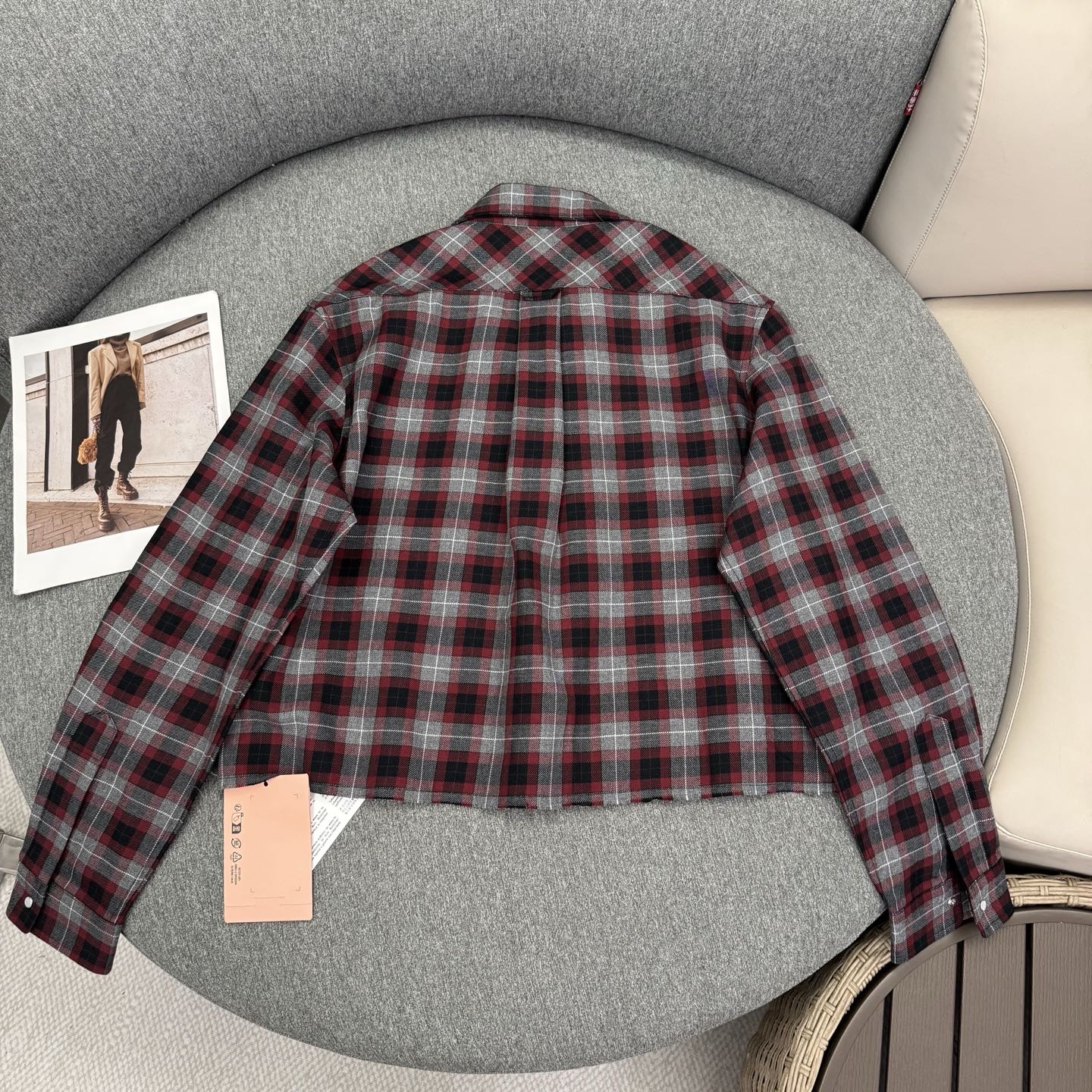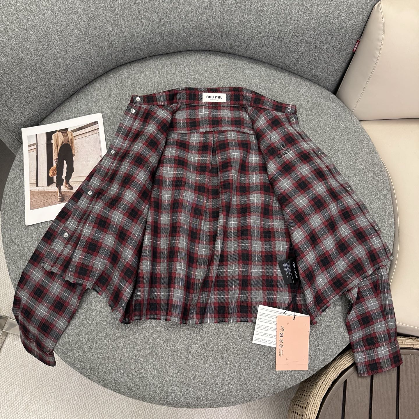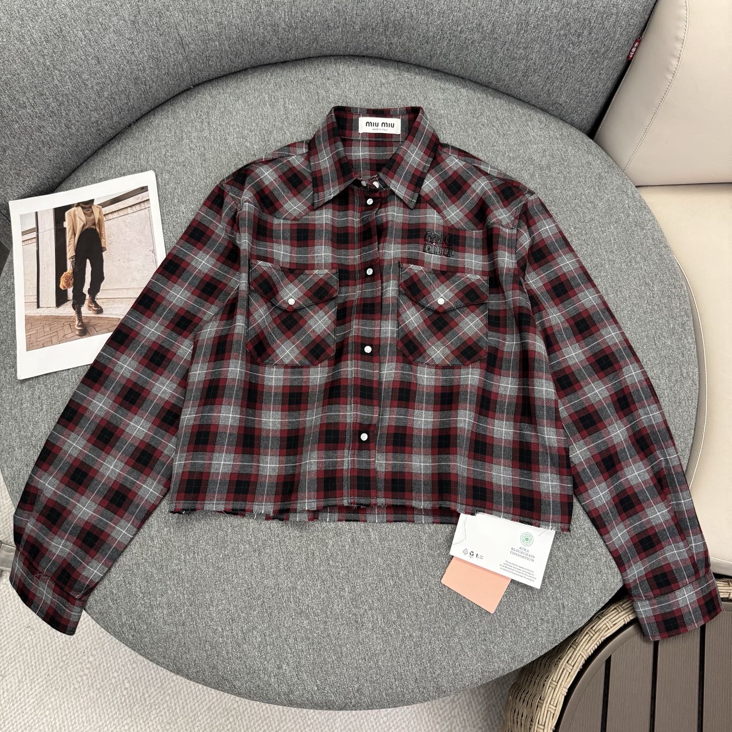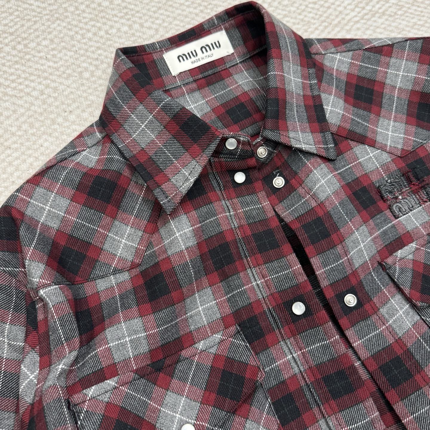 這款衣服是AAAAA 1:1 質量(非常棒). 使用了和原版一模一樣的材料. 商標部分也保持了和繆繆/Miu Miu一樣. 圖片拍攝是實物衣服拍攝, 您所收到的實物保證和我們圖片一模一樣.