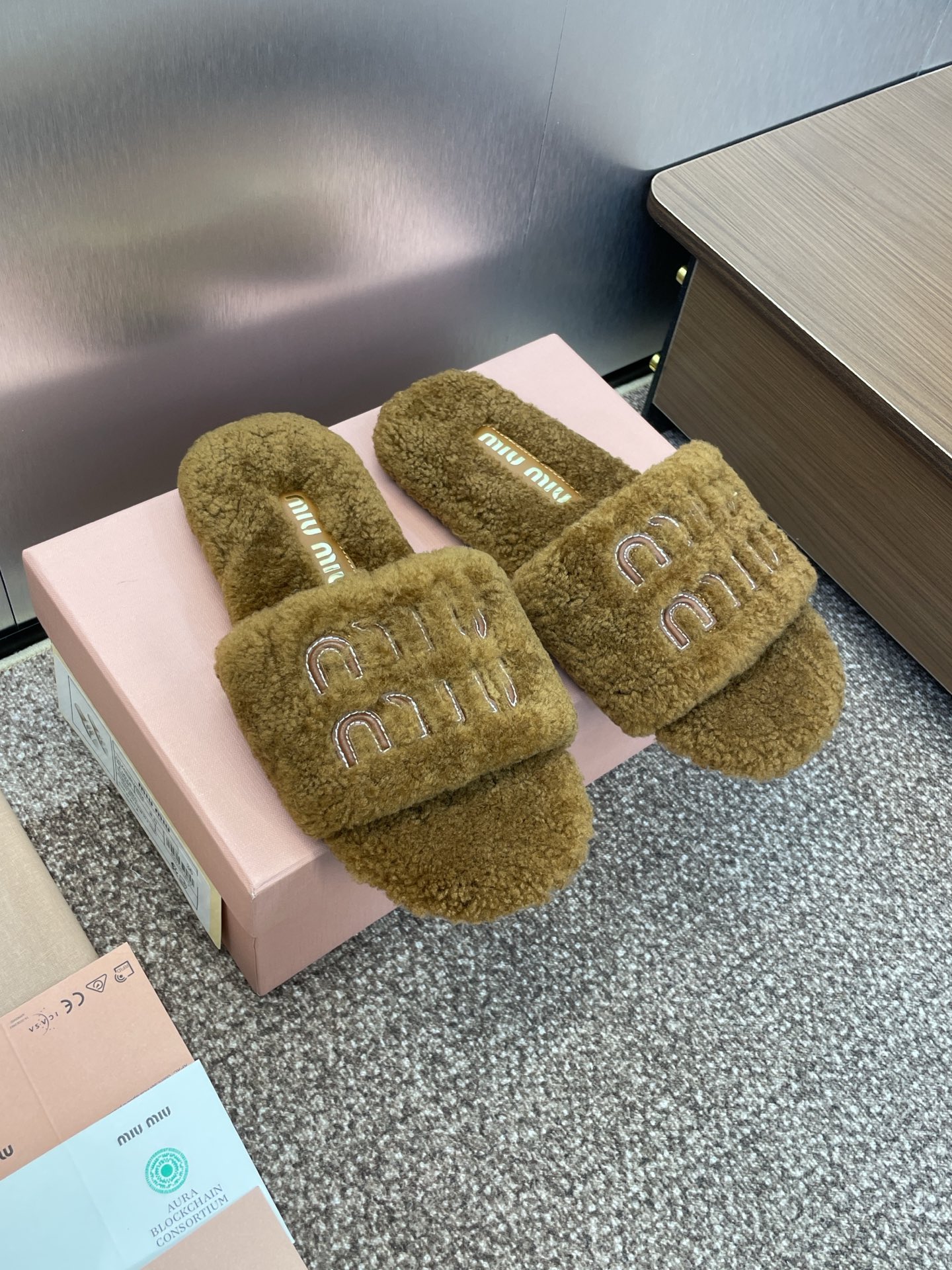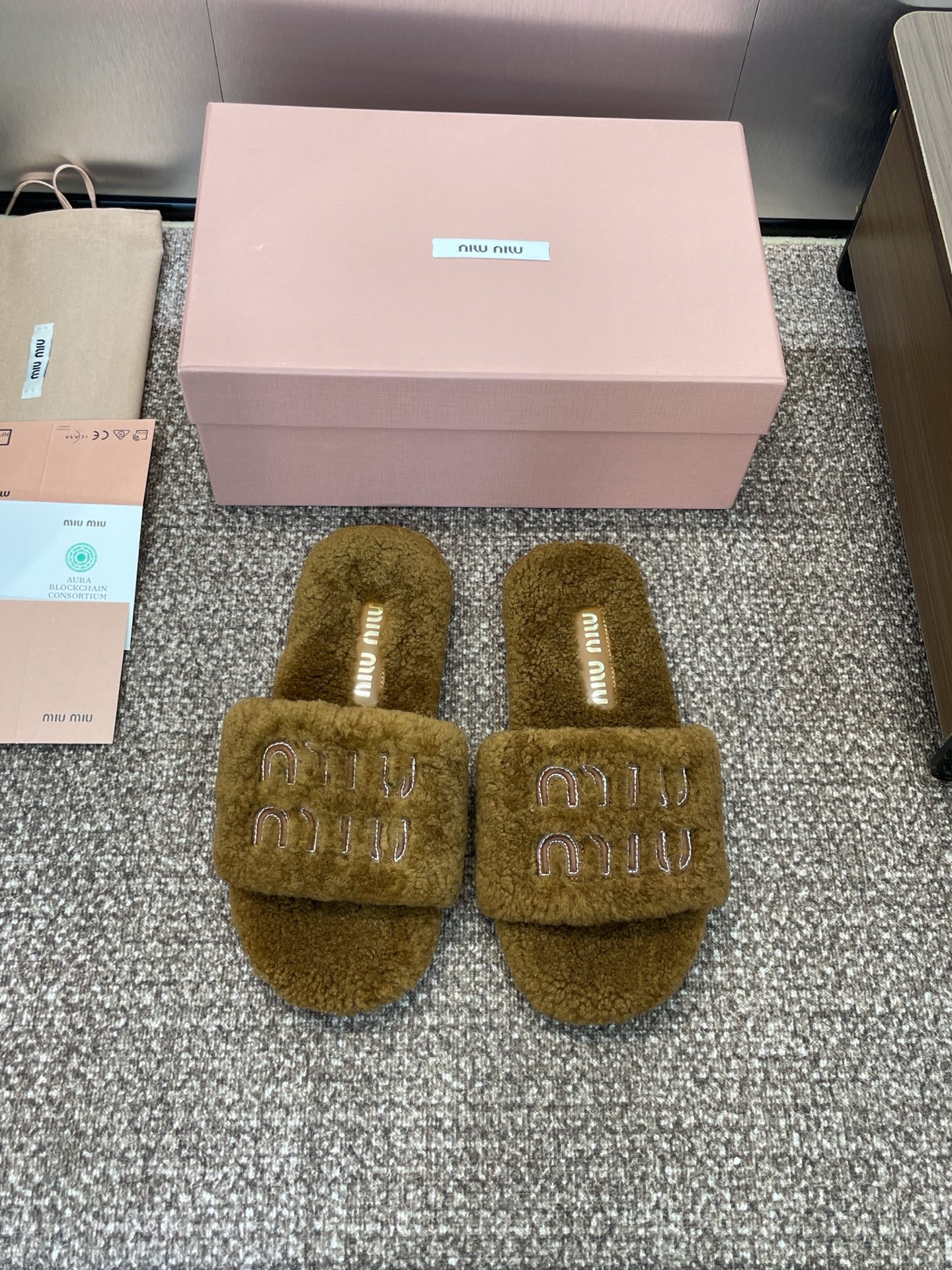 這款鞋子是AAAAA 1:1 質量(非常棒). 使用了和原版一模一樣的材料. 商標部分也保持了和繆繆/Miu Miu一樣. 圖片拍攝是實物鞋子拍攝, 您所收到的實物保證和我們圖片一模一樣.