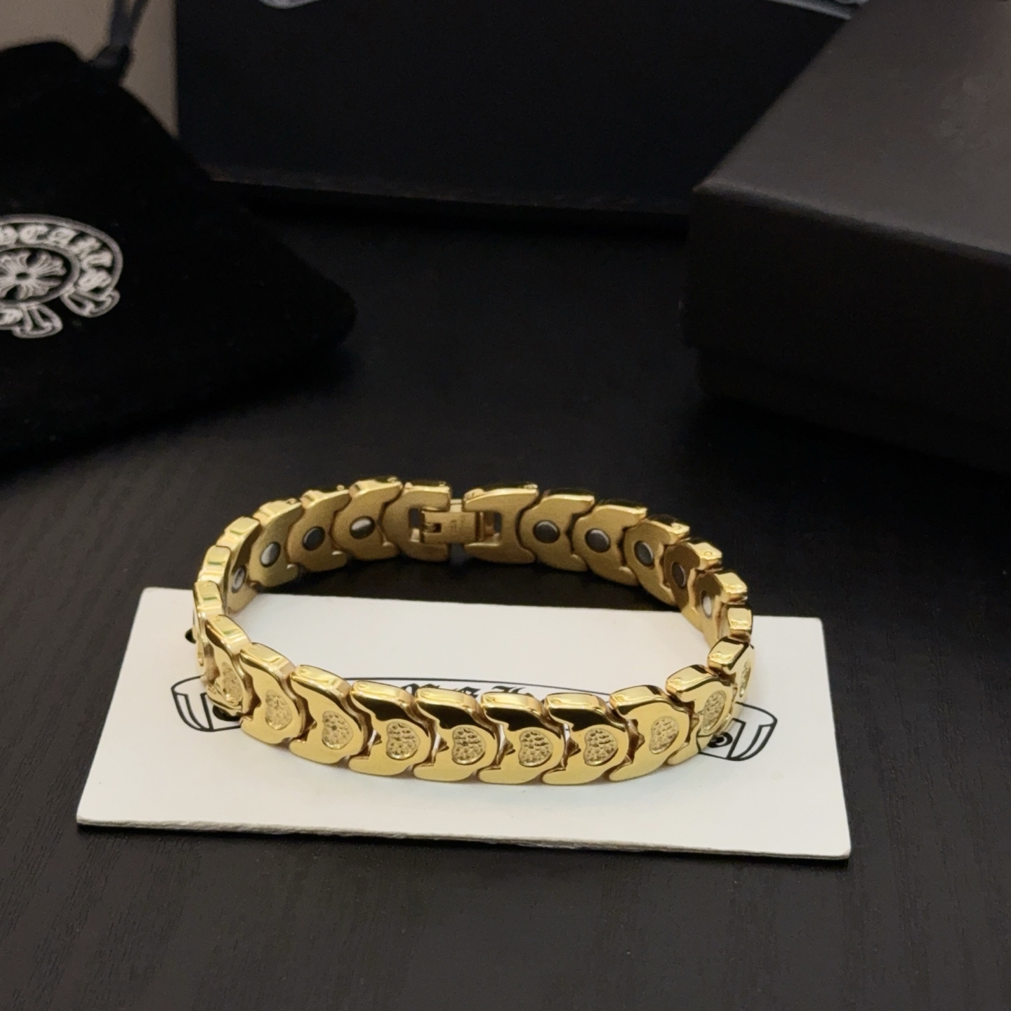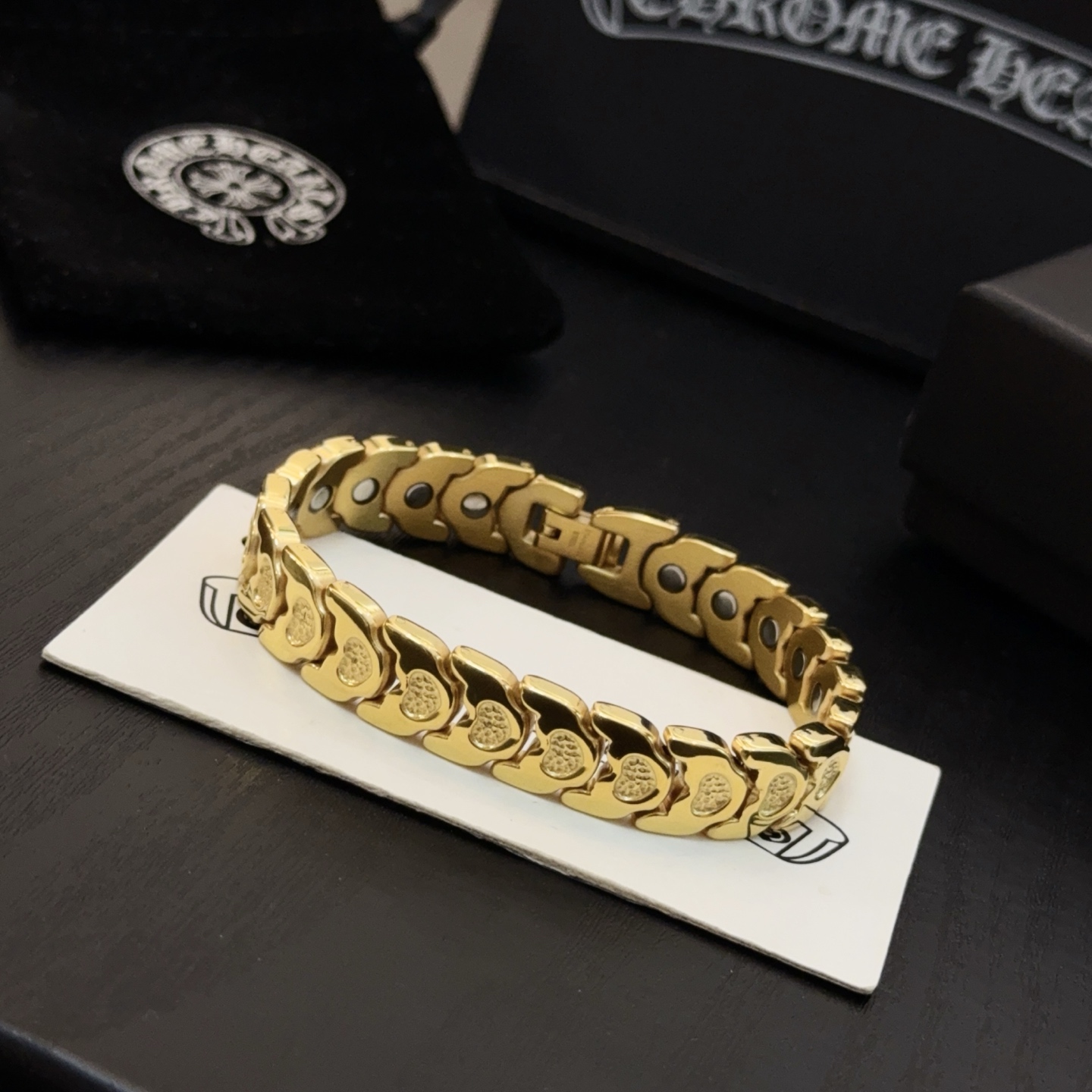 這款首飾是AAAAA 1:1 質量(非常棒). 使用了和原版一模一樣的材料. 商標部分也保持了和鉻心/Chrome Hearts一樣. 圖片拍攝是實物首飾拍攝, 您所收到的實物保證和我們圖片一模一樣.