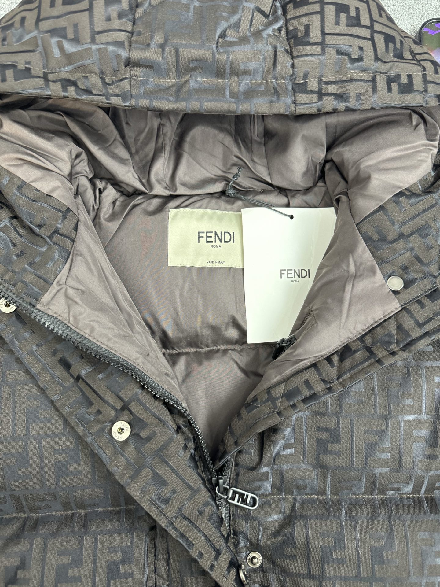 這款衣服是AAAAA 1:1 質量(非常棒). 使用了和原版一模一樣的材料. 商標部分也保持了和芬迪/Fendi一樣. 圖片拍攝是實物衣服拍攝, 您所收到的實物保證和我們圖片一模一樣.